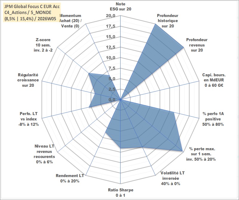Site dédié aux investisseursPage dédiée sur site financeAnalyse des valorisations hebdomadaires du fonds JPM Global Focus C EUR Acc. Cet actif est cote en EUR. Les valorisations couvrent les semaines 1997W01 a 2026W05. Les revenus de cet actif financier sont pris en compte depuis la semaine 1997W01. La note ESG de cet actif n'est pas connue.