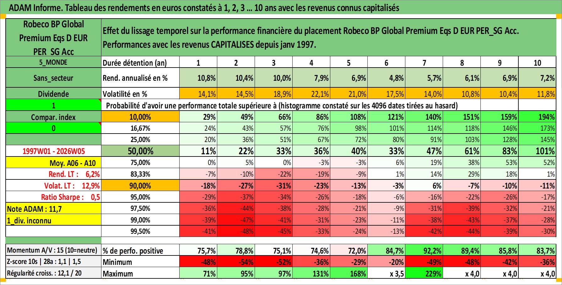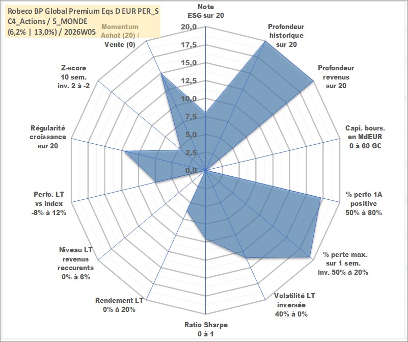 Site dédié aux investisseursPage dédiée sur site financeAnalyse des valorisations hebdomadaires du fonds Robeco BP Global Premium Eqs D EUR PER_SG Acc. Cet actif est cote en EUR. Les valorisations couvrent les semaines 1997W01 a 2026W05. Les revenus de cet actif financier sont pris en compte depuis la semaine 1997W01. La note globale ESG de cet actif est estimee a 8.0 (apres rebasage entre 0 et 20).