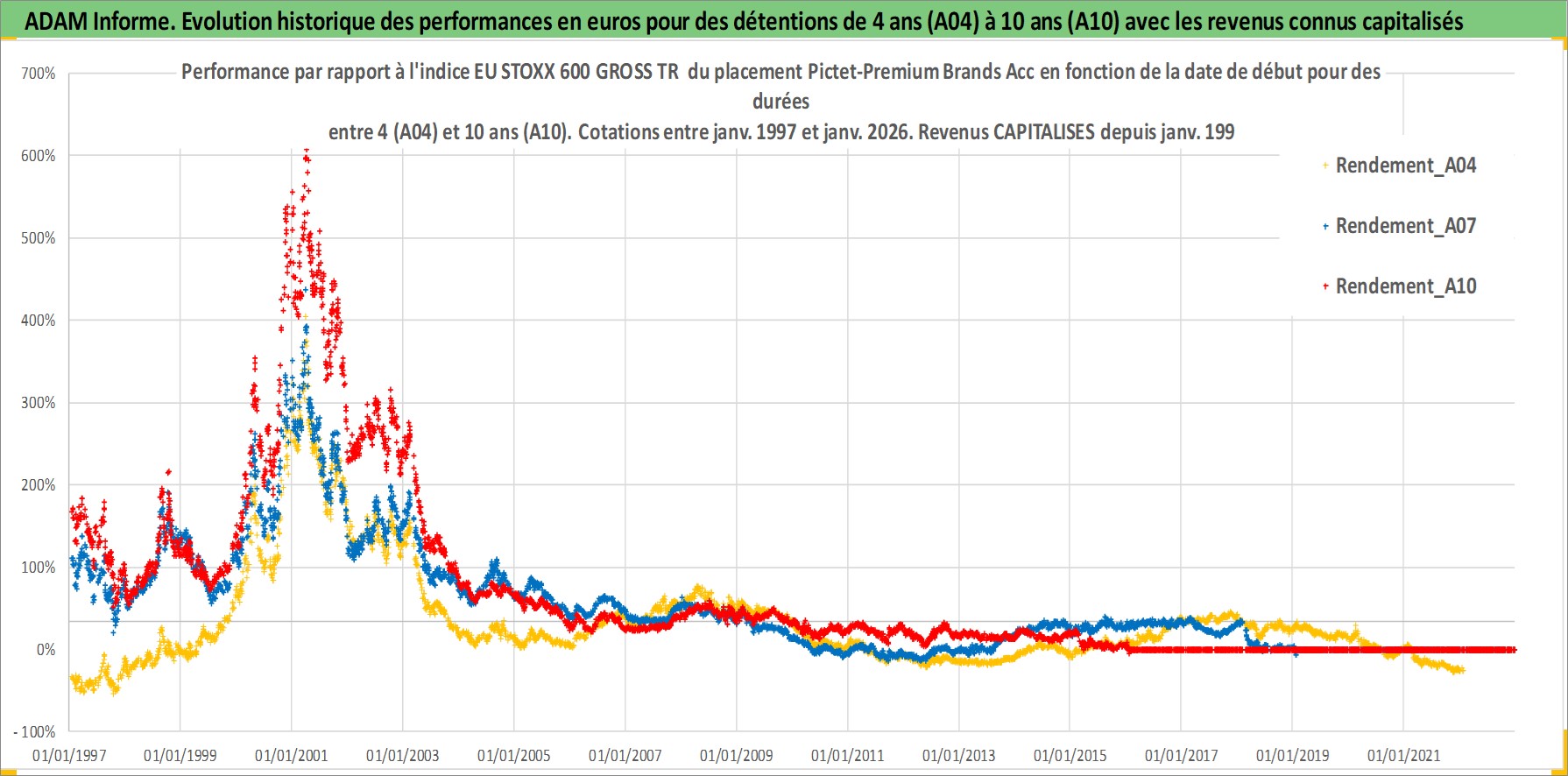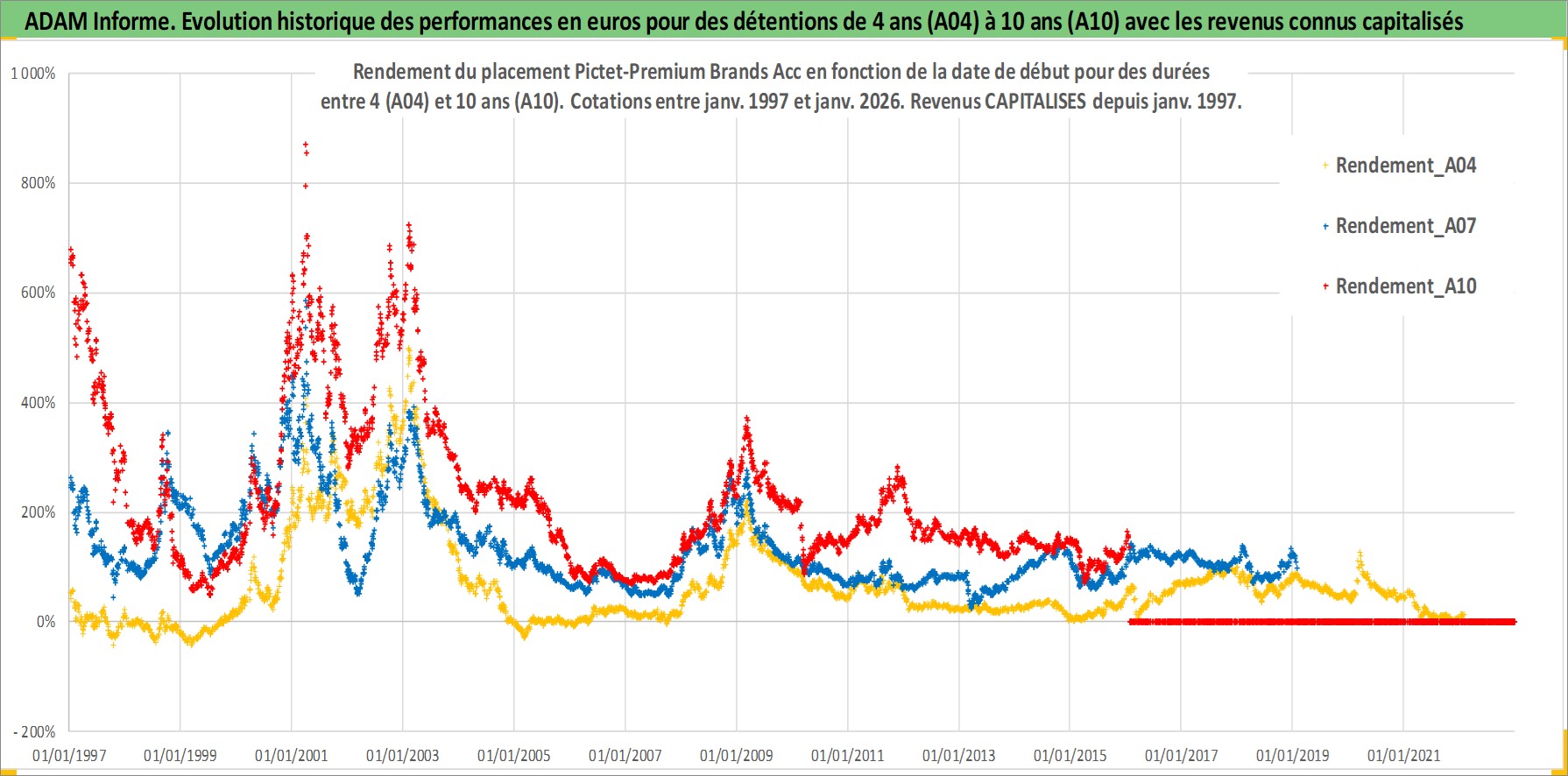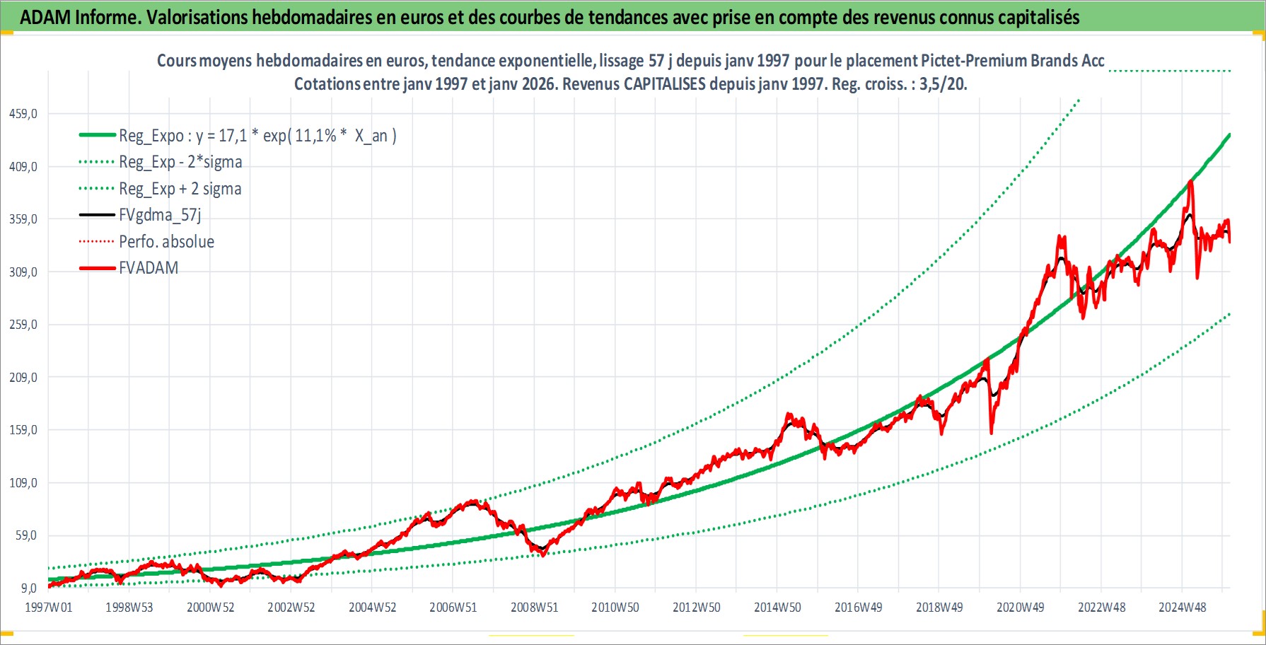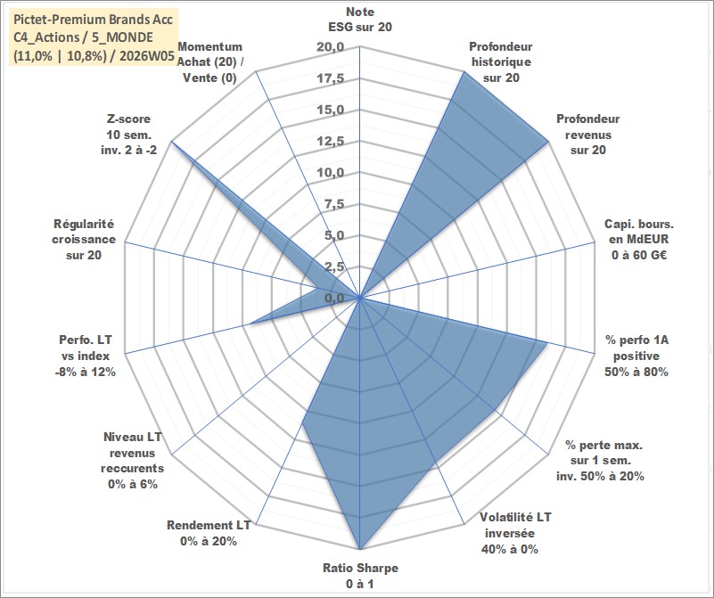Site dédié aux investisseursPage dédiée sur site financeAnalyse des valorisations hebdomadaires du fonds Pictet-Premium Brands Acc. Cet actif est cote en EUR. Les valorisations couvrent les semaines 1997W01 a 2026W05. Les revenus de cet actif financier sont pris en compte depuis la semaine 1997W01. La note ESG de cet actif n'est pas connue.