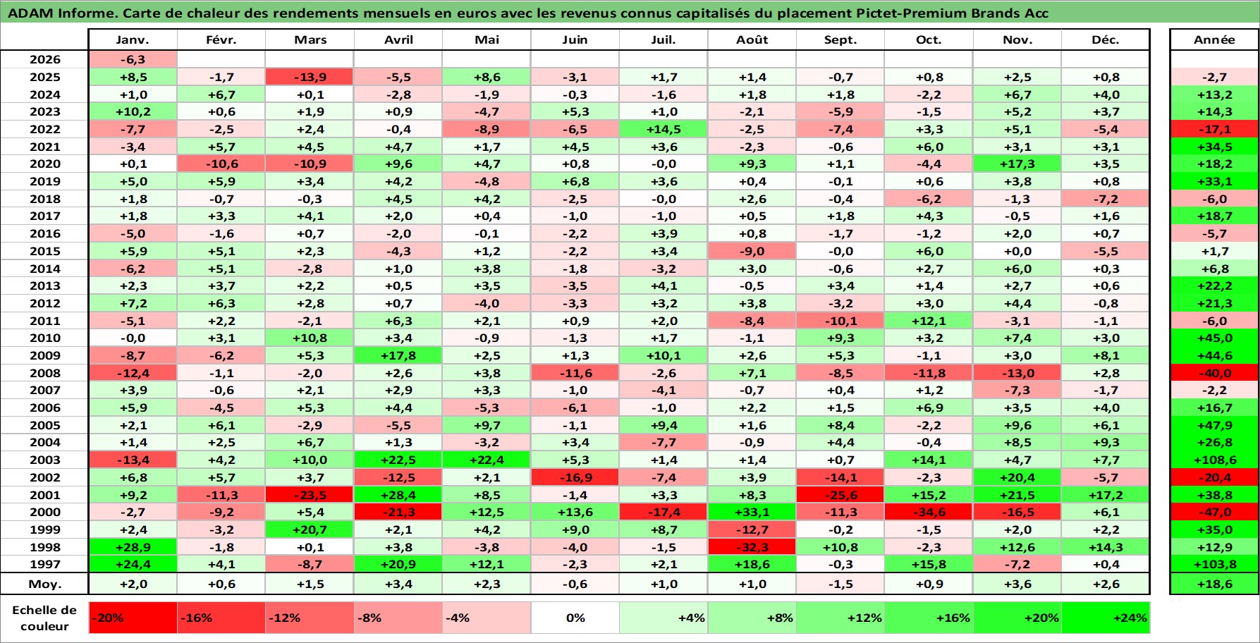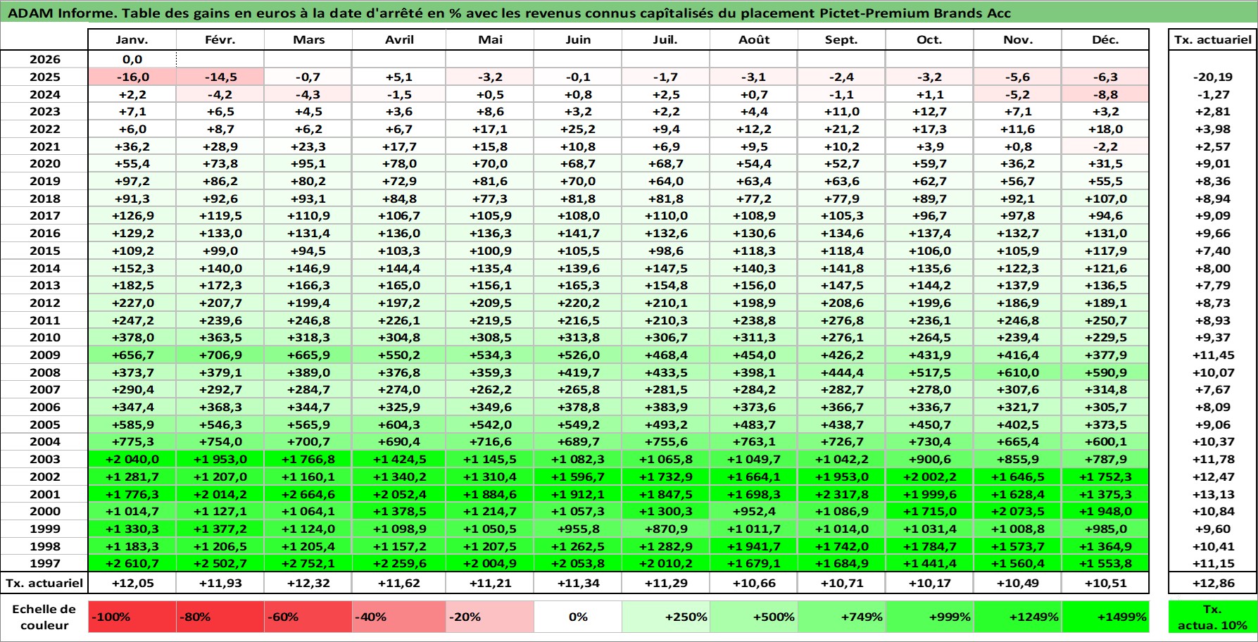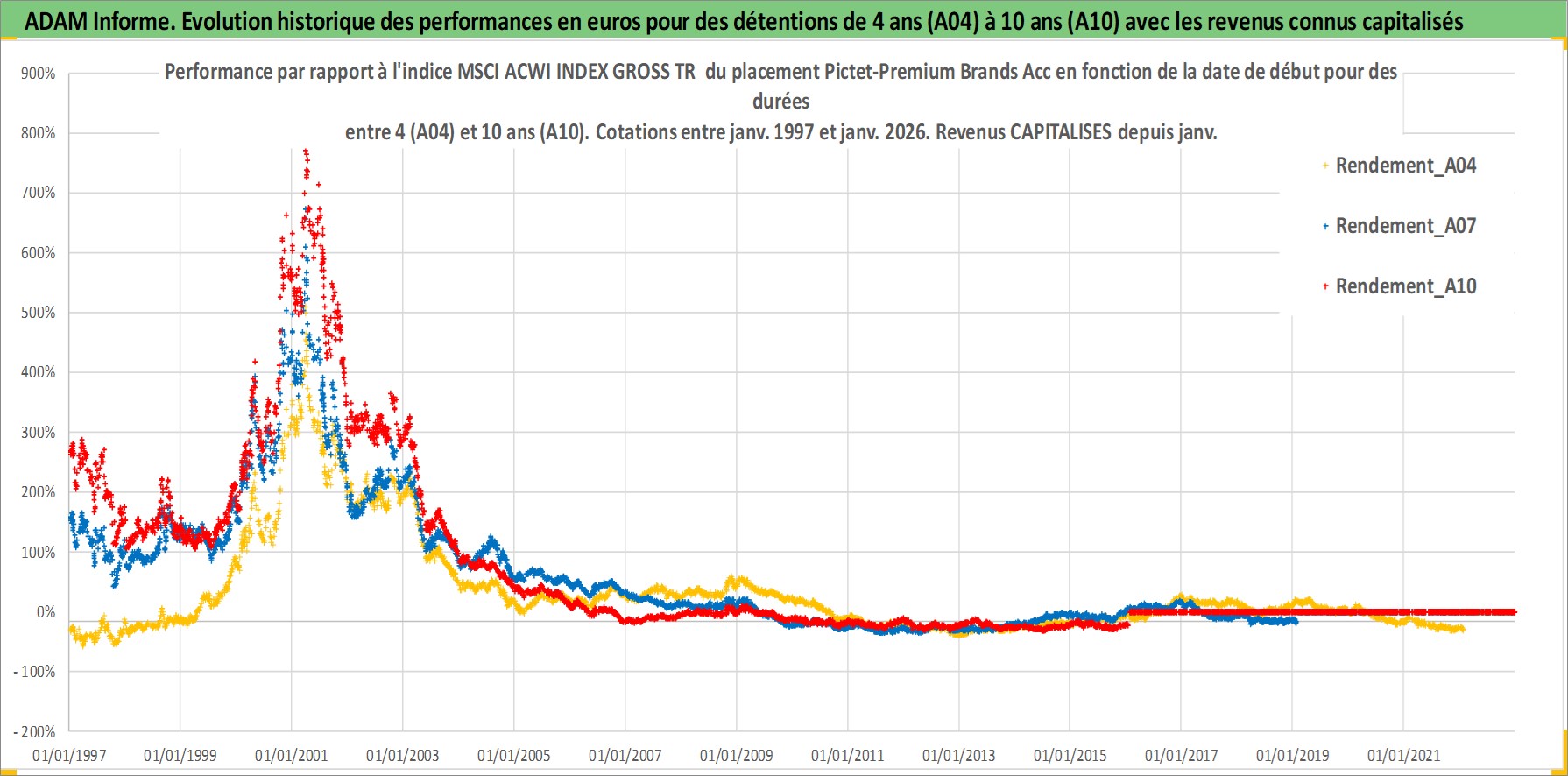Site dédié aux investisseursPage dédiée sur site financeAnalyse des valorisations hebdomadaires du fonds Pictet-Premium Brands Acc. Cet actif est cote en EUR. Les valorisations couvrent les semaines 1997W01 a 2026W05. Les revenus de cet actif financier sont pris en compte depuis la semaine 1997W01. La note ESG de cet actif n'est pas connue.