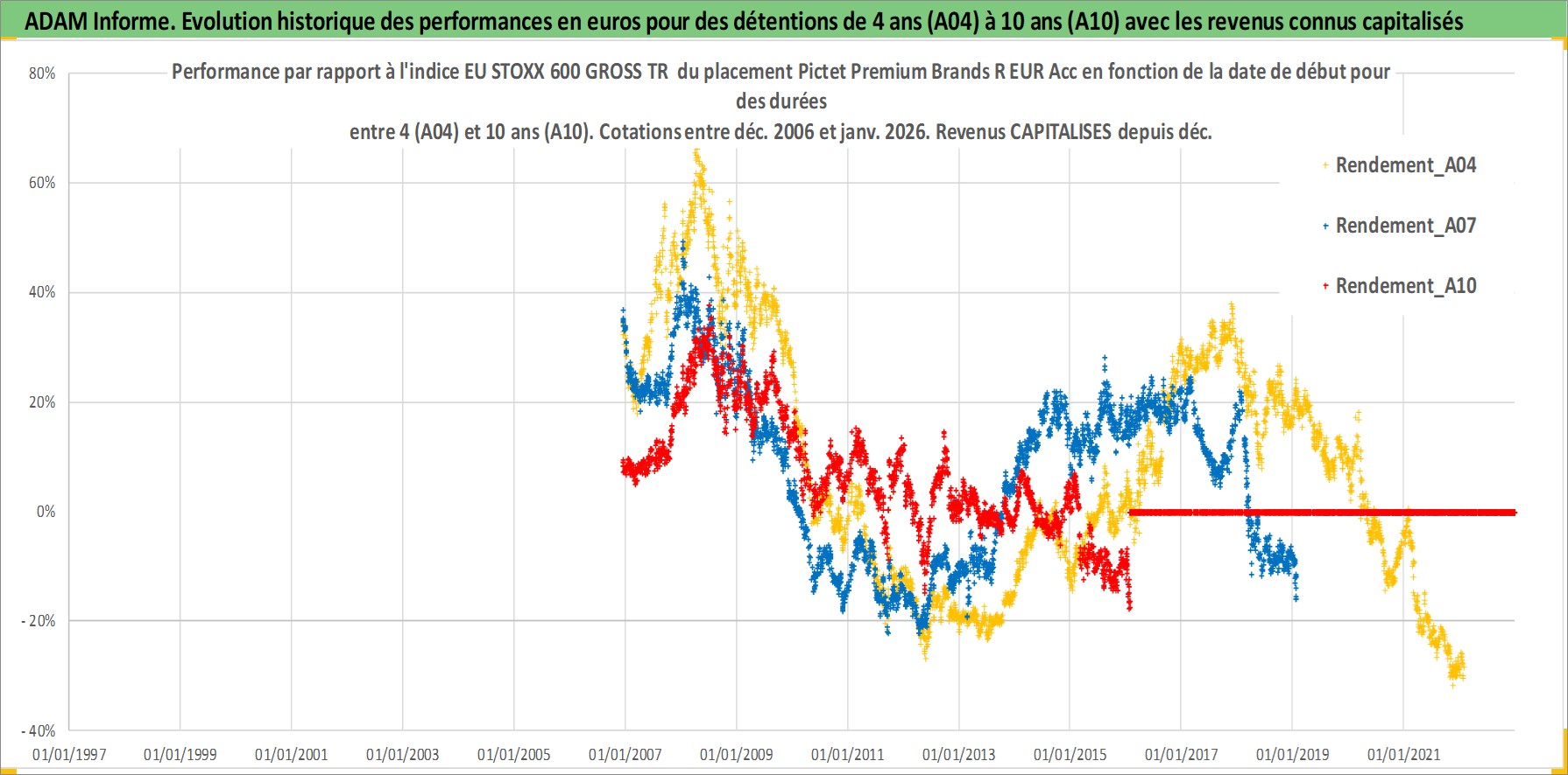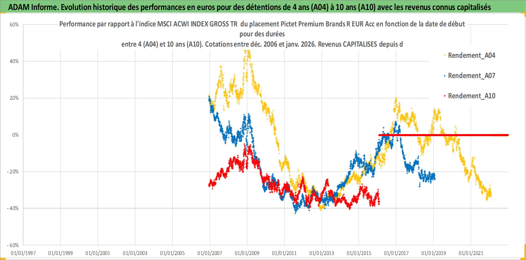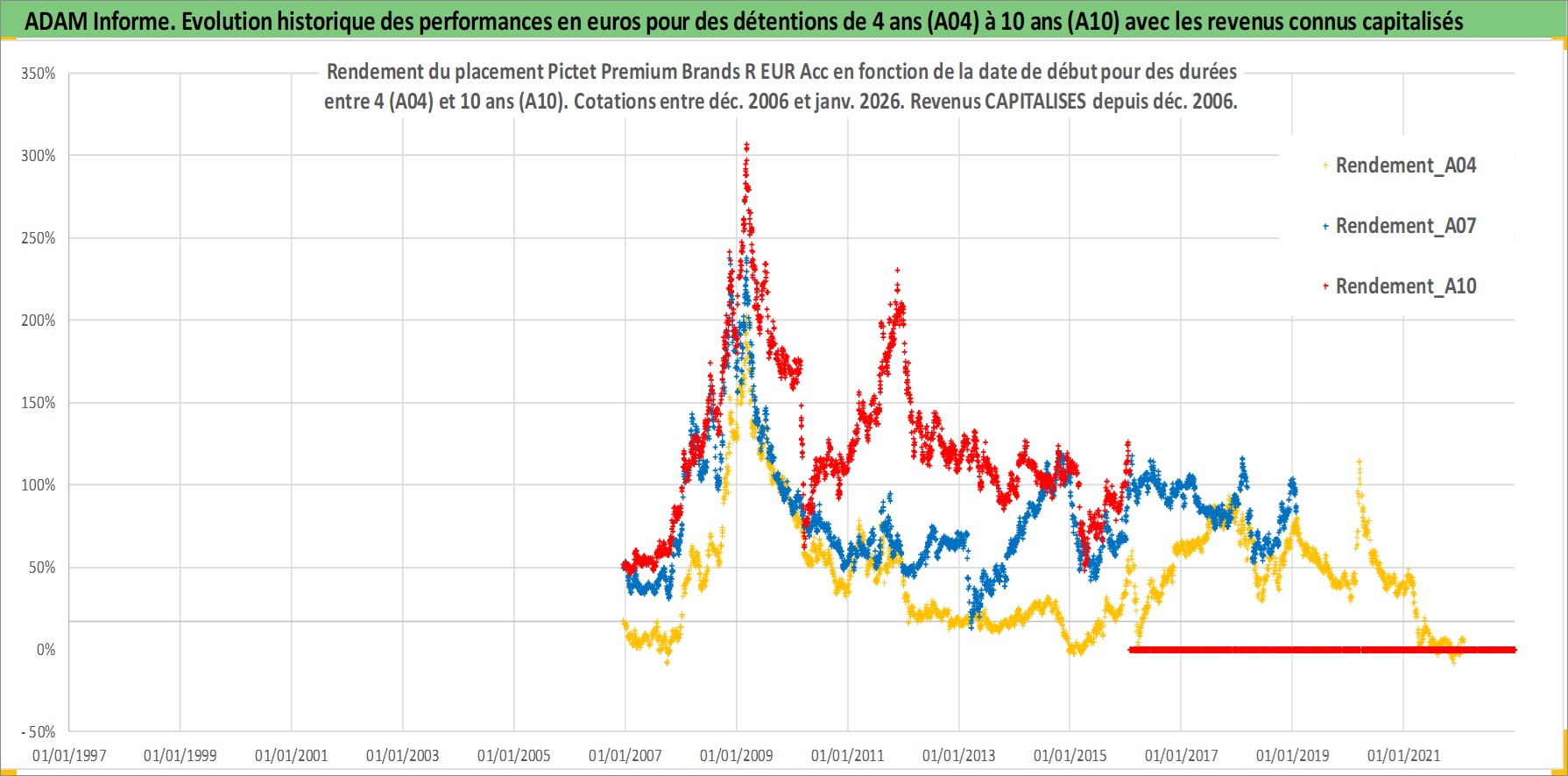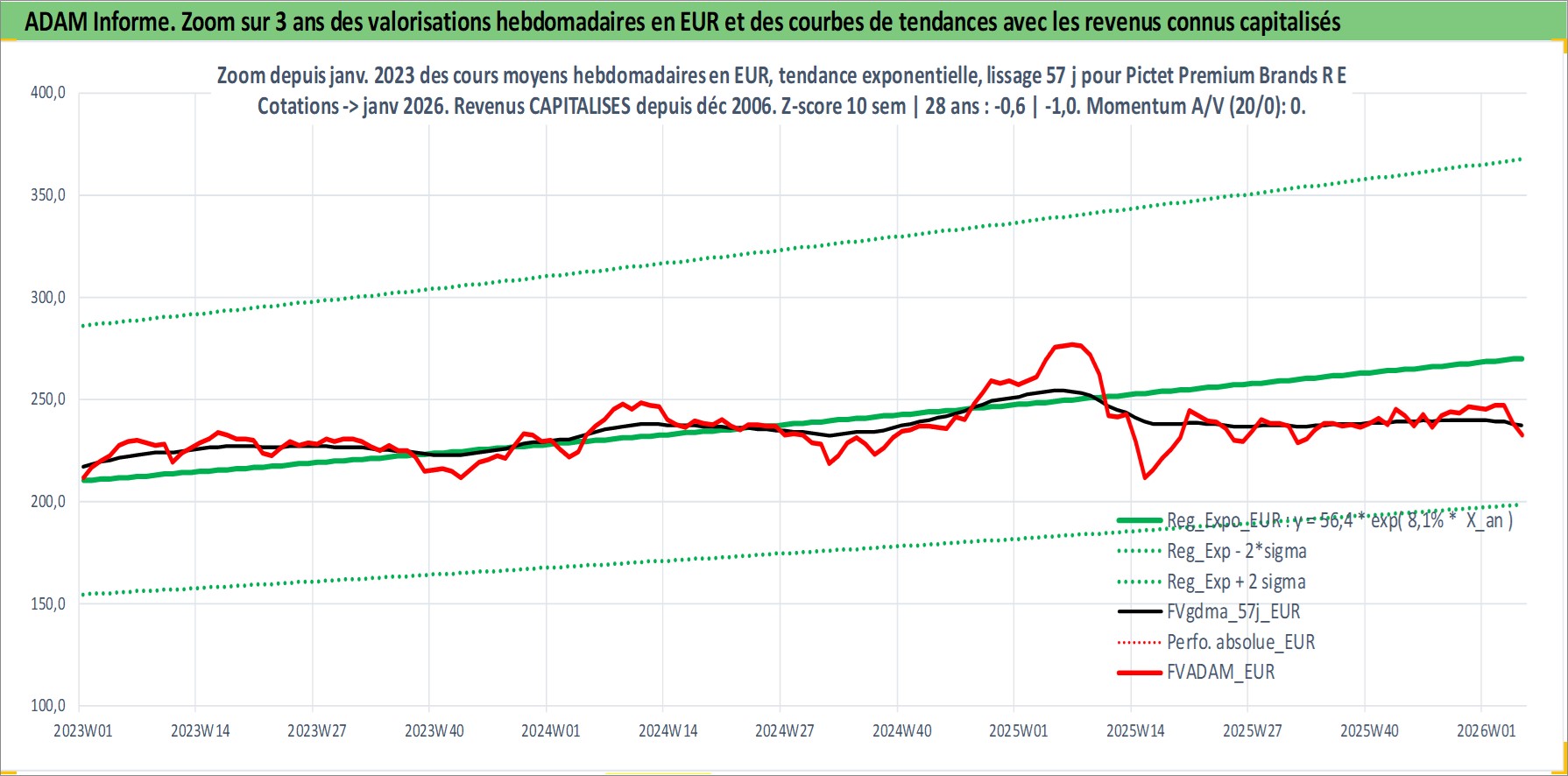 Site dédié aux investisseursPage dédiée sur site financeAnalyse des valorisations hebdomadaires du fonds Pictet Premium Brands R EUR Acc. Cet actif est cote en EUR. Les valorisations couvrent les semaines 2006W49 a 2026W05. Les revenus de cet actif financier sont pris en compte depuis la semaine 2006W49. La note globale ESG de cet actif est estimee a 11.0 (apres rebasage entre 0 et 20).