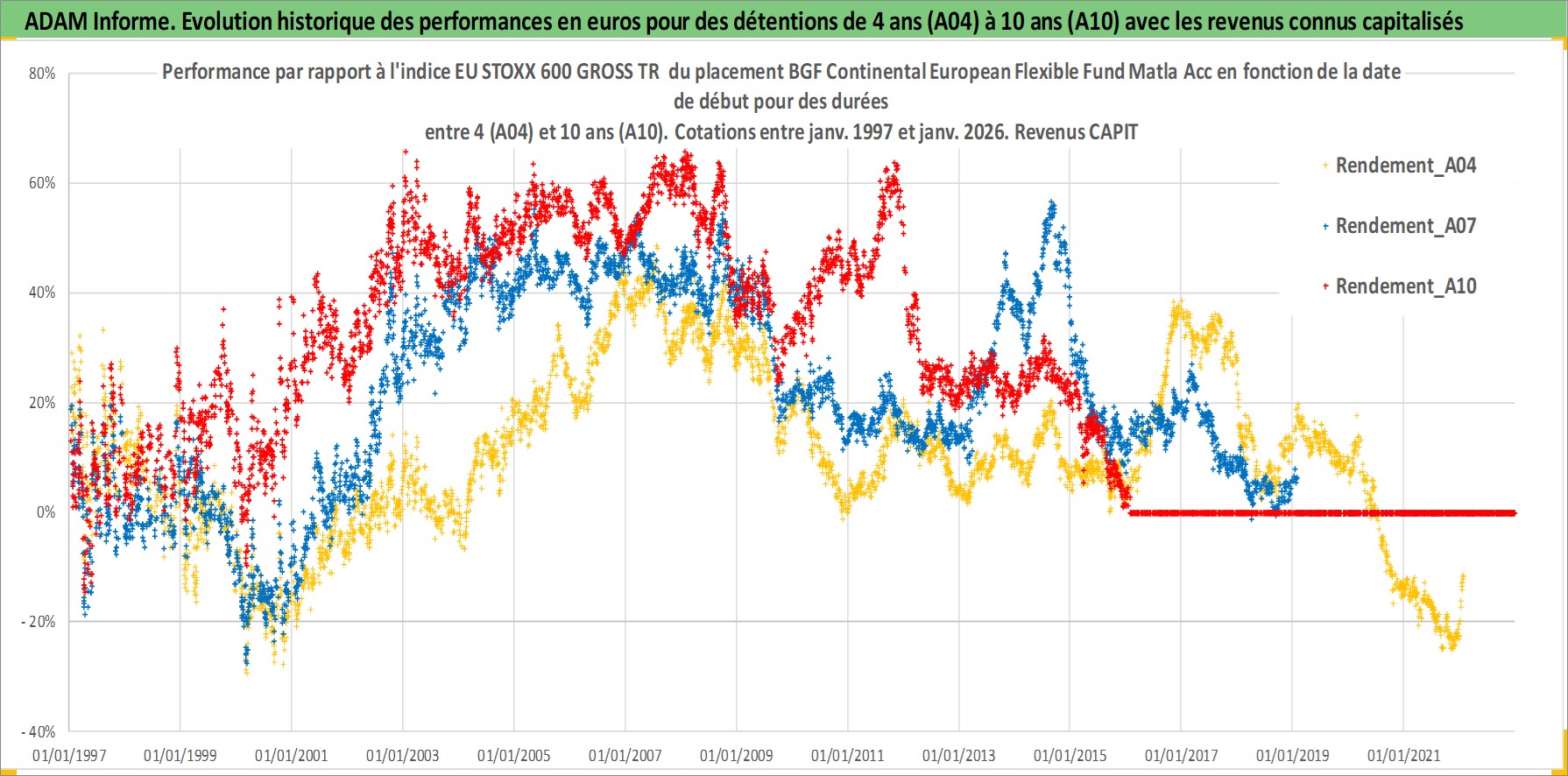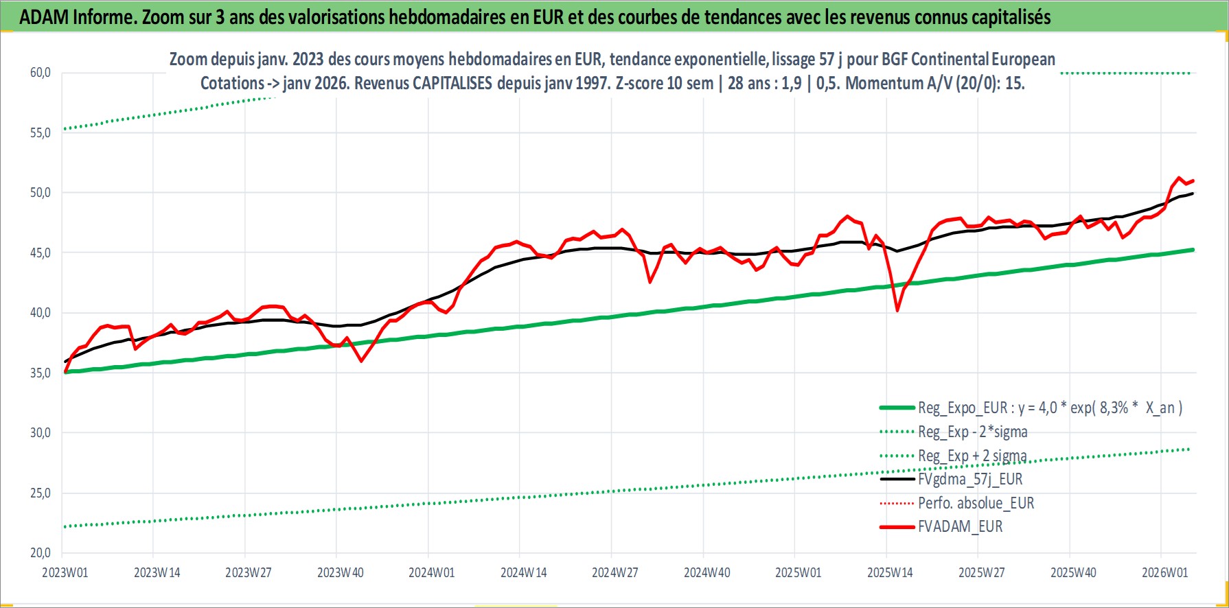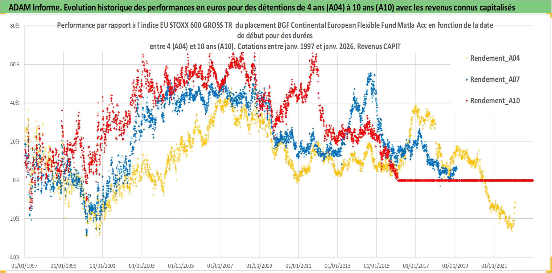 Site dédié aux investisseursPage dédiée sur site financeAnalyse des valorisations hebdomadaires du fonds BGF Continental European Flexible Fund Matla Acc. Cet actif est cote en EUR. Les valorisations couvrent les semaines 1997W01 a 2026W05. Les revenus de cet actif financier sont pris en compte depuis la semaine 1997W01. La note globale ESG de cet actif est estimee a 7.9 (apres rebasage entre 0 et 20).