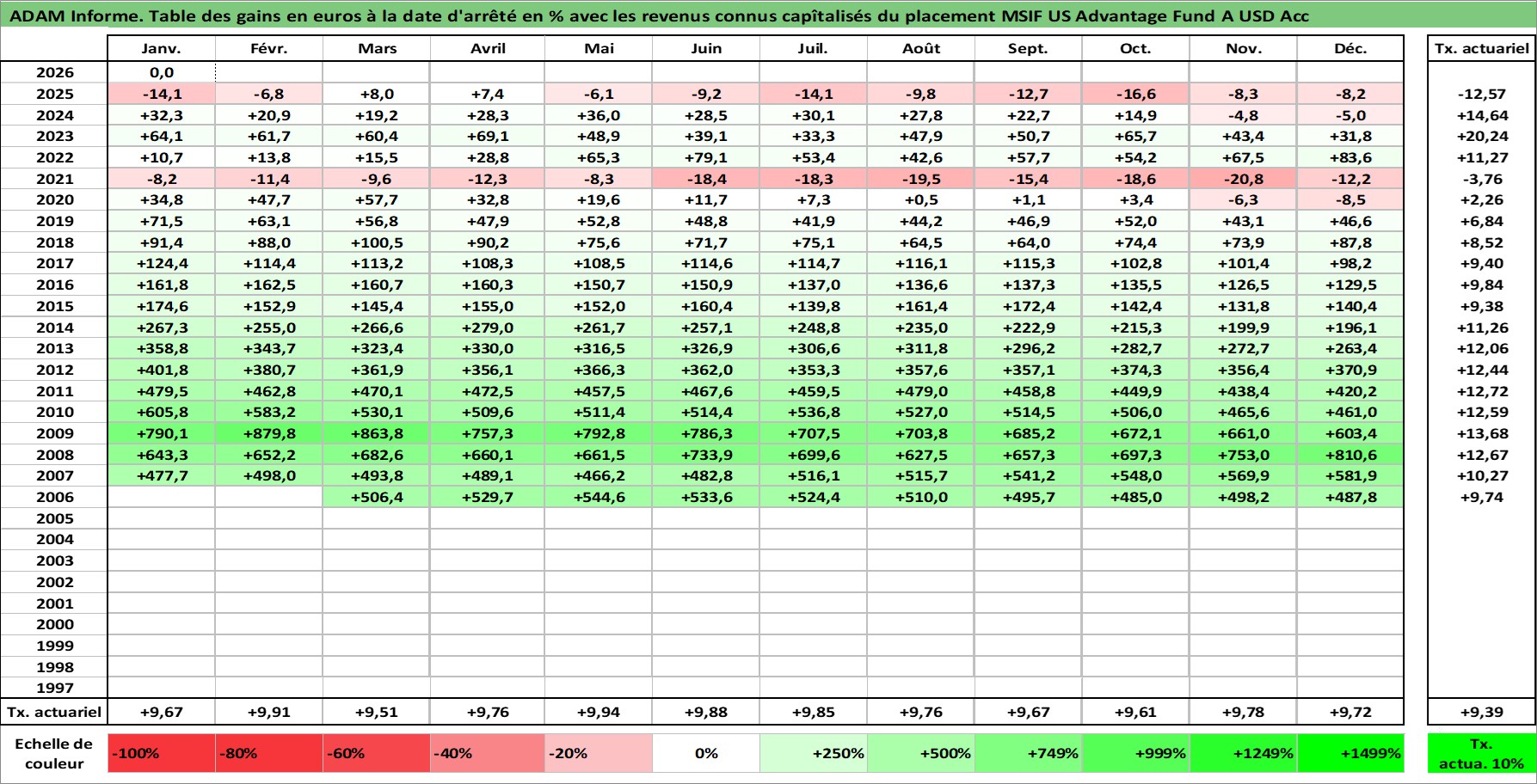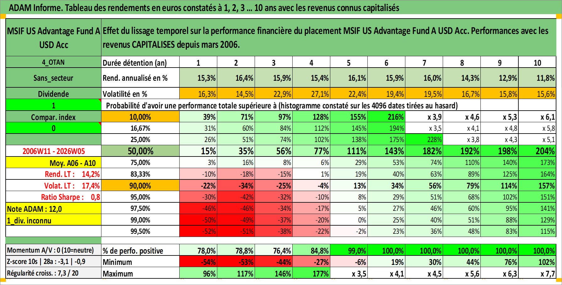 Dernière perfo 10 ans en %