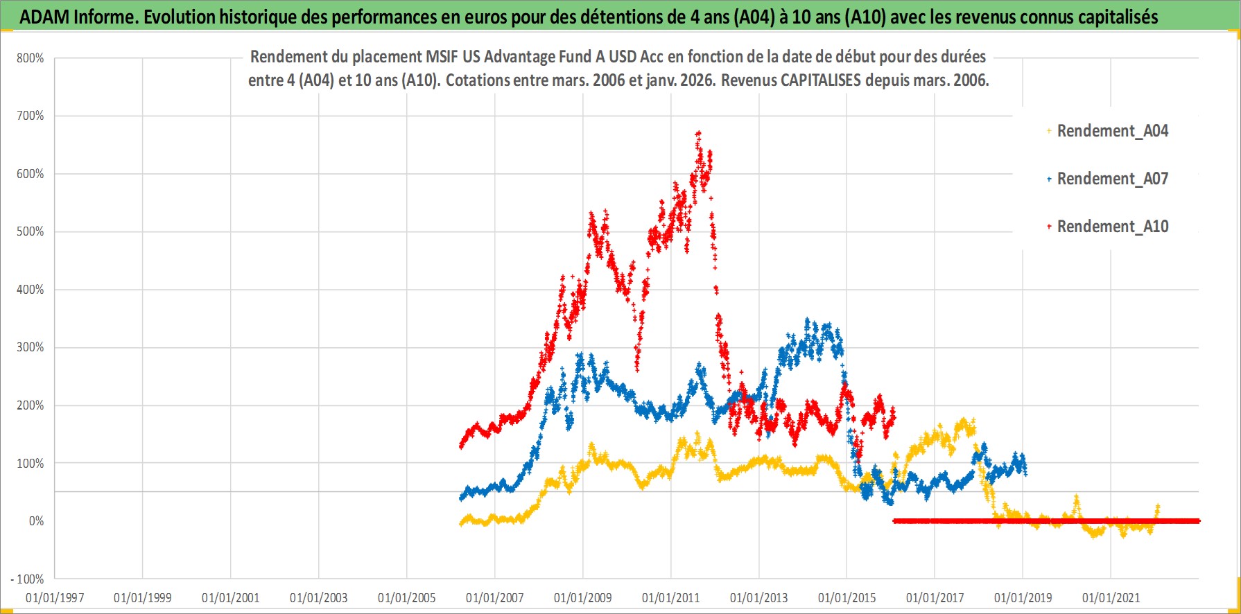 Site dédié aux investisseursPage dédiée sur site financeAnalyse des valorisations hebdomadaires du fonds MSIF US Advantage Fund A USD Acc. Cet actif est cote en USD. Les valorisations sont en contrevaleur EURO et couvrent les semaines 2006W11 a 2026W05. Les revenus de cet actif financier sont pris en compte depuis la semaine 2006W11. La note ESG de cet actif n'est pas connue.
