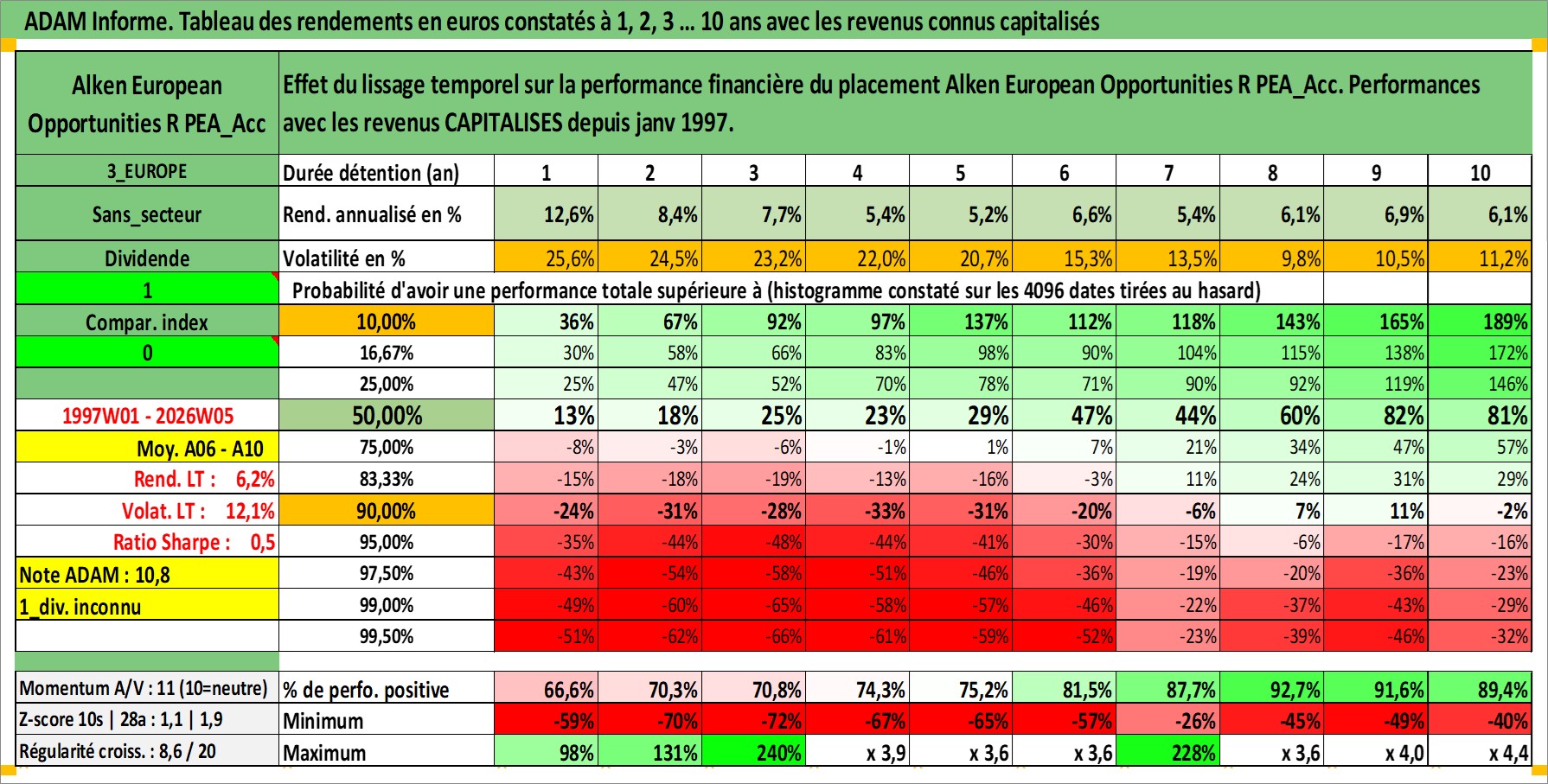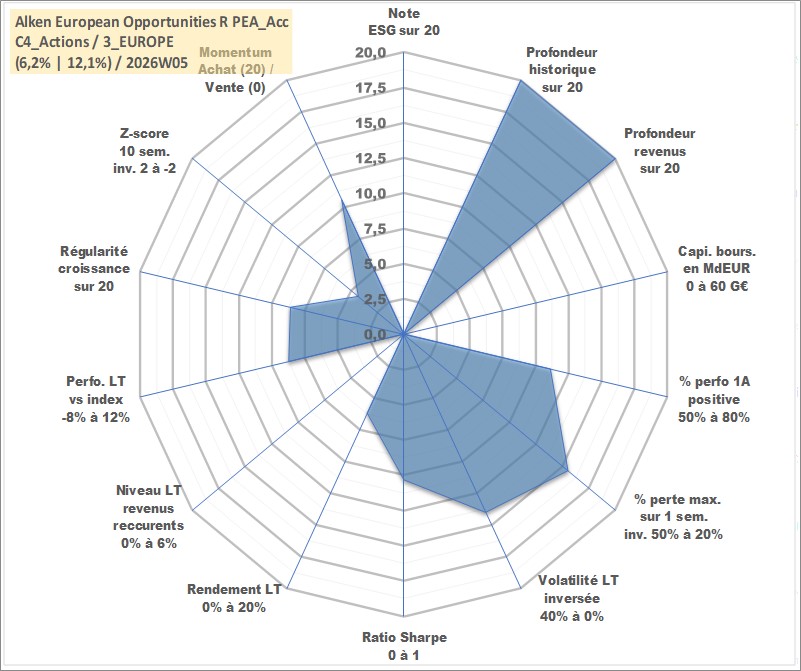 Site dédié aux investisseursPage dédiée sur site financeAnalyse des valorisations hebdomadaires du fonds Alken European Opportunities R PEA_Acc. Cet actif est cote en EUR. Les valorisations couvrent les semaines 1997W01 a 2026W05. Les revenus de cet actif financier sont pris en compte depuis la semaine 1997W01. La note ESG de cet actif n'est pas connue.