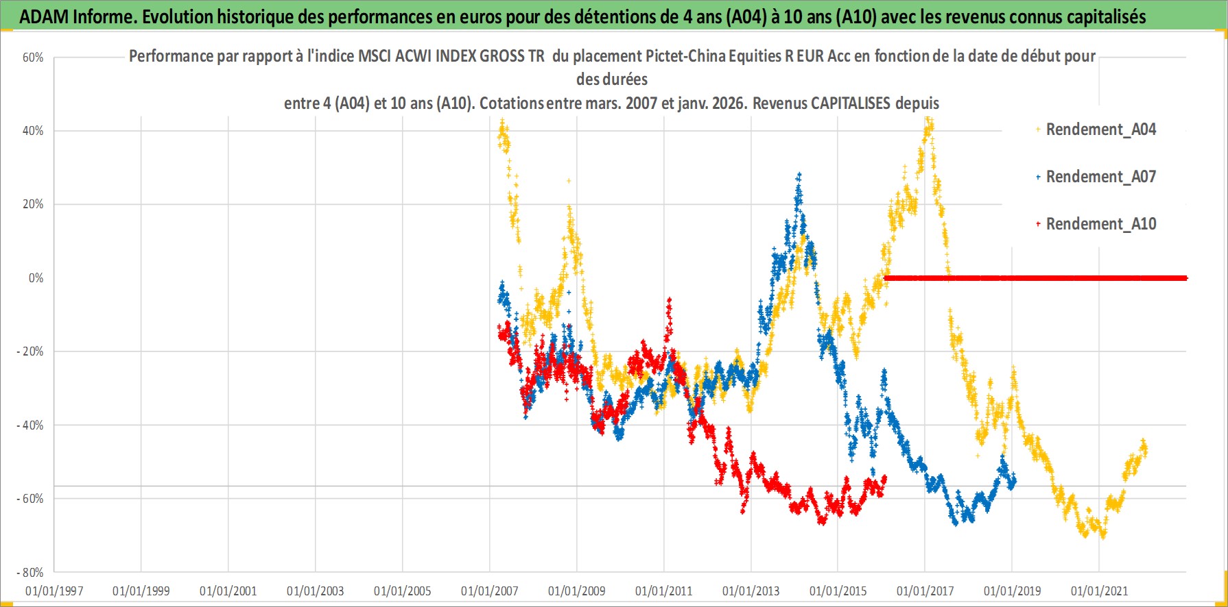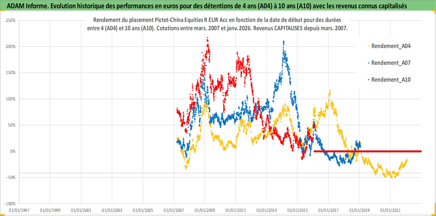 Site dédié aux investisseursPage dédiée sur site financeAnalyse des valorisations hebdomadaires du fonds Pictet-China Equities R EUR Acc. Cet actif est cote en EUR. Les valorisations couvrent les semaines 2007W10 a 2026W05. Les revenus de cet actif financier sont pris en compte depuis la semaine 2007W10. La note globale ESG de cet actif est estimee a 8.0 (apres rebasage entre 0 et 20).