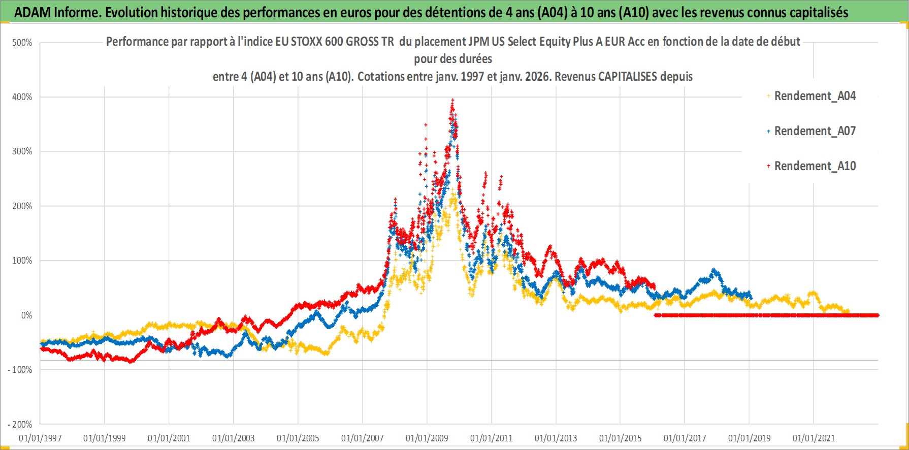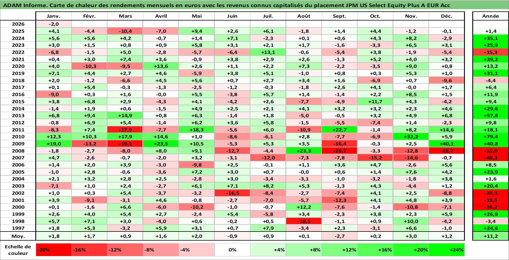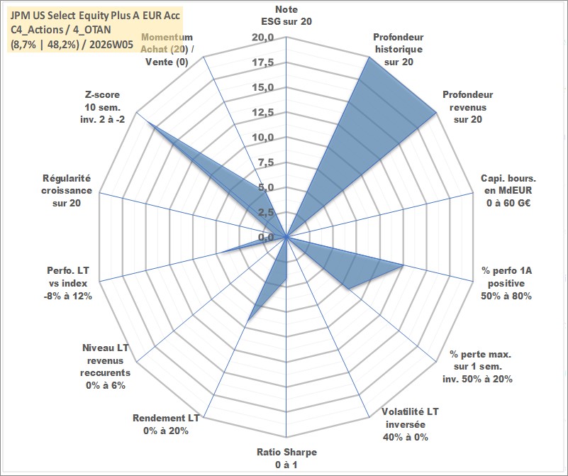 Site dédié aux investisseursPage dédiée sur site financeAnalyse des valorisations hebdomadaires du fonds JPM US Select Equity Plus A EUR Acc. Cet actif est cote en EUR. Les valorisations couvrent les semaines 1997W01 a 2026W05. Les revenus de cet actif financier sont pris en compte depuis la semaine 1997W01. La note ESG de cet actif n'est pas connue.