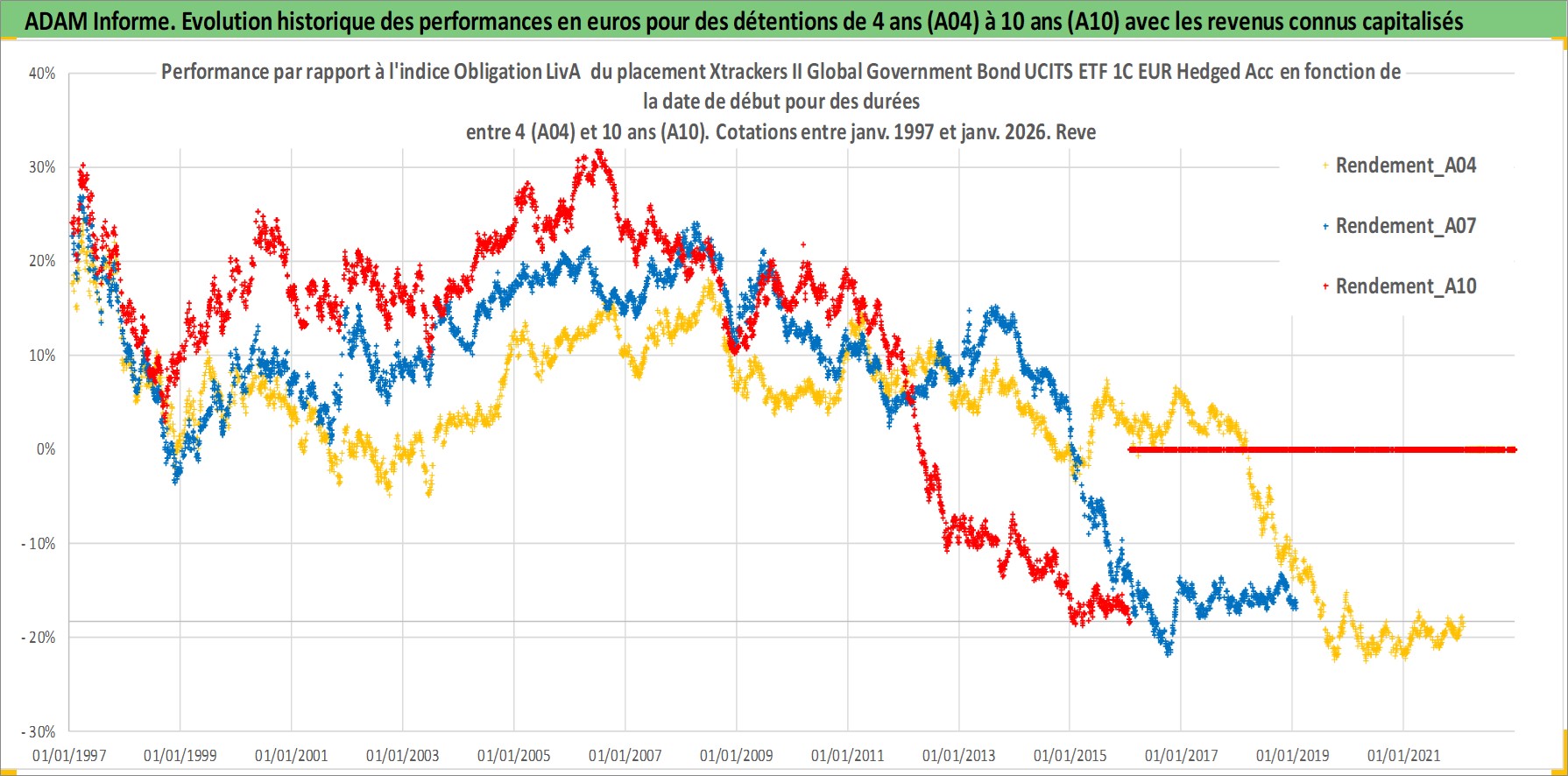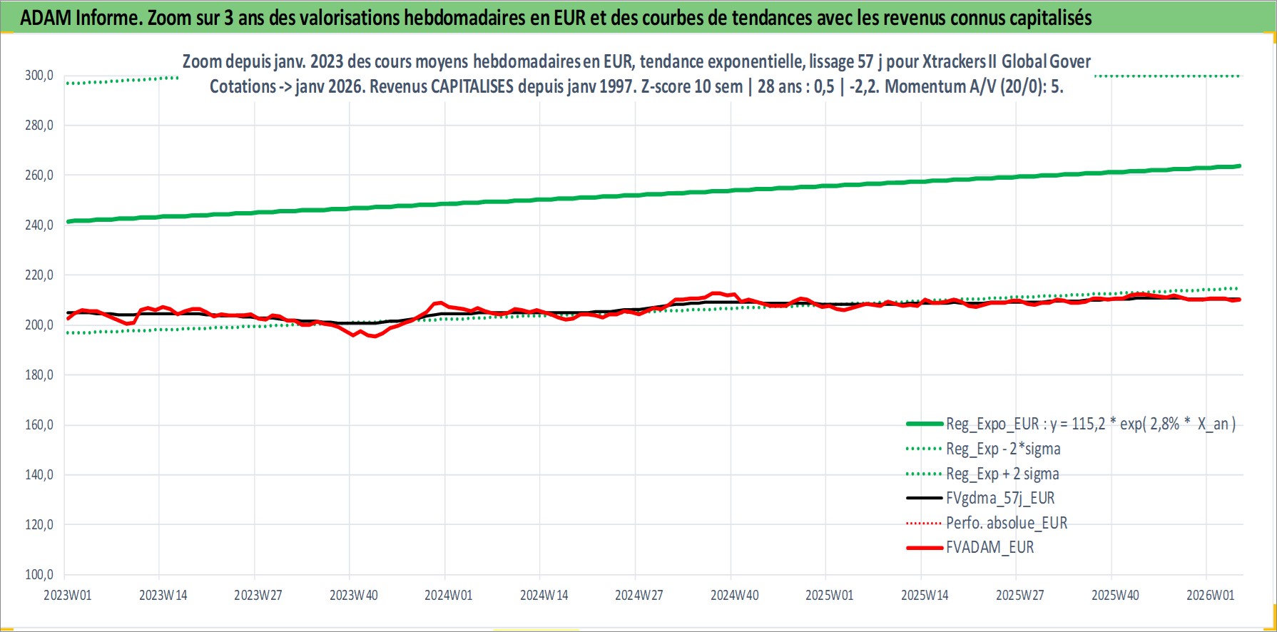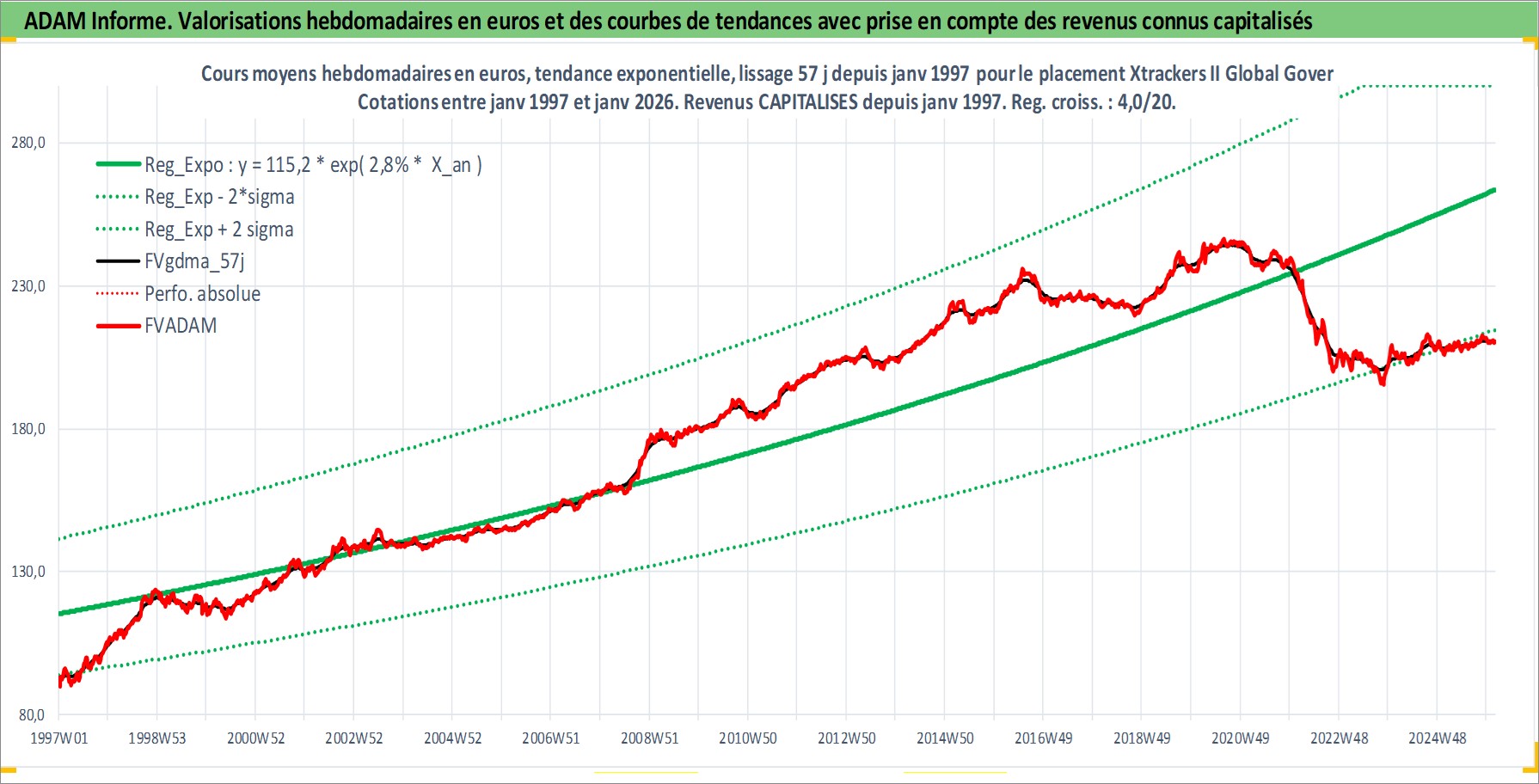 Site dédié aux investisseursPage dédiée sur site financeAnalyse des valorisations hebdomadaires du fonds Xtrackers II Global Government Bond UCITS ETF 1C EUR Hedged Acc. Cet actif est cote en EUR. Les valorisations couvrent les semaines 1997W01 a 2026W05. Les revenus de cet actif financier sont pris en compte depuis la semaine 1997W01. La note ESG de cet actif n'est pas connue.