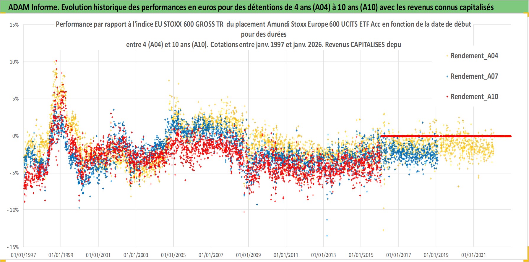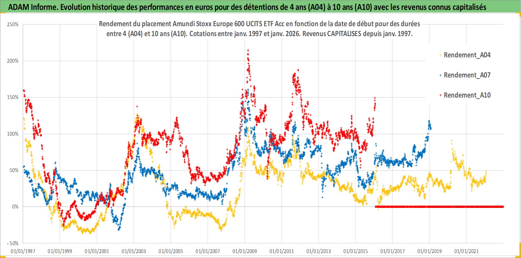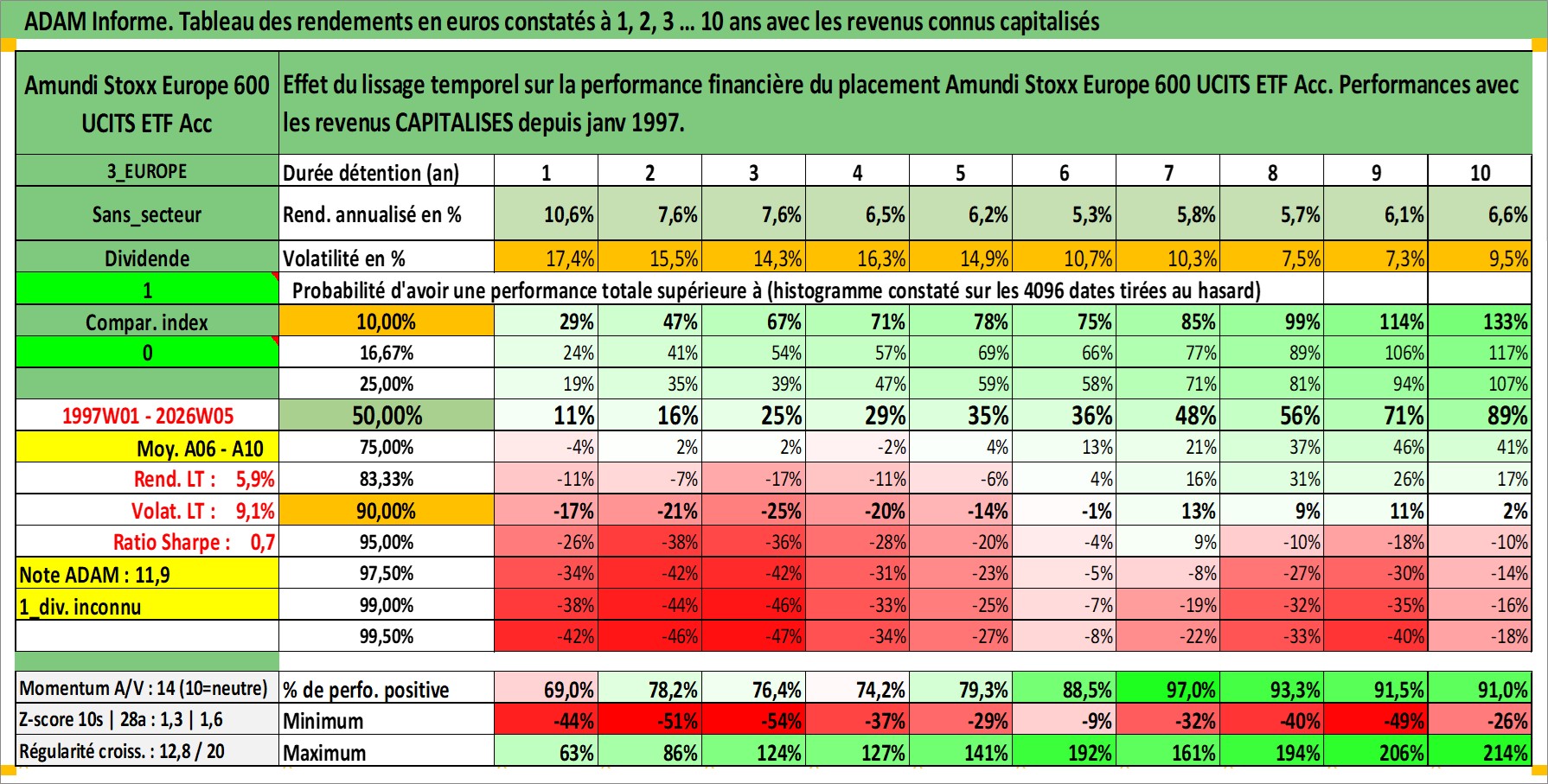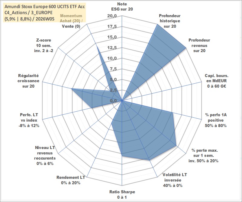 Site dédié aux investisseursPage dédiée sur site financeAnalyse des valorisations hebdomadaires du fonds Amundi Stoxx Europe 600 UCITS ETF Acc. Cet actif est cote en EUR. Les valorisations couvrent les semaines 1997W01 a 2026W05. Les revenus de cet actif financier sont pris en compte depuis la semaine 1997W01. La note ESG de cet actif n'est pas connue.