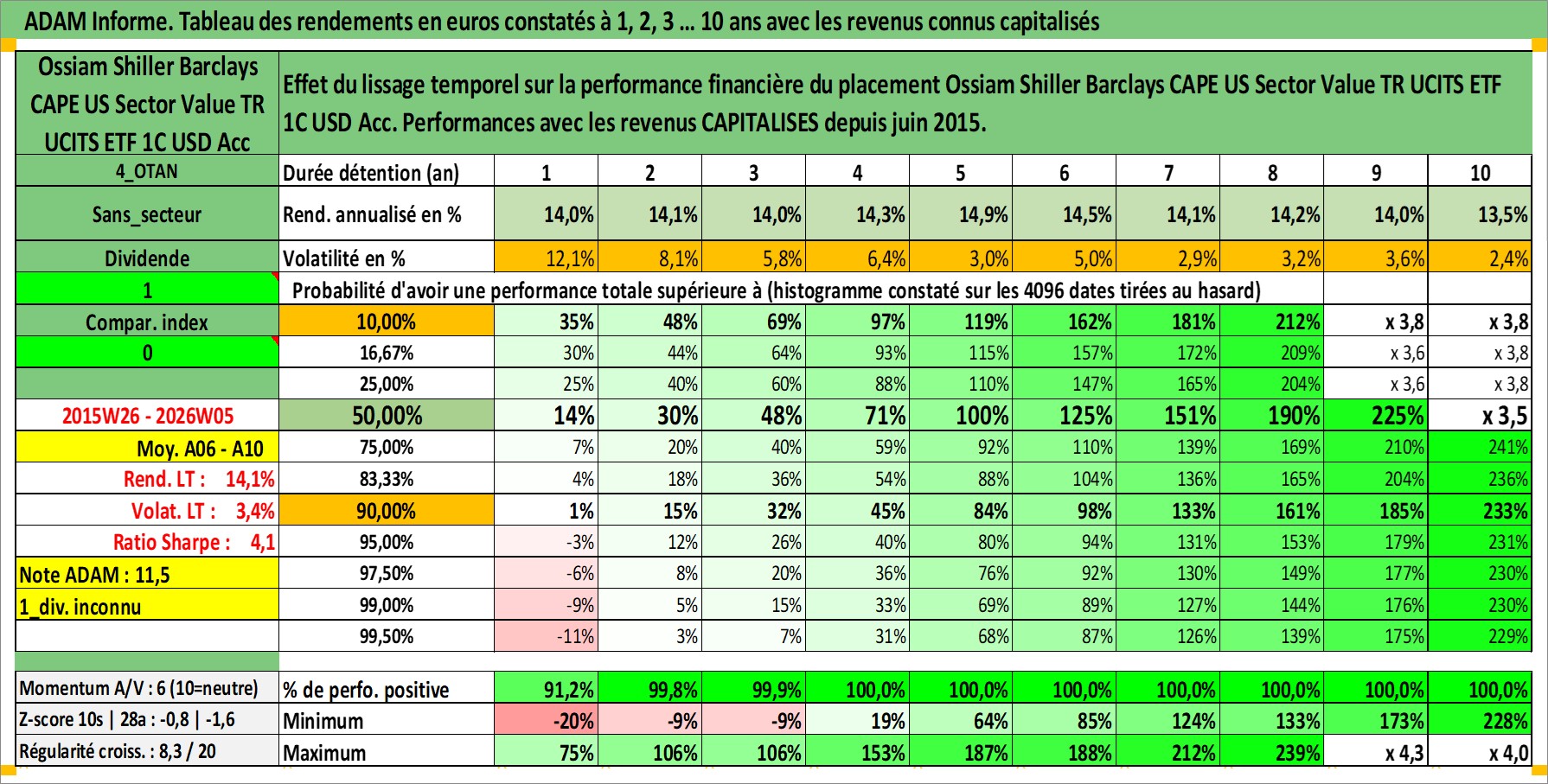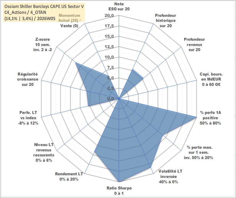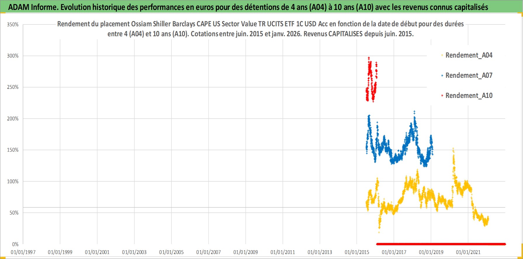 Site dédié aux investisseursPage dédiée sur site financeAnalyse des valorisations hebdomadaires du fonds Ossiam Shiller Barclays CAPE US Sector Value TR UCITS ETF 1C USD Acc. Cet actif est cote en USD. Les valorisations sont en contrevaleur EURO et couvrent les semaines 2015W26 a 2026W05. Les revenus de cet actif financier sont pris en compte depuis la semaine 2015W26. La note ESG de cet actif n'est pas connue.