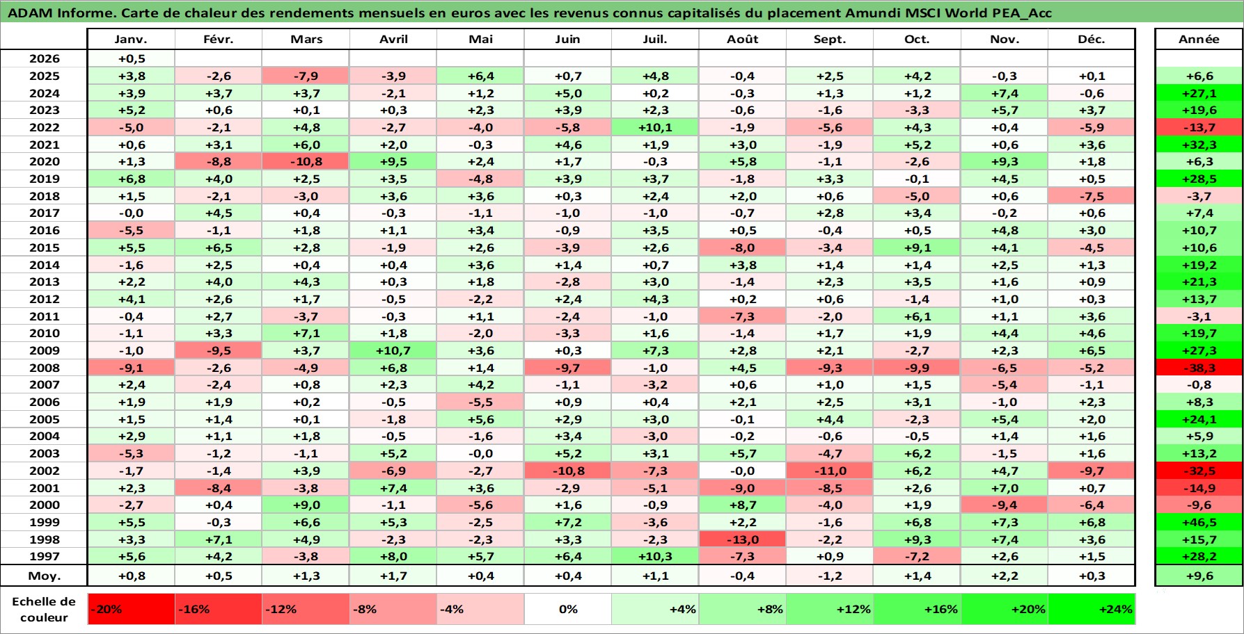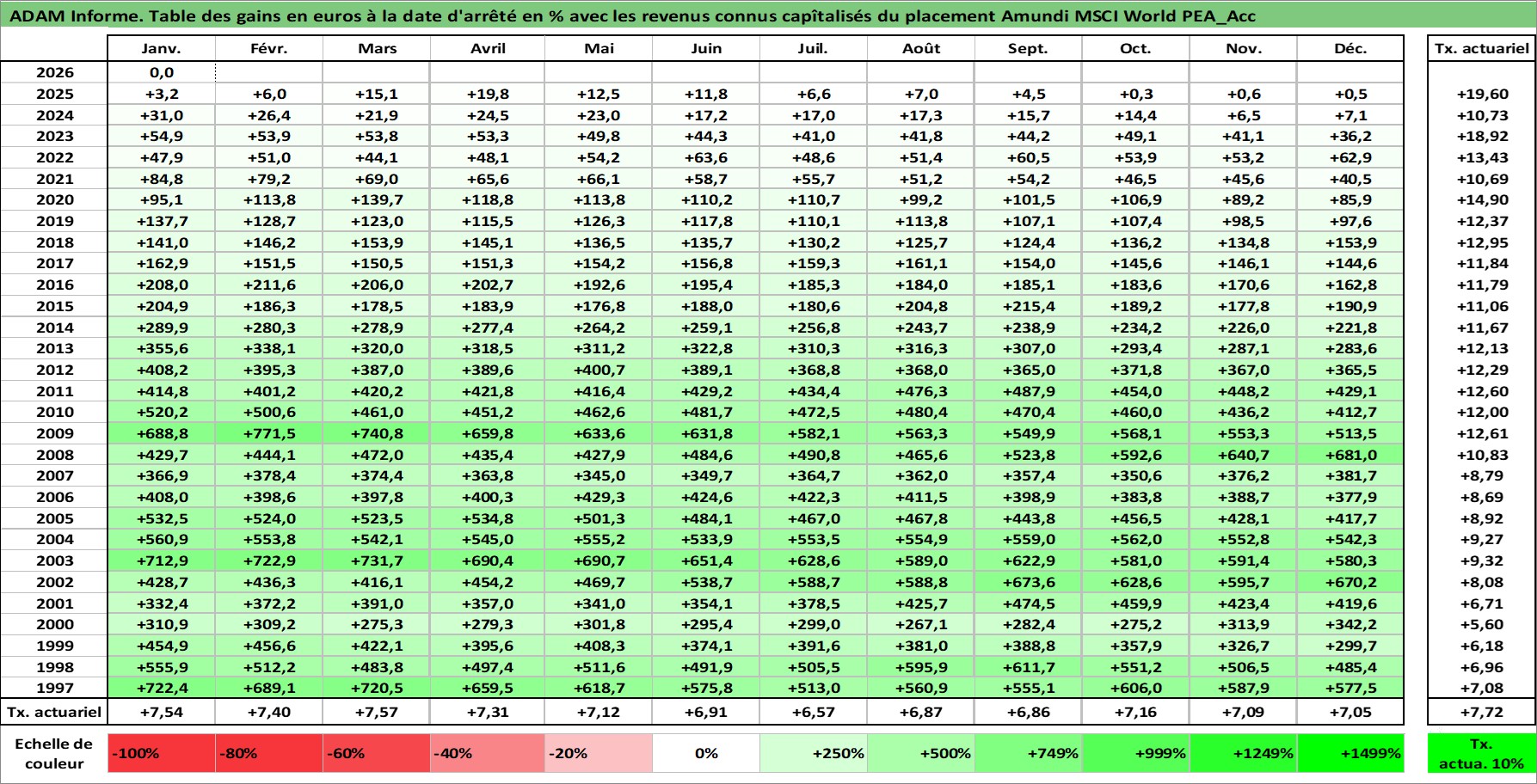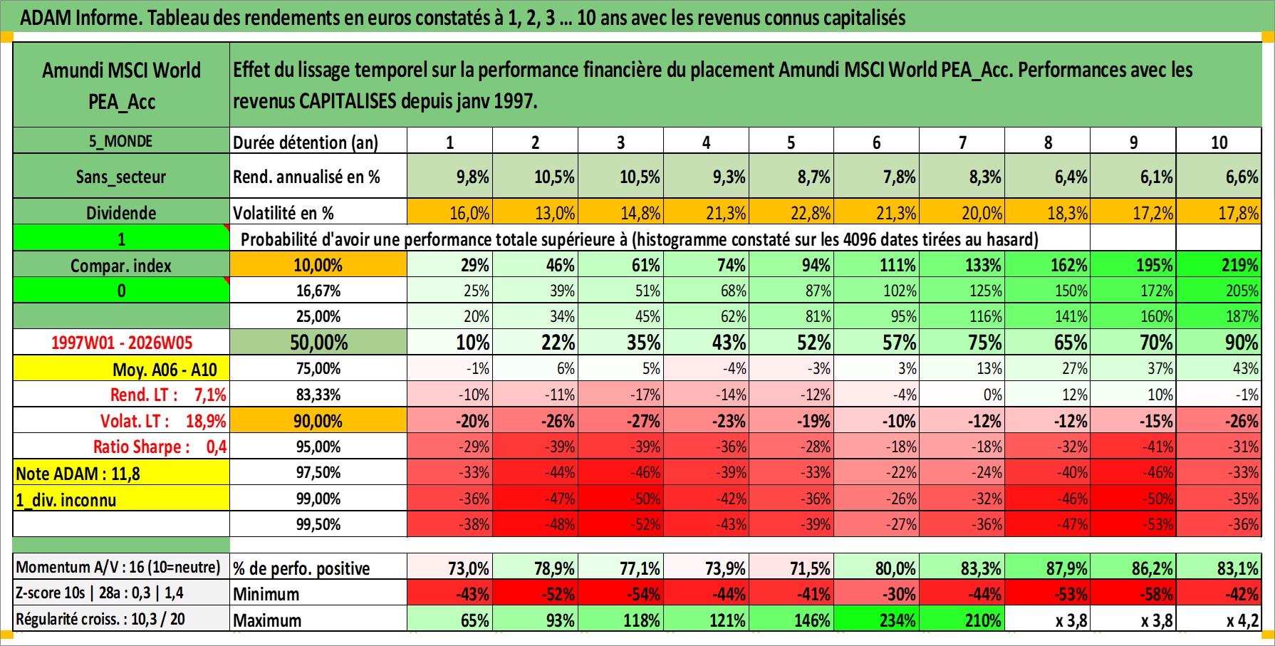 Site dédié aux investisseursPage dédiée sur site financeAnalyse des valorisations hebdomadaires du fonds Amundi MSCI World PEA_Acc. Cet actif est cote en EUR. Les valorisations couvrent les semaines 1997W01 a 2026W05. Les revenus de cet actif financier sont pris en compte depuis la semaine 1997W01. La note ESG de cet actif n'est pas connue.