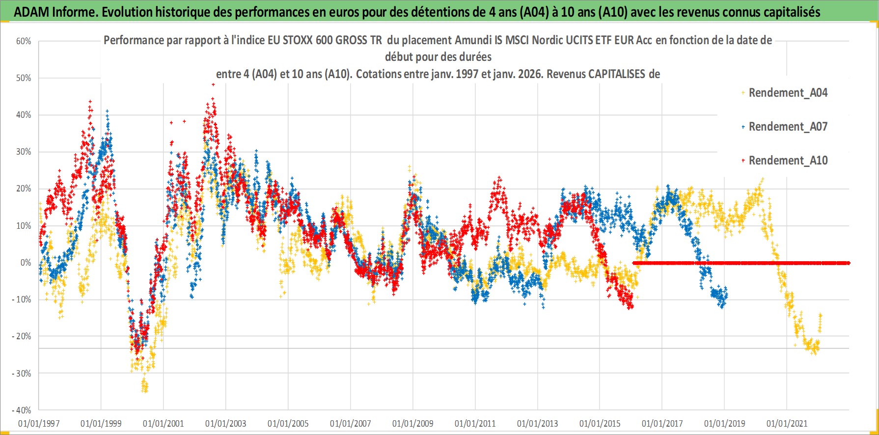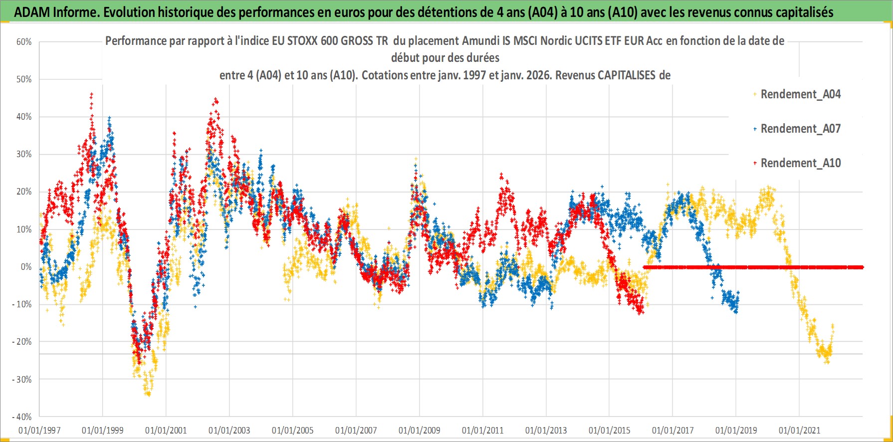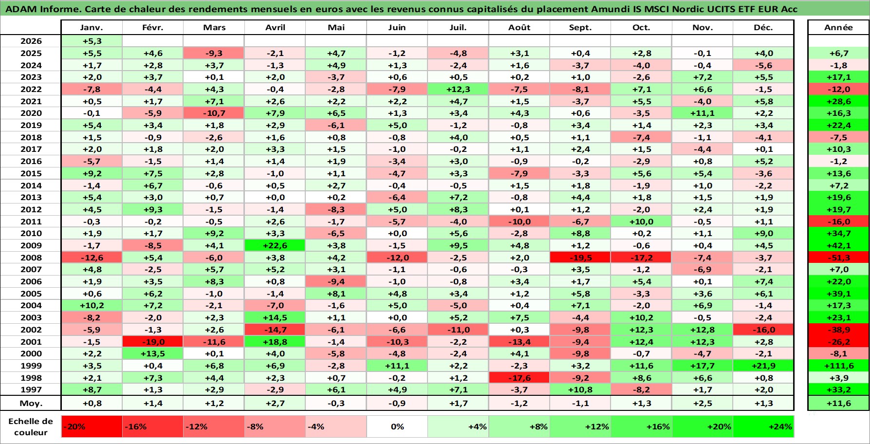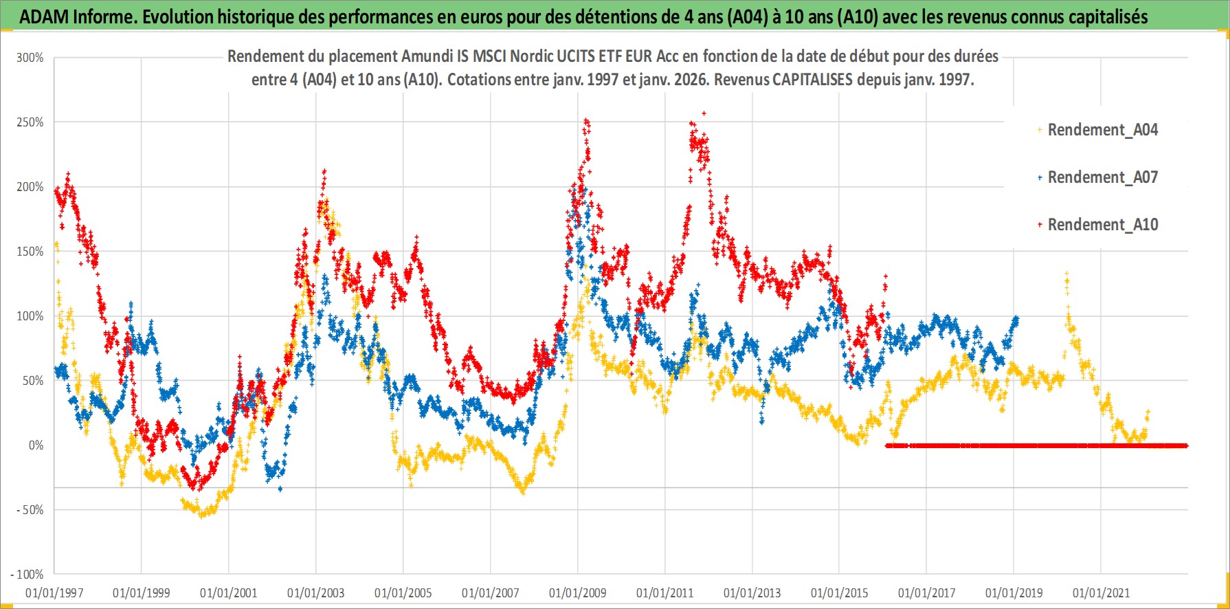 Site dédié aux investisseursPage dédiée sur site financeAnalyse des valorisations hebdomadaires du fonds Amundi IS MSCI Nordic UCITS ETF EUR Acc. Cet actif est cote en EUR. Les valorisations couvrent les semaines 1997W01 a 2026W05. Les revenus de cet actif financier sont pris en compte depuis la semaine 1997W01. La note ESG de cet actif n'est pas connue.