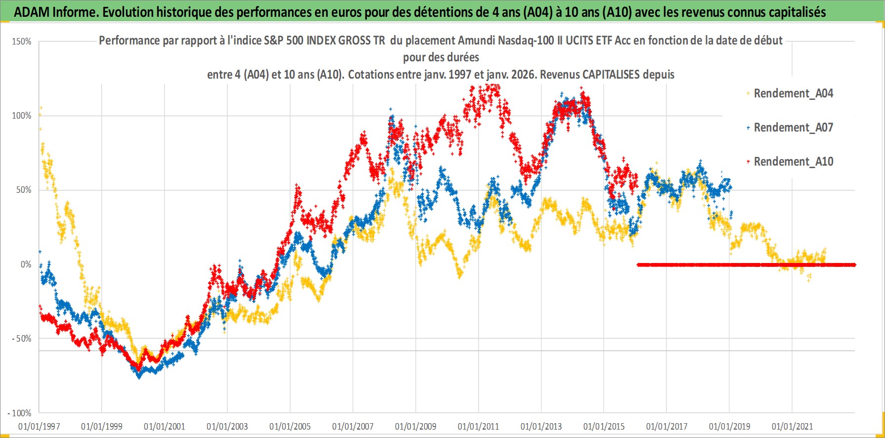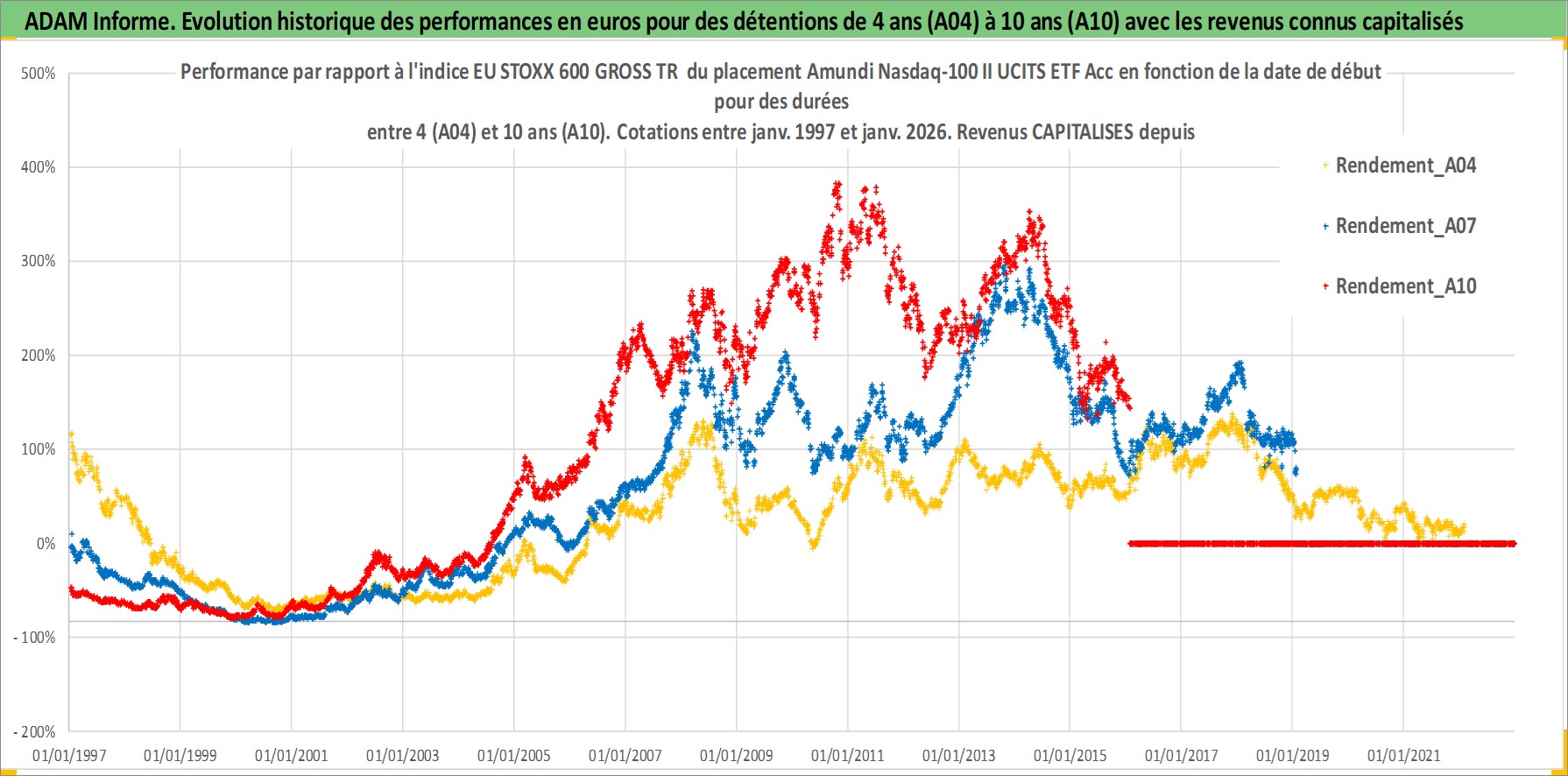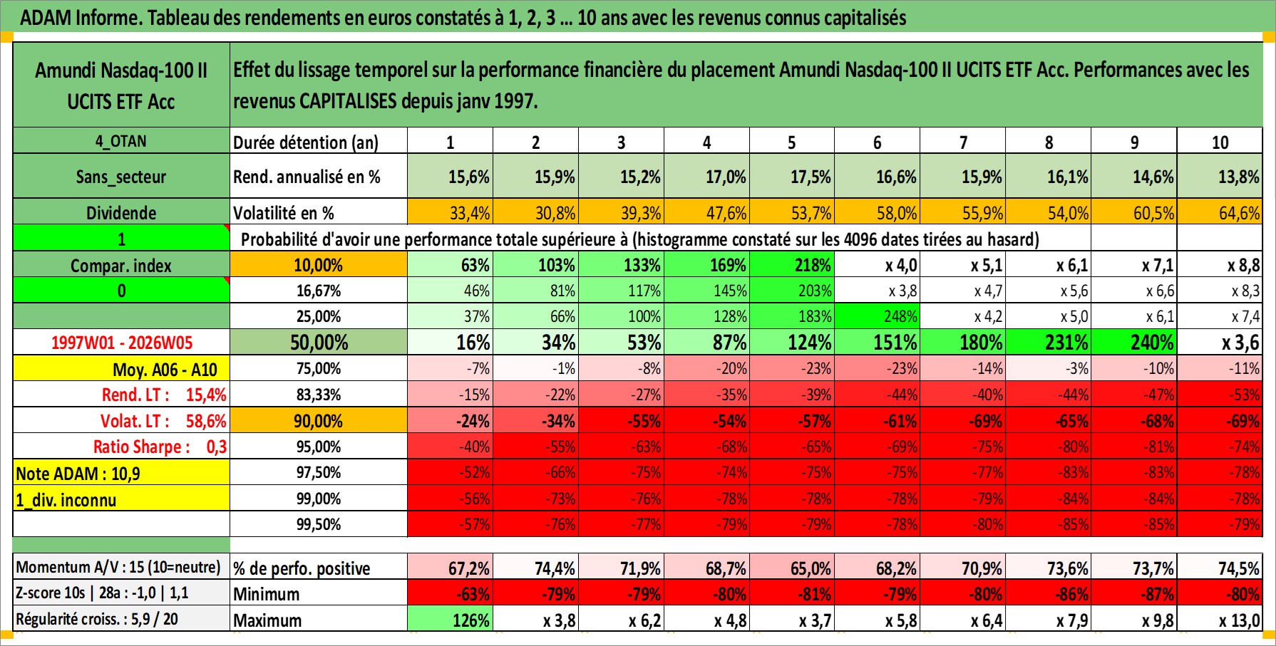 Site dédié aux investisseursPage dédiée sur site financeAnalyse des valorisations hebdomadaires du fonds Amundi Nasdaq-100 II UCITS ETF Acc. Cet actif est cote en USD. Les valorisations sont en contrevaleur EURO et couvrent les semaines 1997W01 a 2026W05. Les revenus de cet actif financier sont pris en compte depuis la semaine 1997W01. La note ESG de cet actif n'est pas connue.