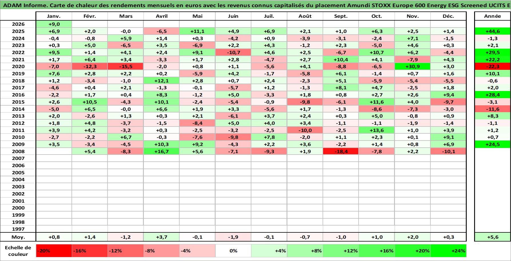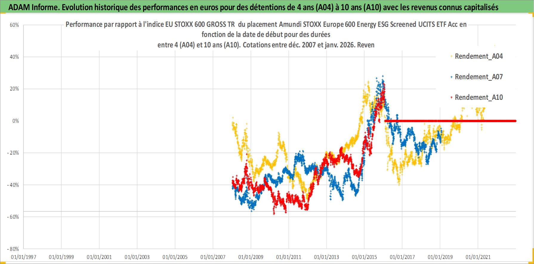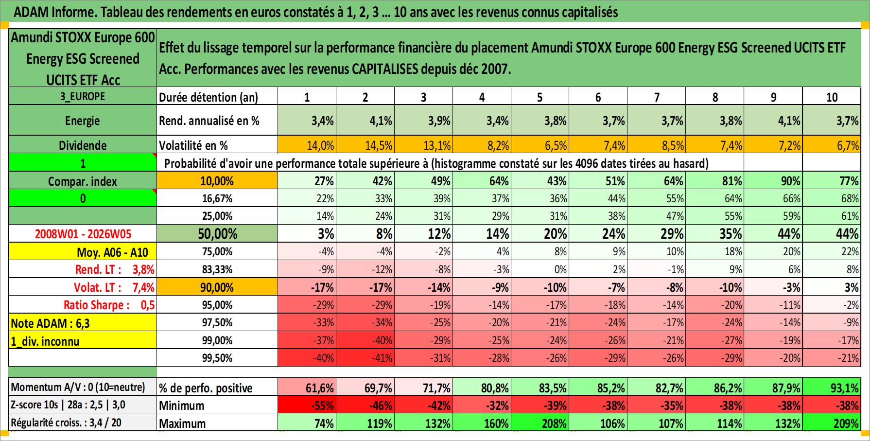 Site dédié aux investisseursPage dédiée sur site financeAnalyse des valorisations hebdomadaires du fonds Amundi STOXX Europe 600 Energy ESG Screened UCITS ETF Acc. Cet actif est cote en EUR. Les valorisations couvrent les semaines 2008W01 a 2026W05. Les revenus de cet actif financier sont pris en compte depuis la semaine 2008W01. La note ESG de cet actif n'est pas connue.