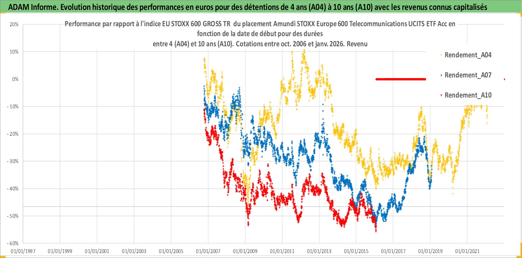 Site dédié aux investisseursPage dédiée sur site financeAnalyse des valorisations hebdomadaires du fonds Amundi STOXX Europe 600 Telecommunications UCITS ETF Acc. Cet actif est cote en EUR. Les valorisations couvrent les semaines 2006W40 a 2026W05. Les revenus de cet actif financier sont pris en compte depuis la semaine 2006W40. La note ESG de cet actif n'est pas connue.