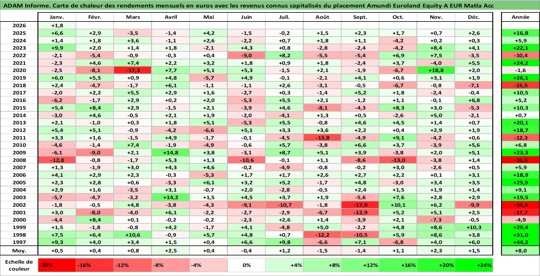 Site dédié aux investisseursPage dédiée sur site financeAnalyse des valorisations hebdomadaires du fonds Amundi Euroland Equity A EUR Matla Acc. Cet actif est cote en EUR. Les valorisations couvrent les semaines 1997W01 a 2026W05. Les revenus de cet actif financier sont pris en compte depuis la semaine 1997W01. La note ESG de cet actif n'est pas connue.