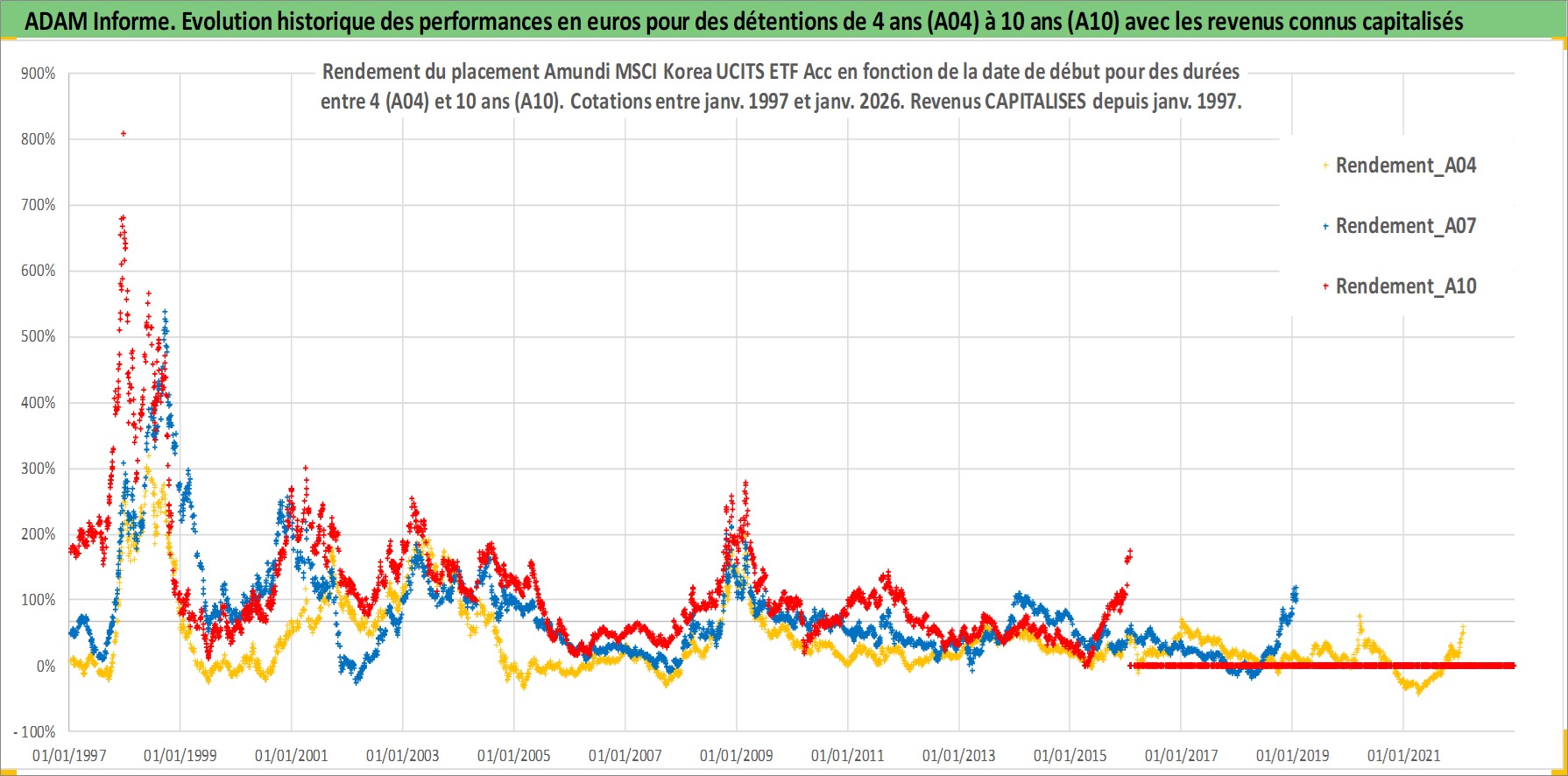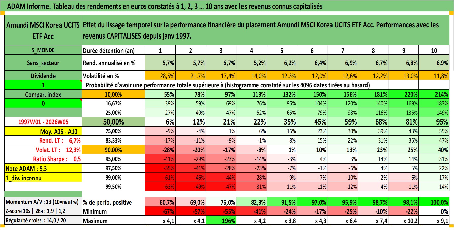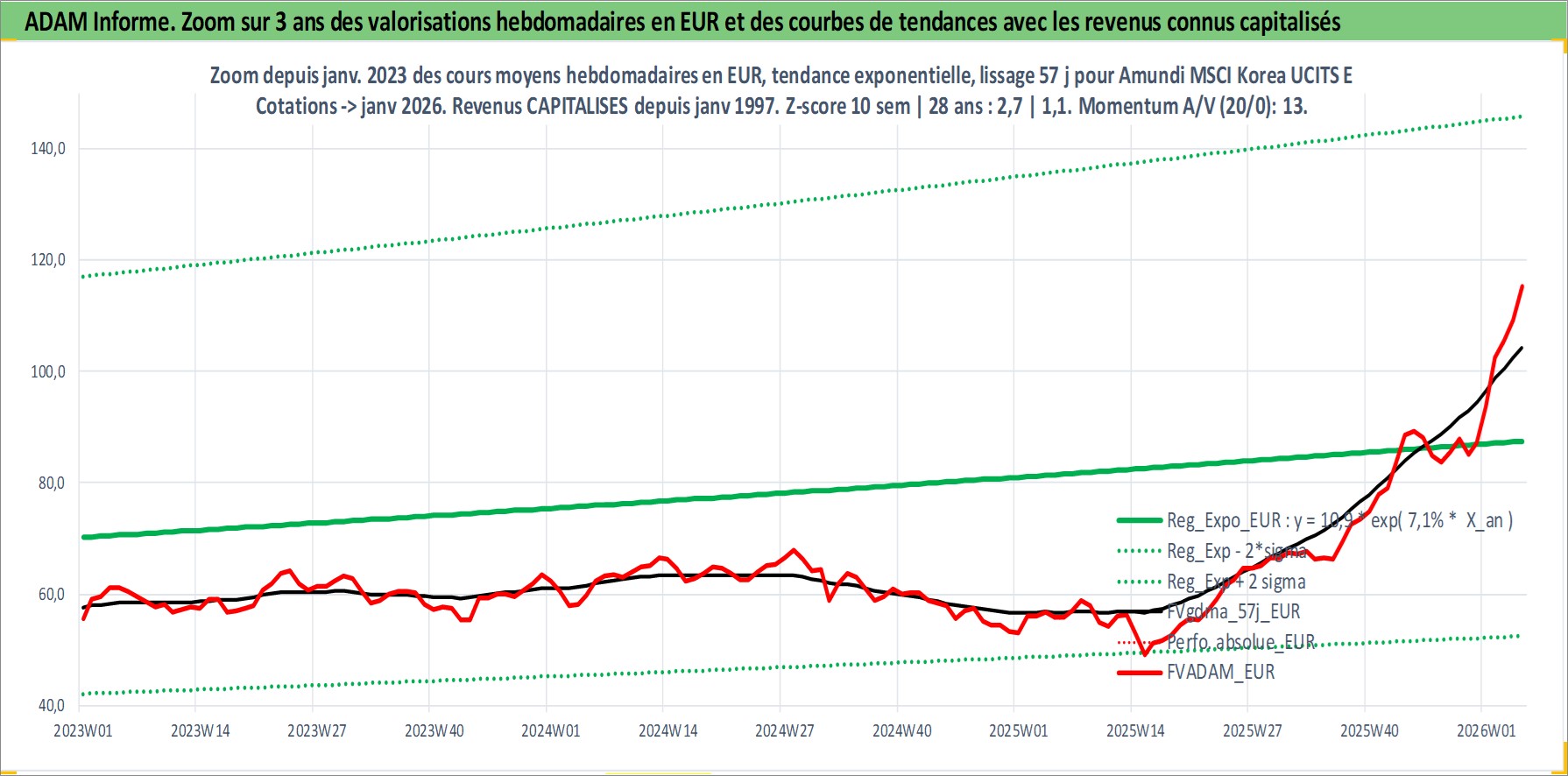Site dédié aux investisseursPage dédiée sur site financeAnalyse des valorisations hebdomadaires du fonds Amundi MSCI Korea UCITS ETF Acc. Cet actif est cote en EUR. Les valorisations couvrent les semaines 1997W01 a 2026W05. Les revenus de cet actif financier sont pris en compte depuis la semaine 1997W01. La note ESG de cet actif n'est pas connue.