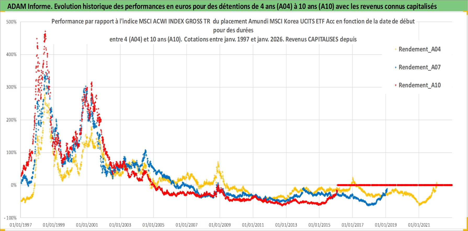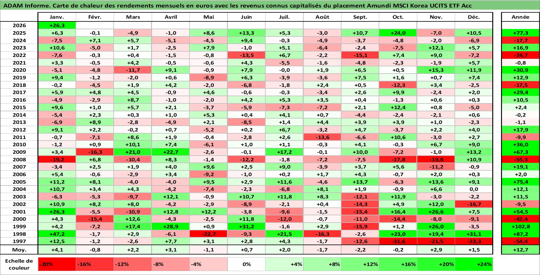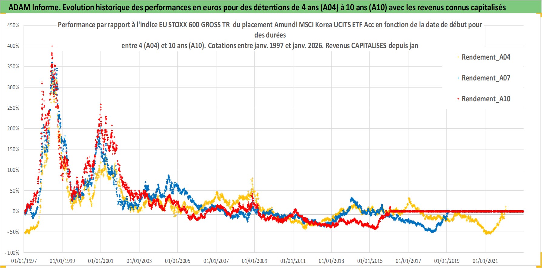 Site dédié aux investisseursPage dédiée sur site financeAnalyse des valorisations hebdomadaires du fonds Amundi MSCI Korea UCITS ETF Acc. Cet actif est cote en EUR. Les valorisations couvrent les semaines 1997W01 a 2026W05. Les revenus de cet actif financier sont pris en compte depuis la semaine 1997W01. La note ESG de cet actif n'est pas connue.