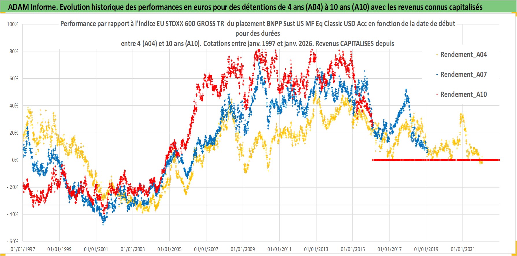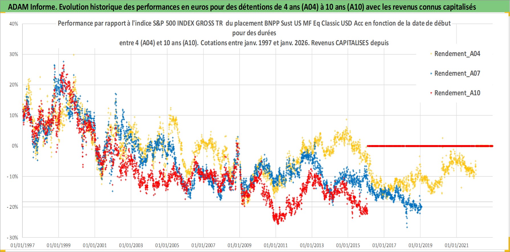 Site dédié aux investisseursPage dédiée sur site financeAnalyse des valorisations hebdomadaires du fonds BNPP Sust US MF Eq Classic USD Acc. Cet actif est cote en USD. Les valorisations sont en contrevaleur EURO et couvrent les semaines 1997W01 a 2026W05. Les revenus de cet actif financier sont pris en compte depuis la semaine 1997W01. La note globale ESG de cet actif est estimee a 10.0 (apres rebasage entre 0 et 20).