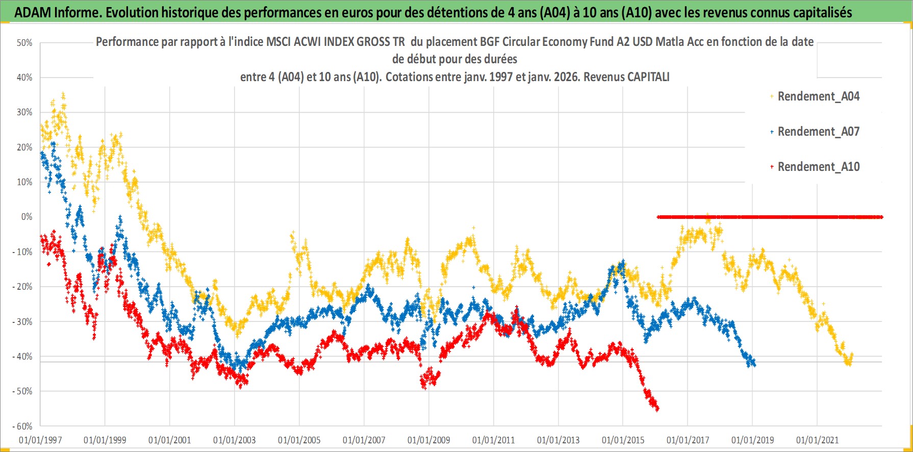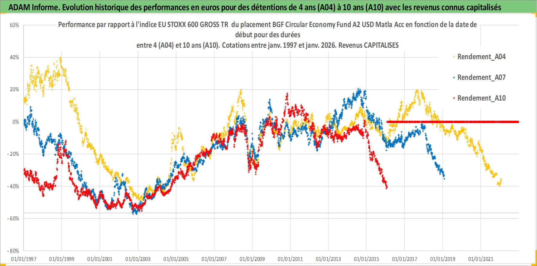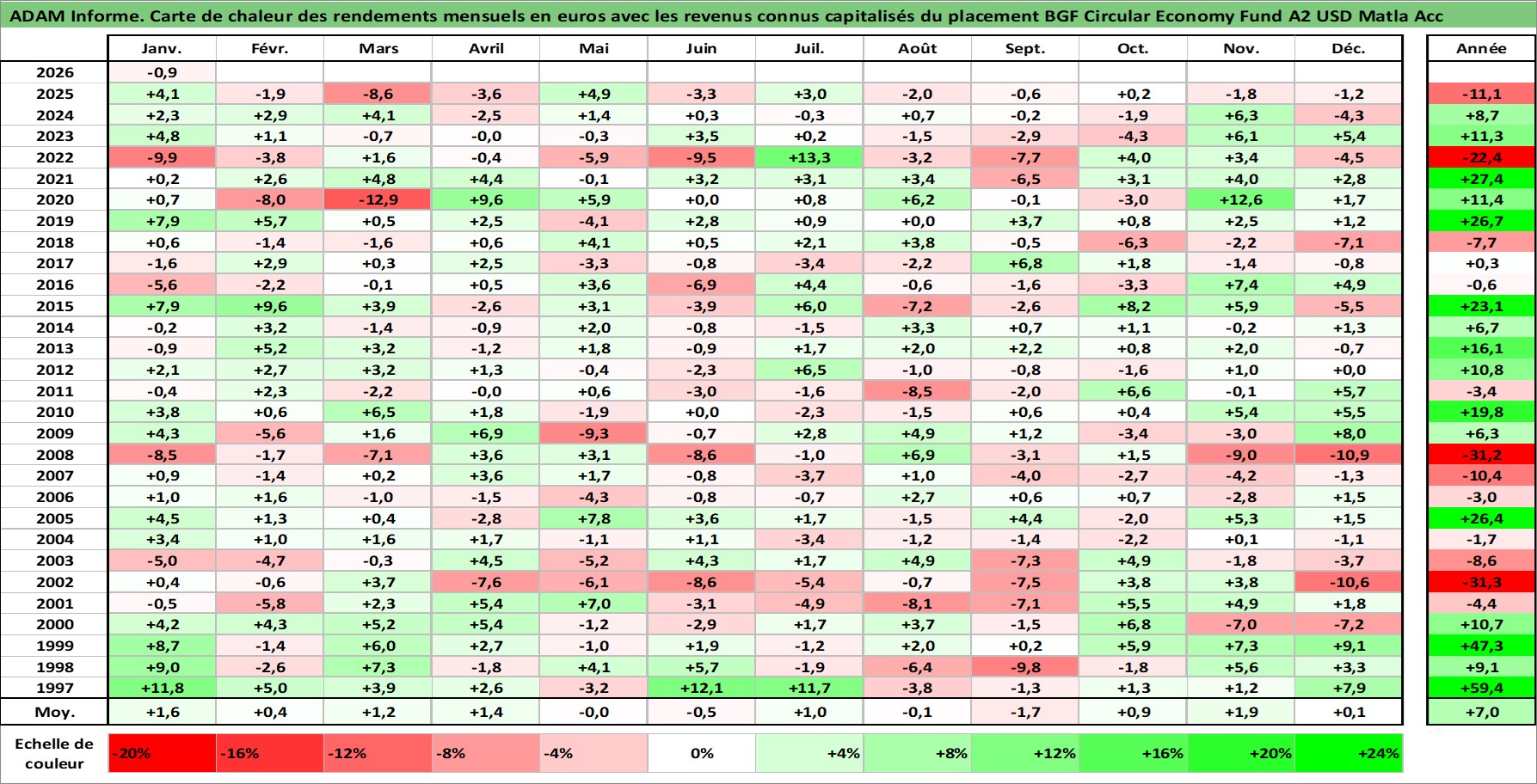 Site dédié aux investisseursPage dédiée sur site financeAnalyse des valorisations hebdomadaires du fonds BGF Circular Economy Fund A2 USD Matla Acc. Cet actif est cote en USD. Les valorisations sont en contrevaleur EURO et couvrent les semaines 1997W01 a 2026W05. Les revenus de cet actif financier sont pris en compte depuis la semaine 1997W01. La note globale ESG de cet actif est estimee a 7.9 (apres rebasage entre 0 et 20).