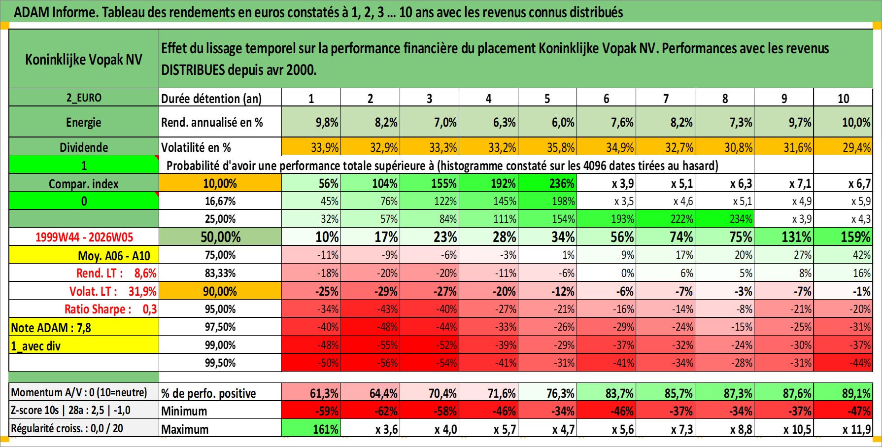 Site dédié aux investisseursPage dédiée sur site financeAnalyse des valorisations hebdomadaires de l'action Koninklijke Vopak NV. Cet actif est cote en EUR. Les valorisations couvrent les semaines 1999W44 a 2026W05. Les revenus de cet actif financier sont pris en compte depuis la semaine 2000W15. La note globale ESG de cet actif est estimee a 7.0 (apres rebasage entre 0 et 20).