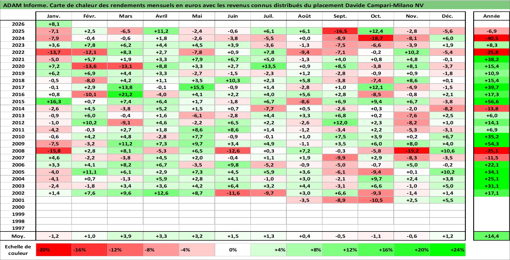 Dernière perfo 1 an en %