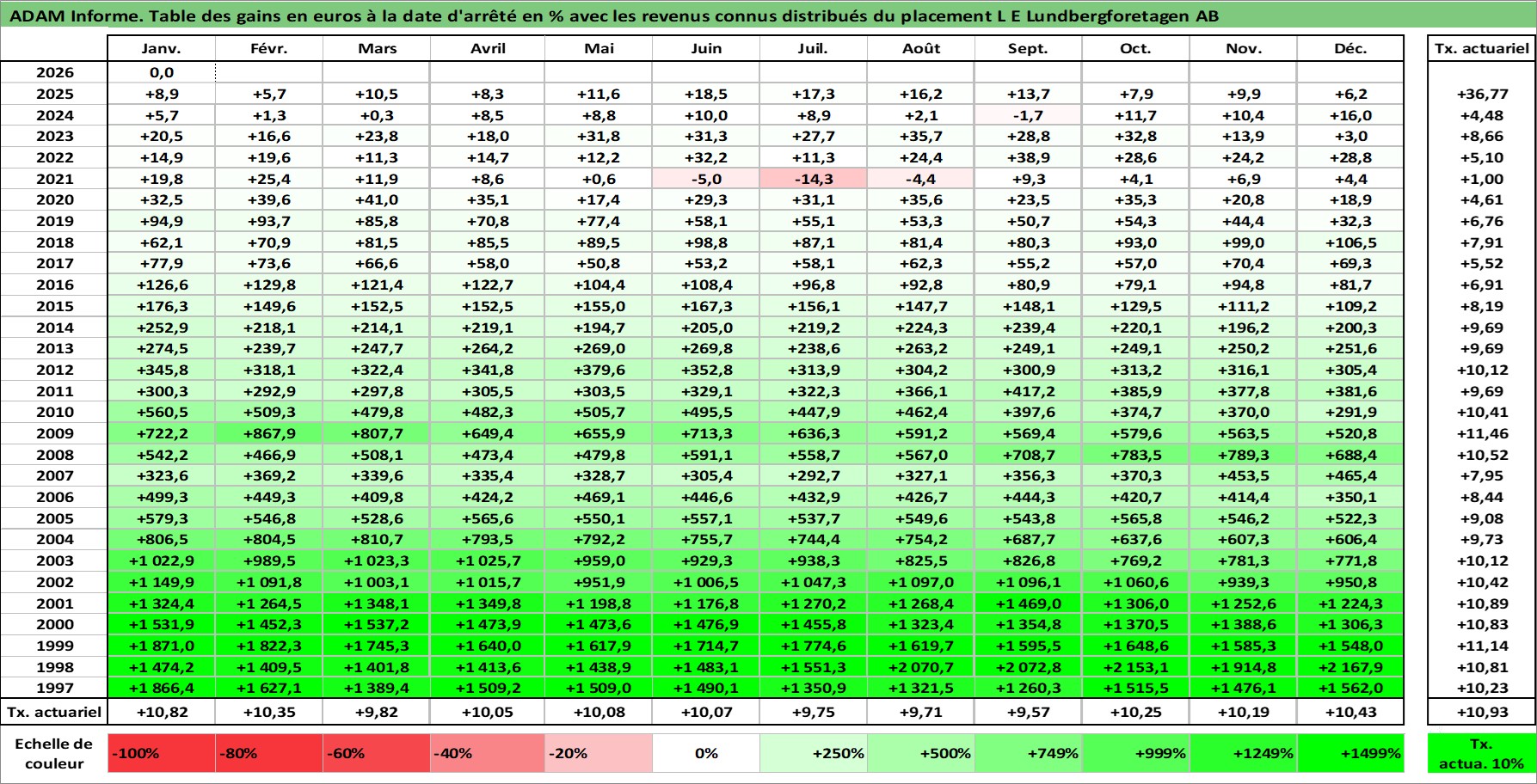 Dernière perfo 10 ans en %