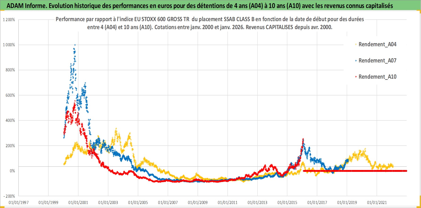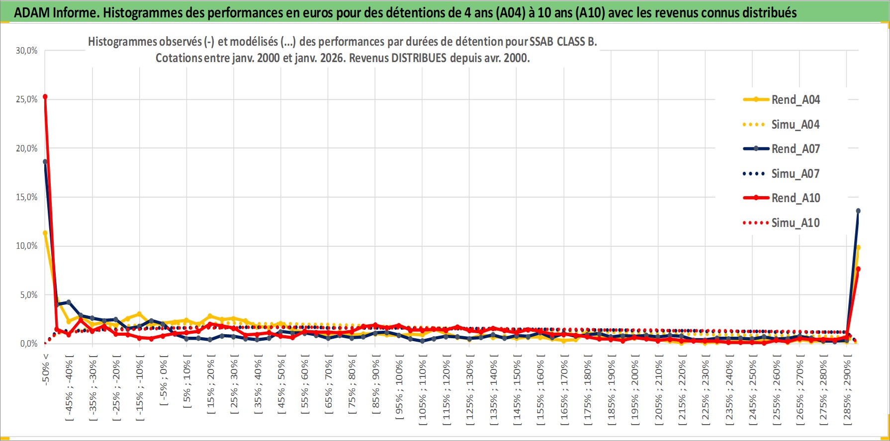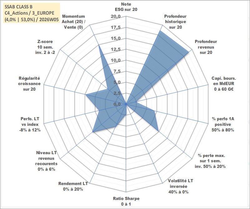Site dédié aux investisseursPage dédiée sur site financeAnalyse des valorisations hebdomadaires de l'action SSAB CLASS B. Cet actif est cote en SEK. Les valorisations sont en contrevaleur EURO et couvrent les semaines 2000W01 a 2026W05. Les revenus de cet actif financier sont pris en compte depuis la semaine 2000W17. La note ESG de cet actif n'est pas connue.