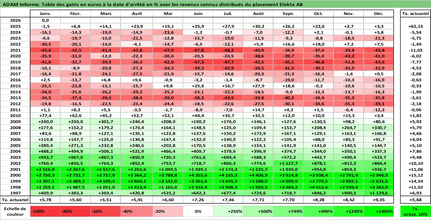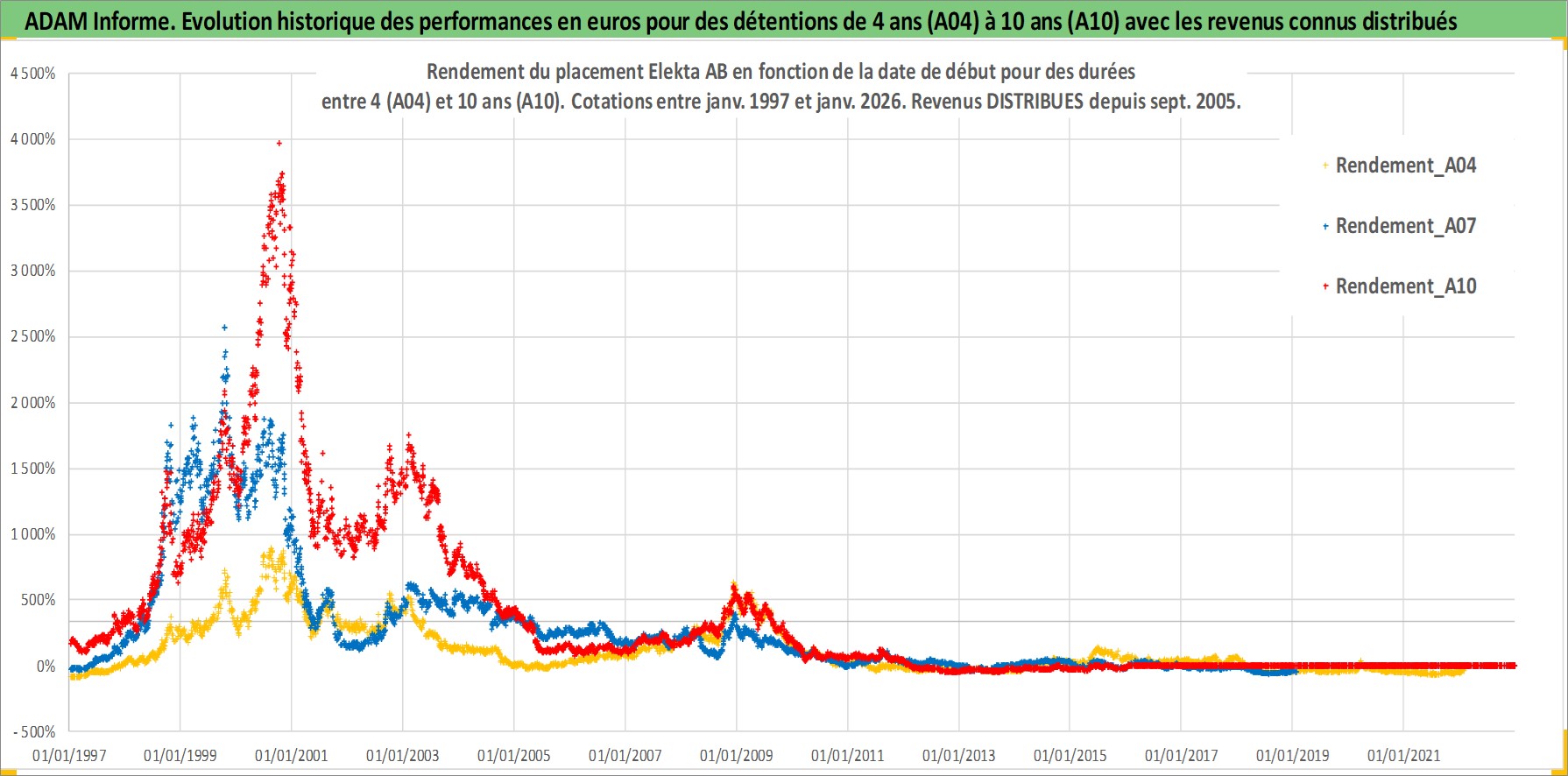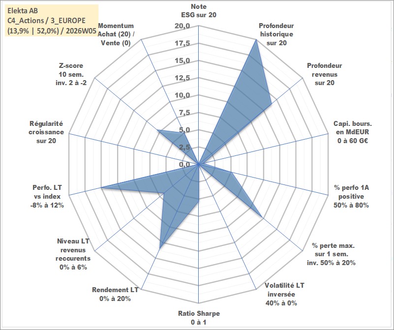 Site dédié aux investisseursPage dédiée sur site financeAnalyse des valorisations hebdomadaires de l'action Elekta AB. Cet actif est cote en SEK. Les valorisations sont en contrevaleur EURO et couvrent les semaines 1997W01 a 2026W05. Les revenus de cet actif financier sont pris en compte depuis la semaine 2005W38. La note ESG de cet actif n'est pas connue.