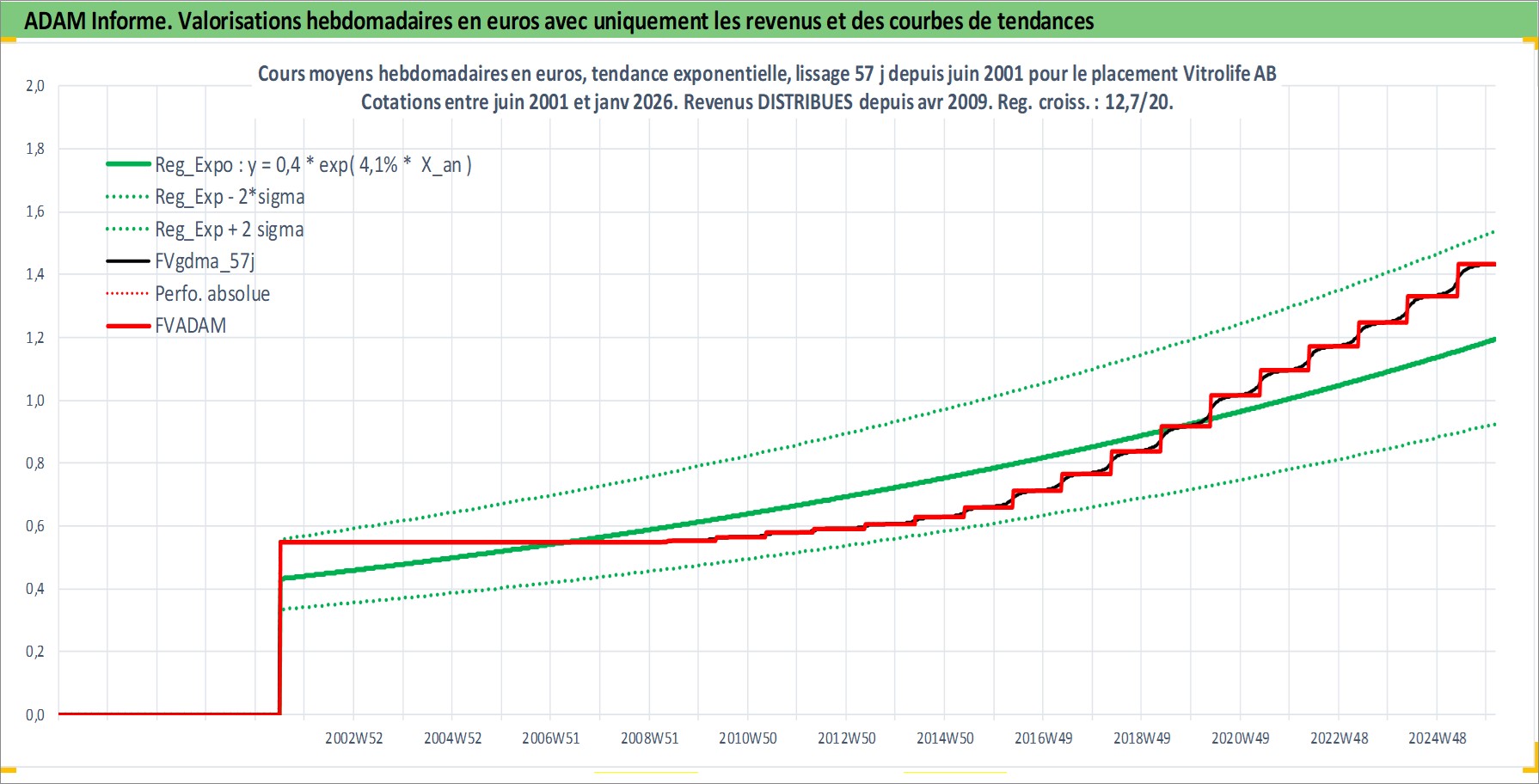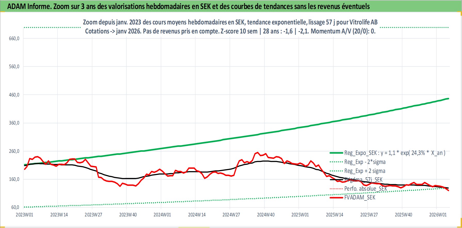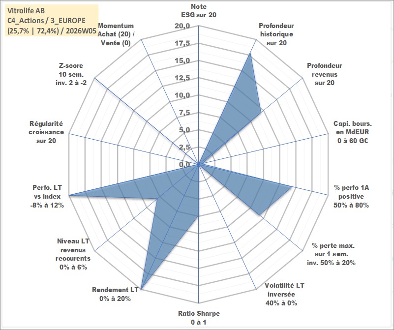Site dédié aux investisseursPage dédiée sur site financeAnalyse des valorisations hebdomadaires de l'action Vitrolife AB. Cet actif est cote en SEK. Les valorisations sont en contrevaleur EURO et couvrent les semaines 2001W26 a 2026W05. Les revenus de cet actif financier sont pris en compte depuis la semaine 2009W18. La note ESG de cet actif n'est pas connue.