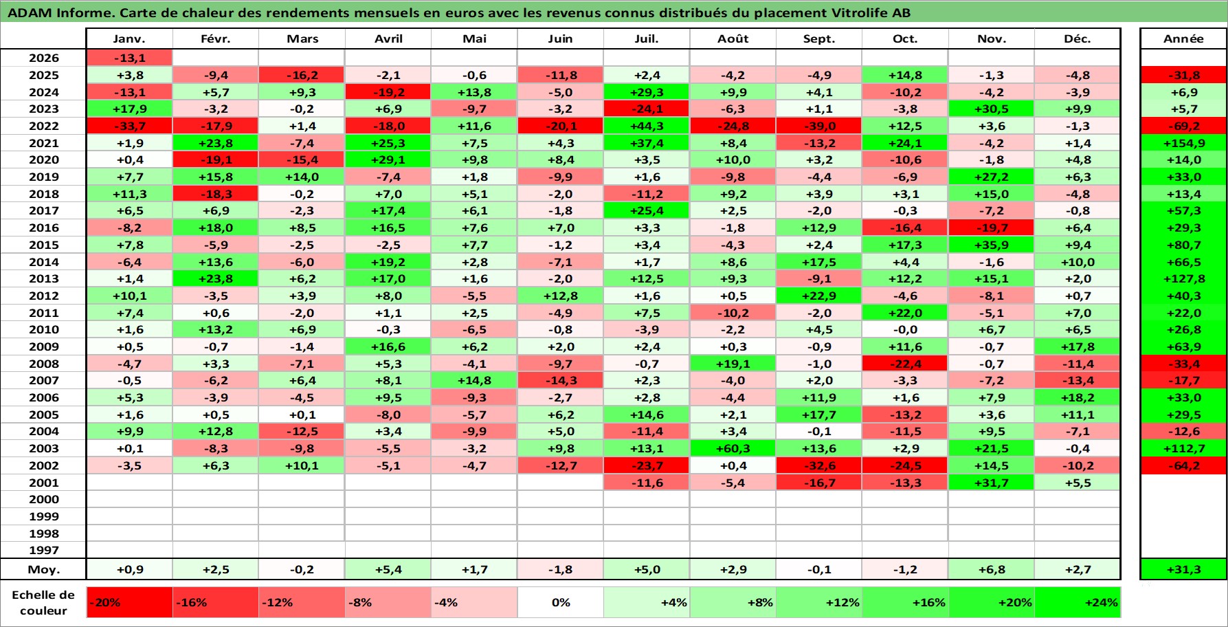 Dernière perfo 1 an en %