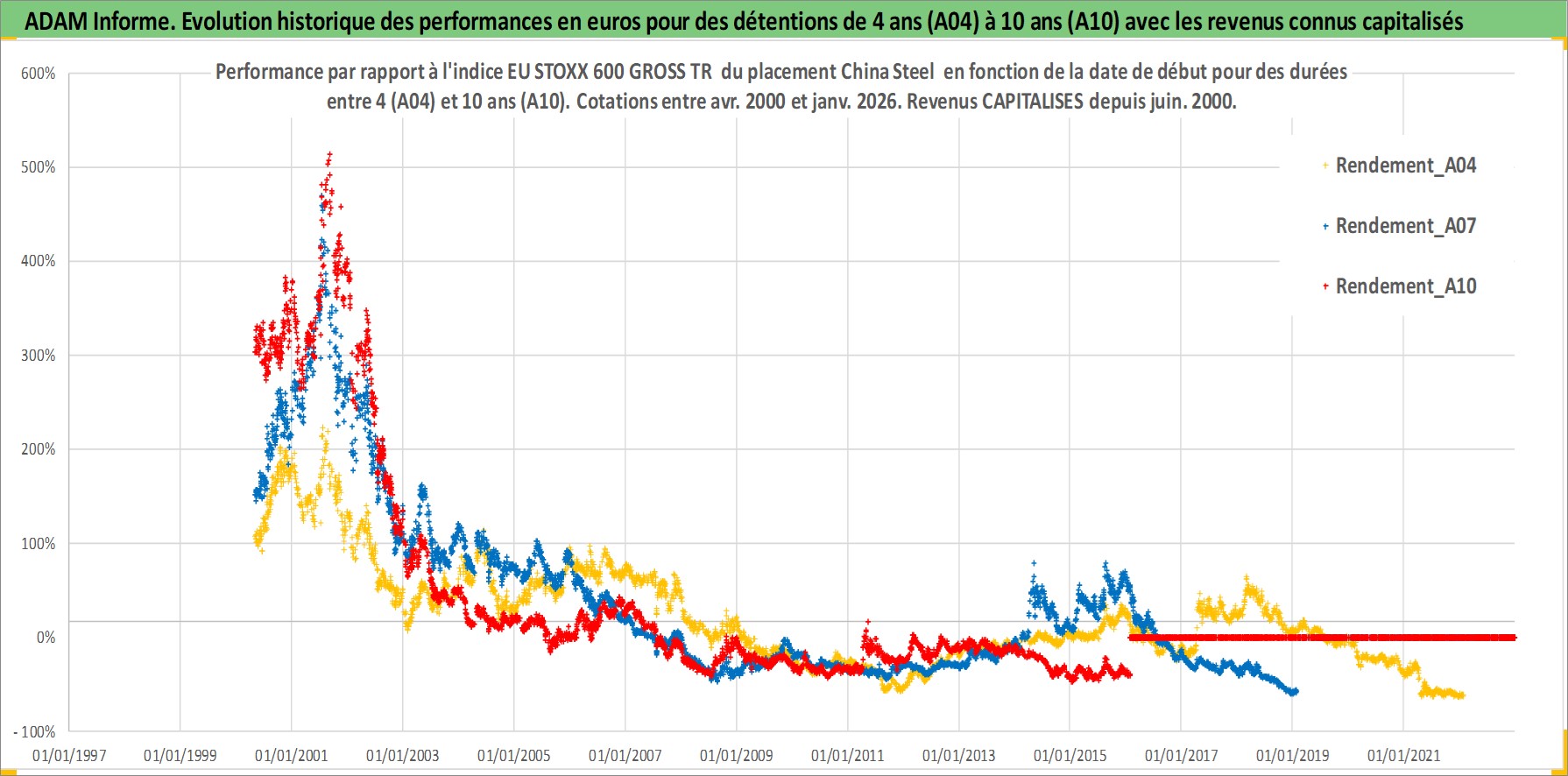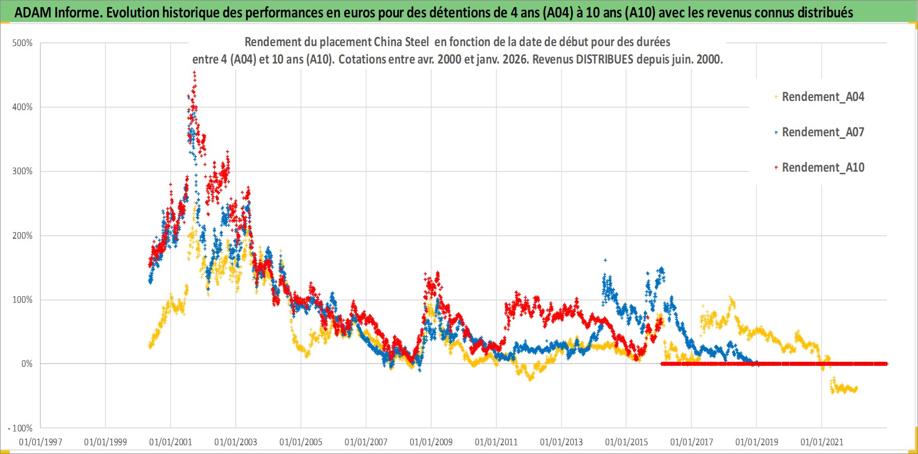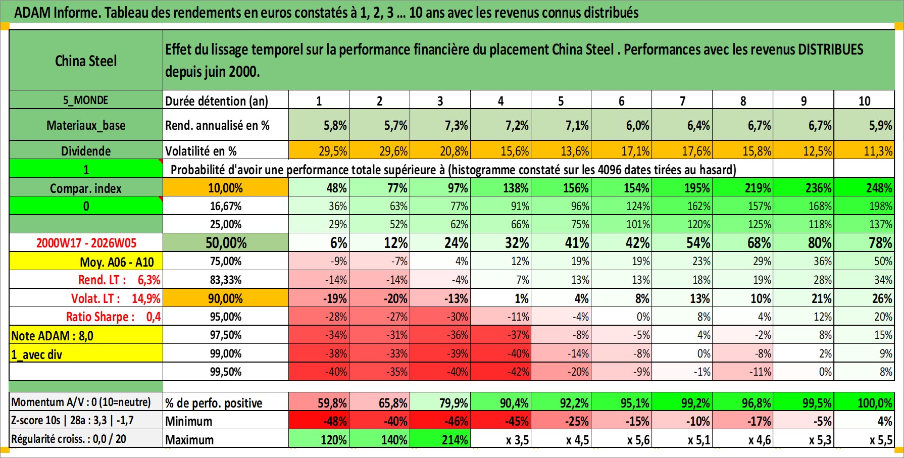 Site dédié aux investisseursPage dédiée sur site financeAnalyse des valorisations hebdomadaires de l'action China Steel . Cet actif est cote en TWD. Les valorisations sont en contrevaleur EURO et couvrent les semaines 2000W17 a 2026W05. Les revenus de cet actif financier sont pris en compte depuis la semaine 2000W25. La note globale ESG de cet actif est estimee a 5.0 (apres rebasage entre 0 et 20).