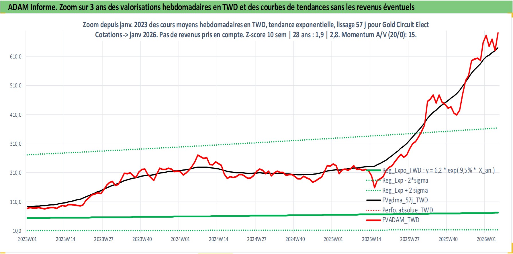 Site dédié aux investisseursPage dédiée sur site financeAnalyse des valorisations hebdomadaires de l'action Gold Circuit Elect . Cet actif est cote en TWD. Les valorisations sont en contrevaleur EURO et couvrent les semaines 2000W15 a 2026W05. Les revenus de cet actif financier sont pris en compte depuis la semaine 2005W31. La note ESG de cet actif n'est pas connue.