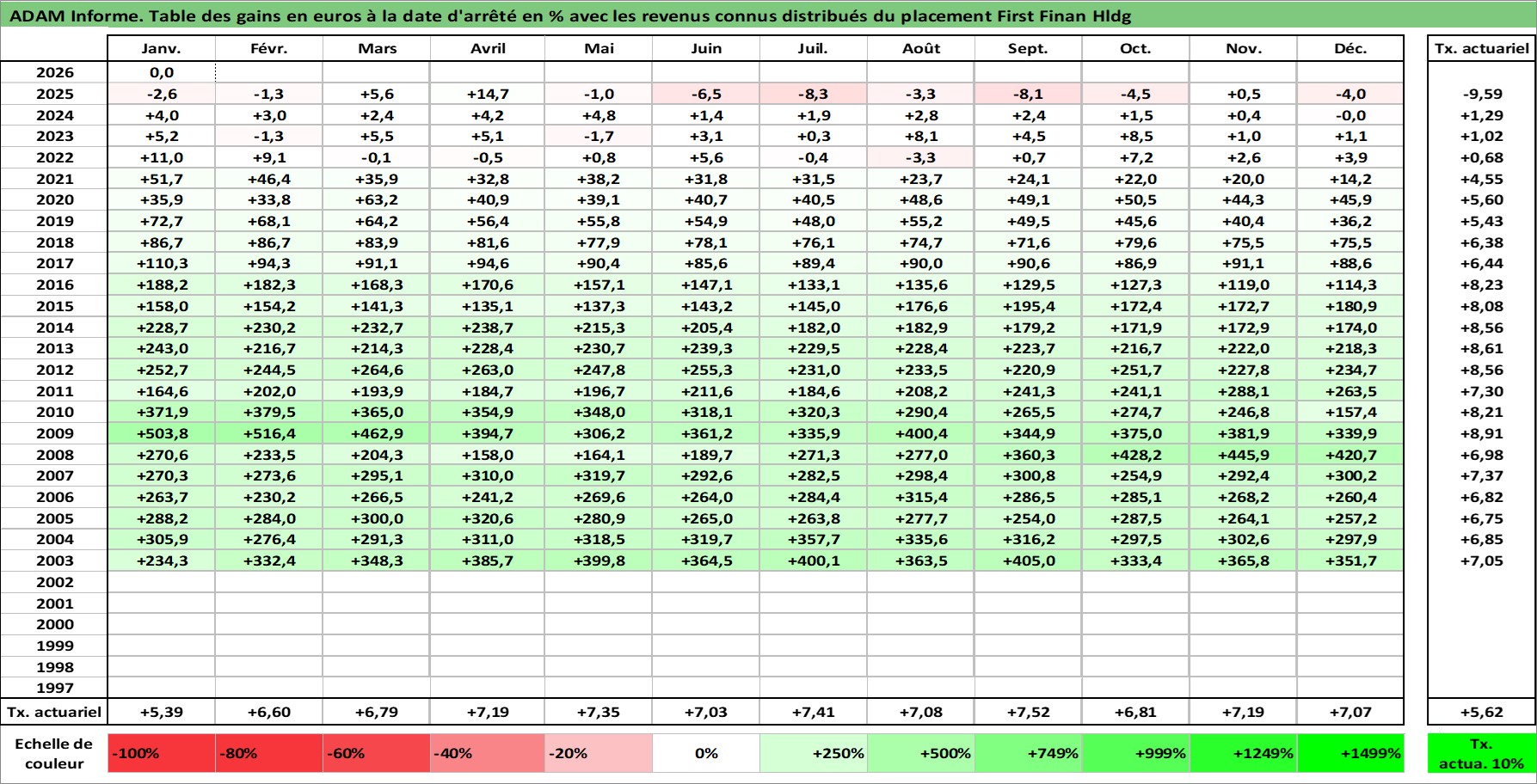 Dernière perfo 10 ans en %