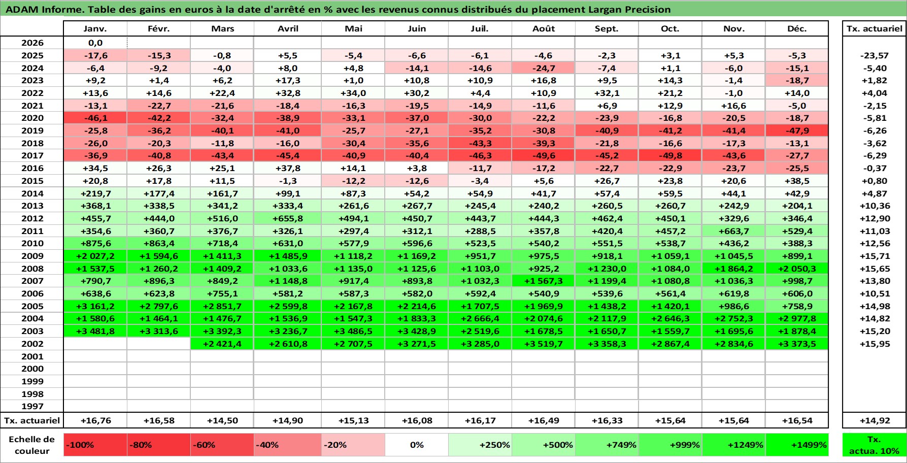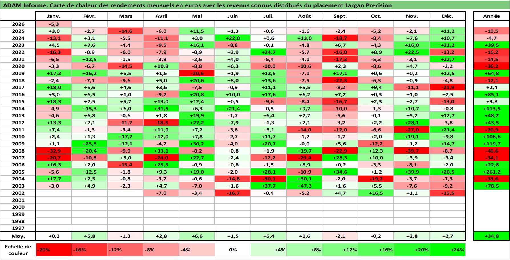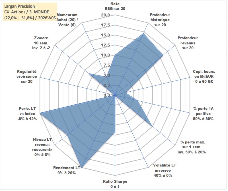 Site dédié aux investisseursPage dédiée sur site financeAnalyse des valorisations hebdomadaires de l'action Largan Precision . Cet actif est cote en TWD. Les valorisations sont en contrevaleur EURO et couvrent les semaines 2002W27 a 2026W05. Les revenus de cet actif financier sont pris en compte depuis la semaine 2002W35. La note globale ESG de cet actif est estimee a 10.0 (apres rebasage entre 0 et 20).