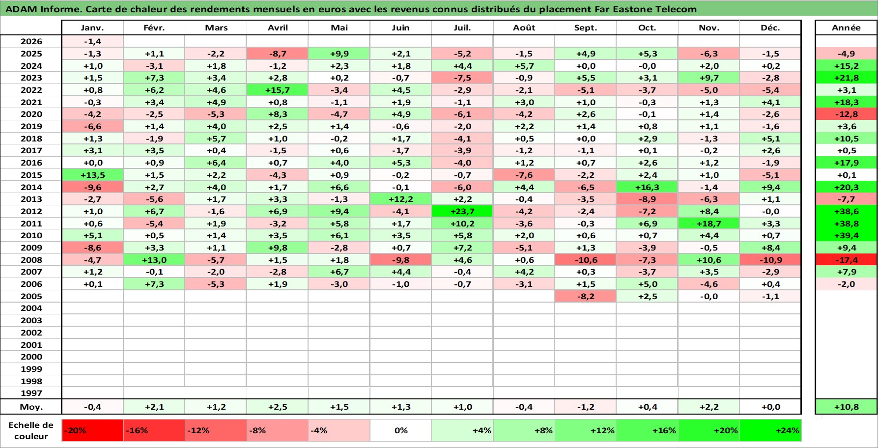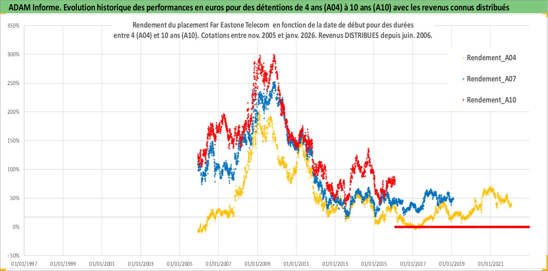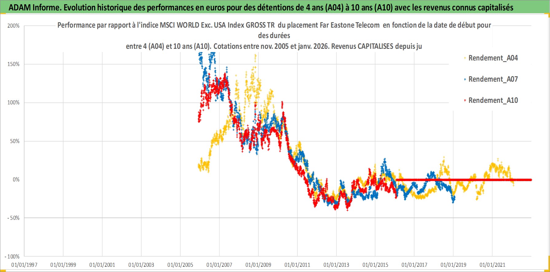 Site dédié aux investisseursPage dédiée sur site financeAnalyse des valorisations hebdomadaires de l'action Far Eastone Telecom . Cet actif est cote en TWD. Les valorisations sont en contrevaleur EURO et couvrent les semaines 2005W48 a 2026W05. Les revenus de cet actif financier sont pris en compte depuis la semaine 2006W24. La note globale ESG de cet actif est estimee a 10.0 (apres rebasage entre 0 et 20).