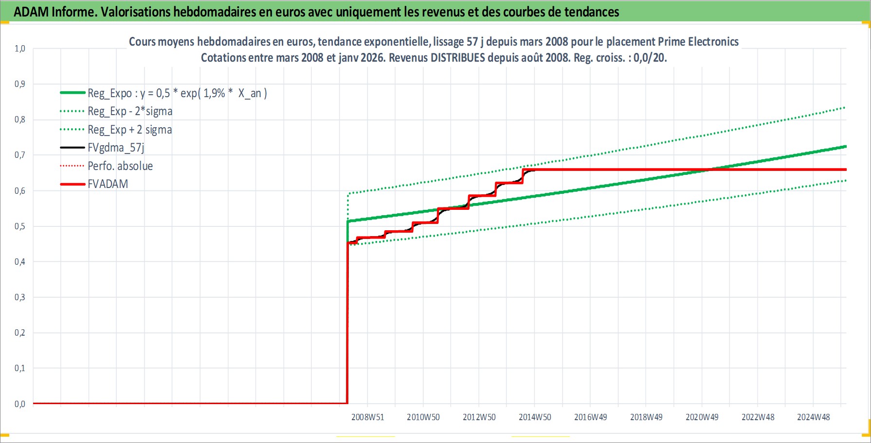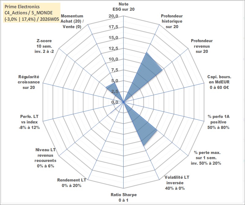 Site dédié aux investisseursPage dédiée sur site financeAnalyse des valorisations hebdomadaires de l'action Prime Electronics . Cet actif est cote en TWD. Les valorisations sont en contrevaleur EURO et couvrent les semaines 2008W14 a 2026W05. Les revenus de cet actif financier sont pris en compte depuis la semaine 2008W32. La note ESG de cet actif n'est pas connue.