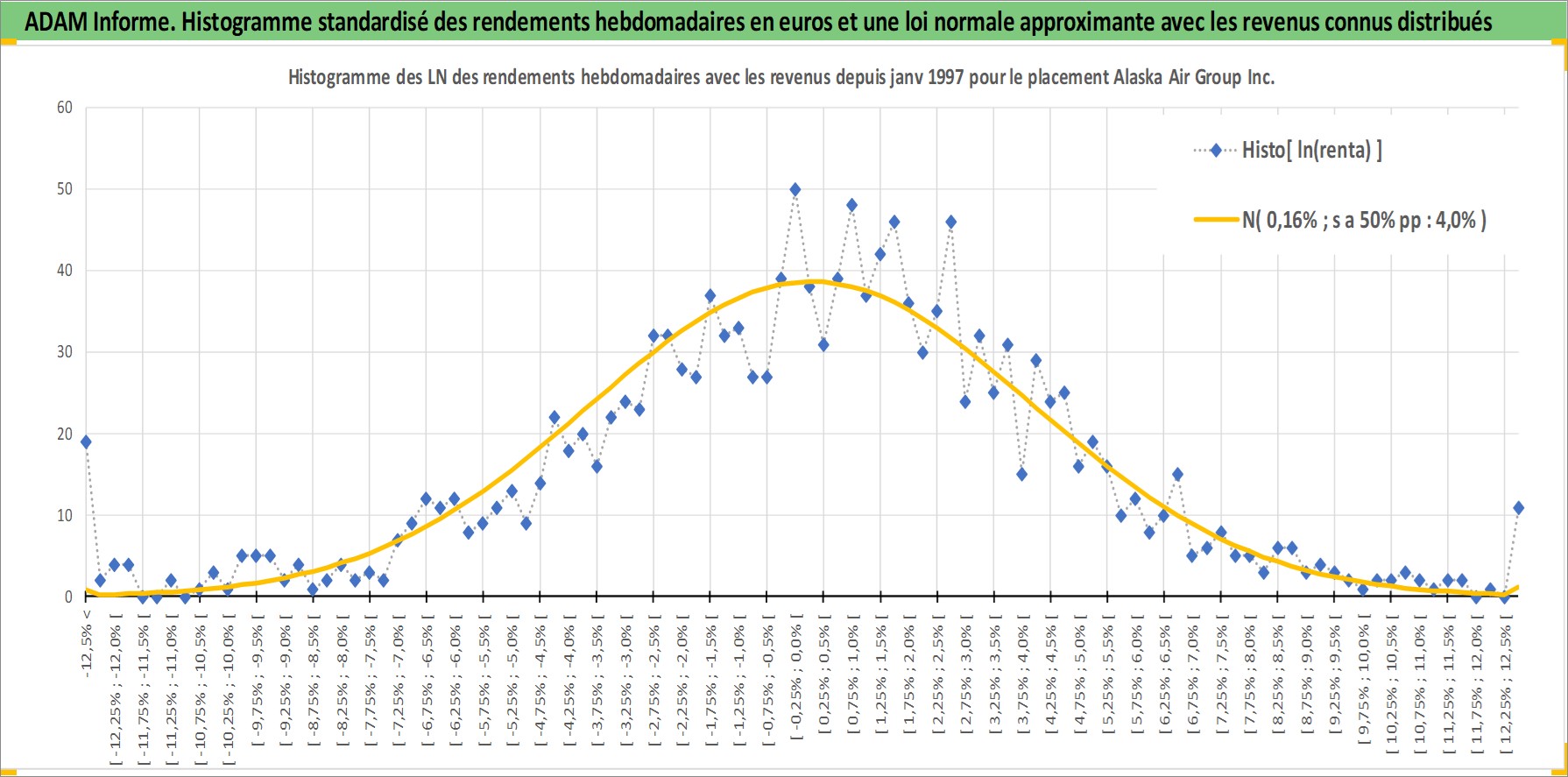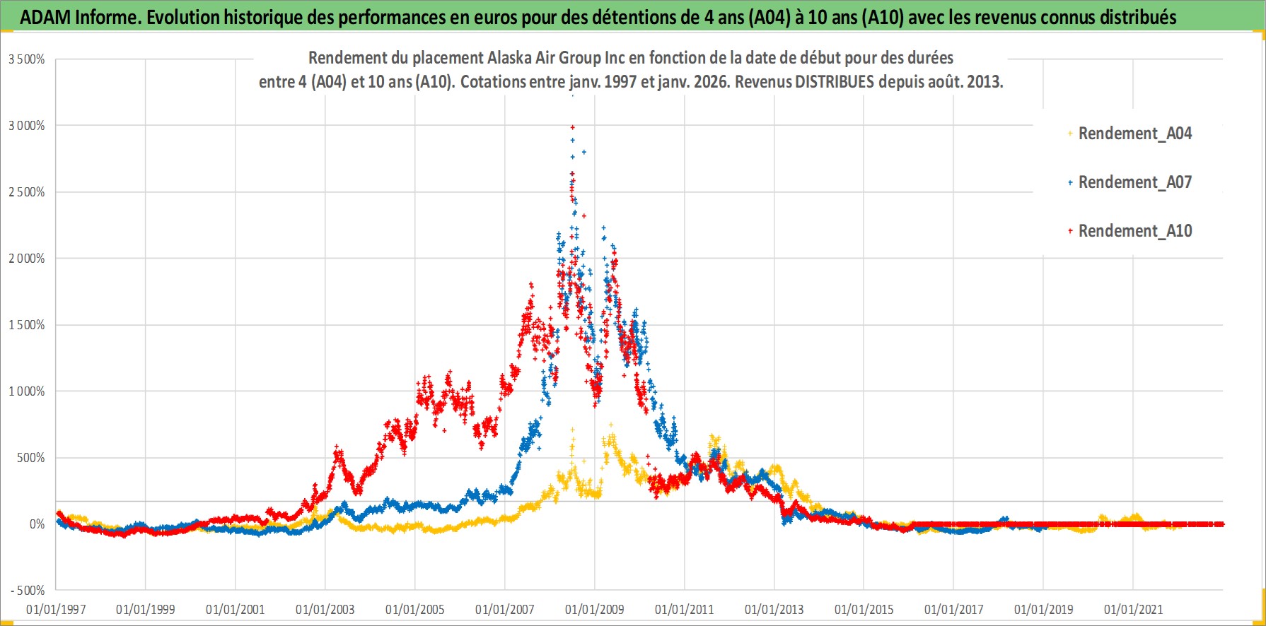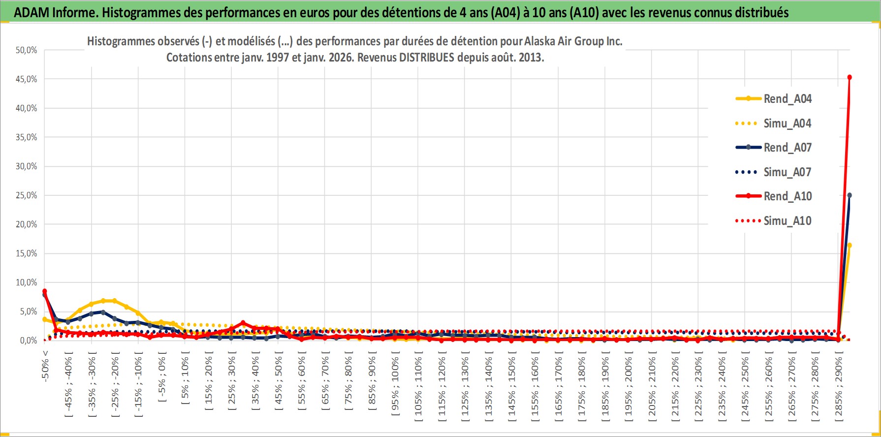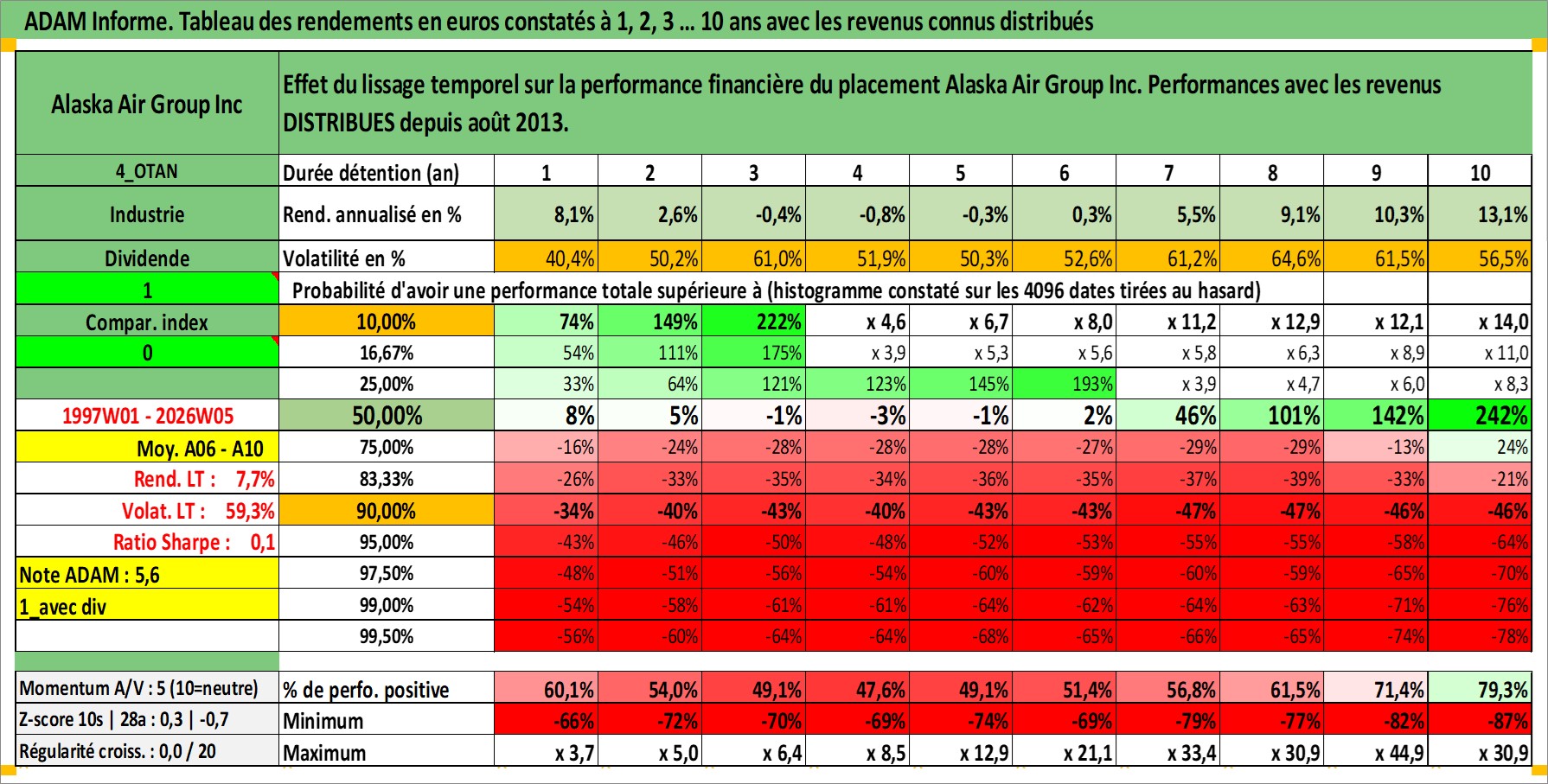 Site dédié aux investisseursPage dédiée sur site financeAnalyse des valorisations hebdomadaires de l'action Alaska Air Group Inc. Cet actif est cote en USD. Les valorisations sont en contrevaleur EURO et couvrent les semaines 1997W01 a 2026W05. Les revenus de cet actif financier sont pris en compte depuis la semaine 2013W31. La note ESG de cet actif n'est pas connue.