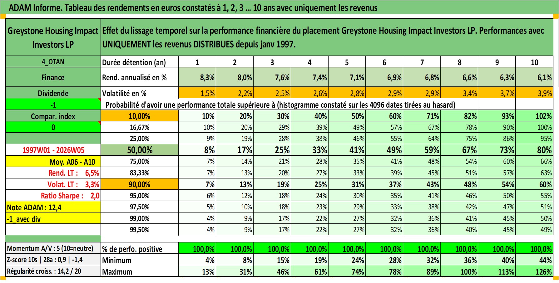 Site dédié aux investisseursPage dédiée sur site financeAnalyse des valorisations hebdomadaires de l'action Greystone Housing Impact Investors LP. Cet actif est cote en USD. Les valorisations sont en contrevaleur EURO et couvrent les semaines 1997W01 a 2026W05. Les revenus de cet actif financier sont pris en compte depuis la semaine 1997W05. La note ESG de cet actif n'est pas connue.