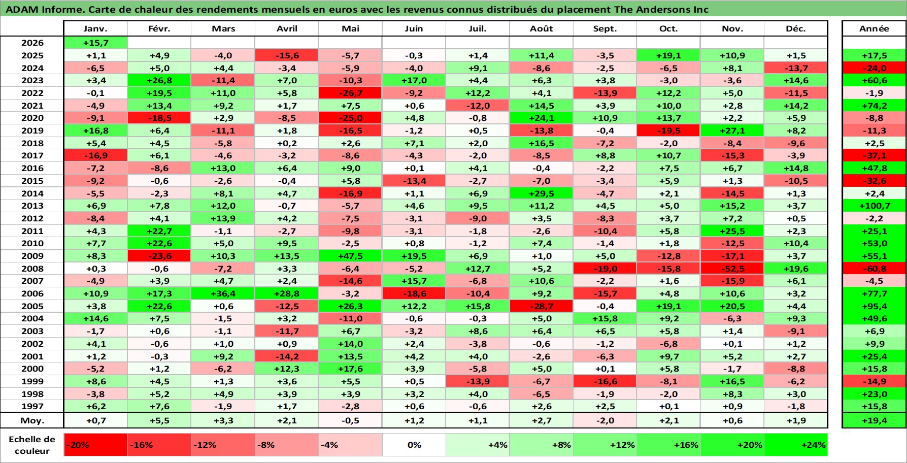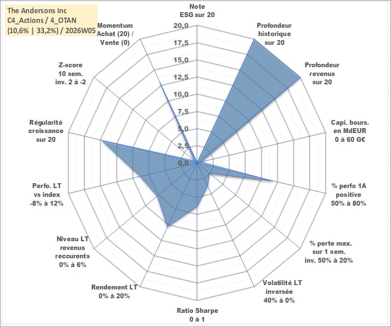 Site dédié aux investisseursPage dédiée sur site financeAnalyse des valorisations hebdomadaires de l'action The Andersons Inc. Cet actif est cote en USD. Les valorisations sont en contrevaleur EURO et couvrent les semaines 1997W01 a 2026W05. Les revenus de cet actif financier sont pris en compte depuis la semaine 1997W13. La note ESG de cet actif n'est pas connue.