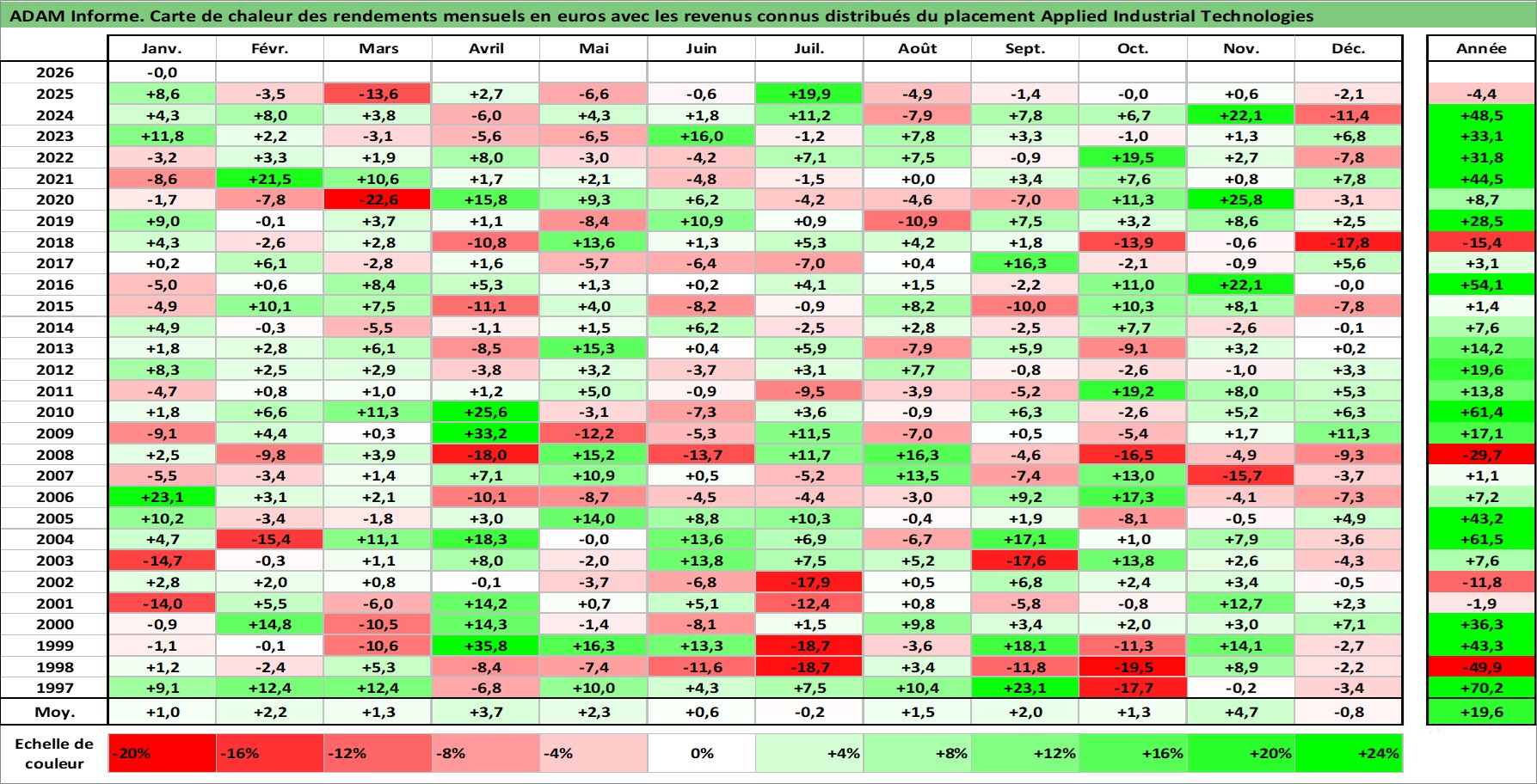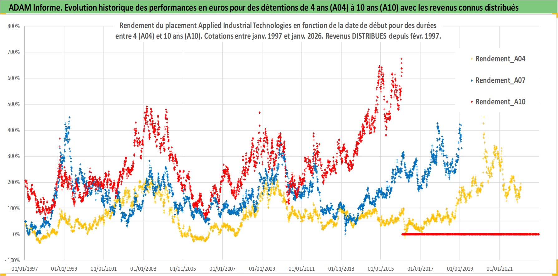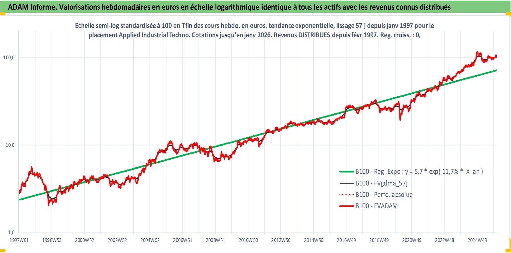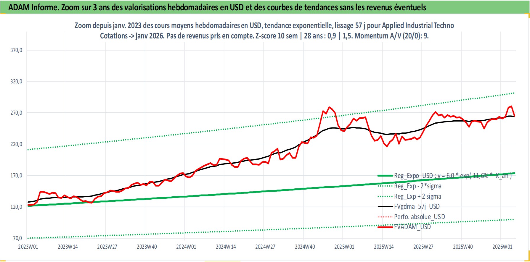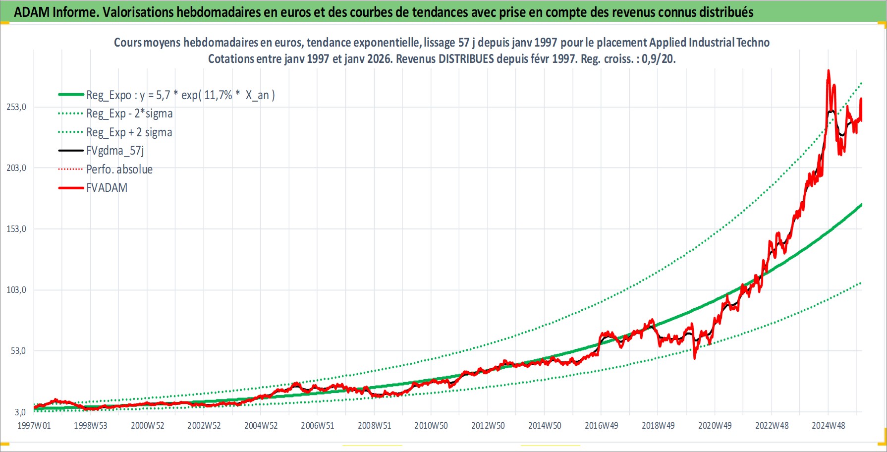 Site dédié aux investisseursPage dédiée sur site financeAnalyse des valorisations hebdomadaires de l'action Applied Industrial Technologies. Cet actif est cote en USD. Les valorisations sont en contrevaleur EURO et couvrent les semaines 1997W01 a 2026W05. Les revenus de cet actif financier sont pris en compte depuis la semaine 1997W07. La note ESG de cet actif n'est pas connue.
