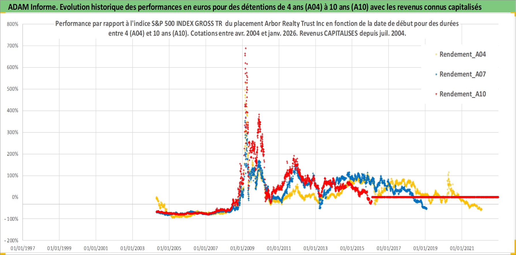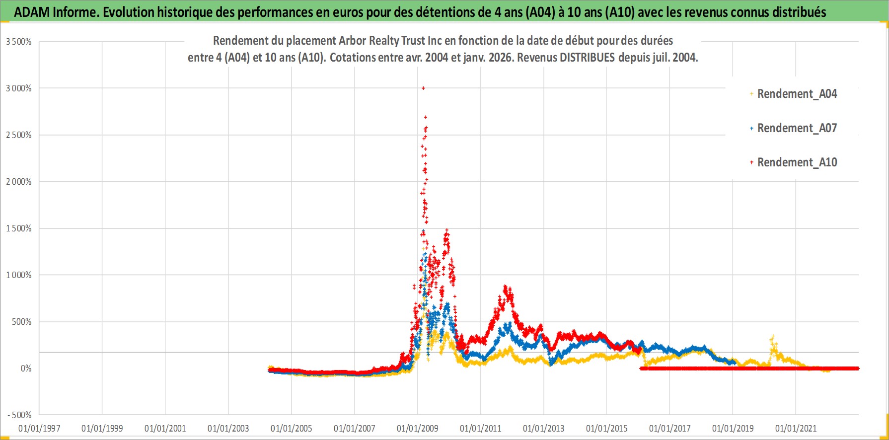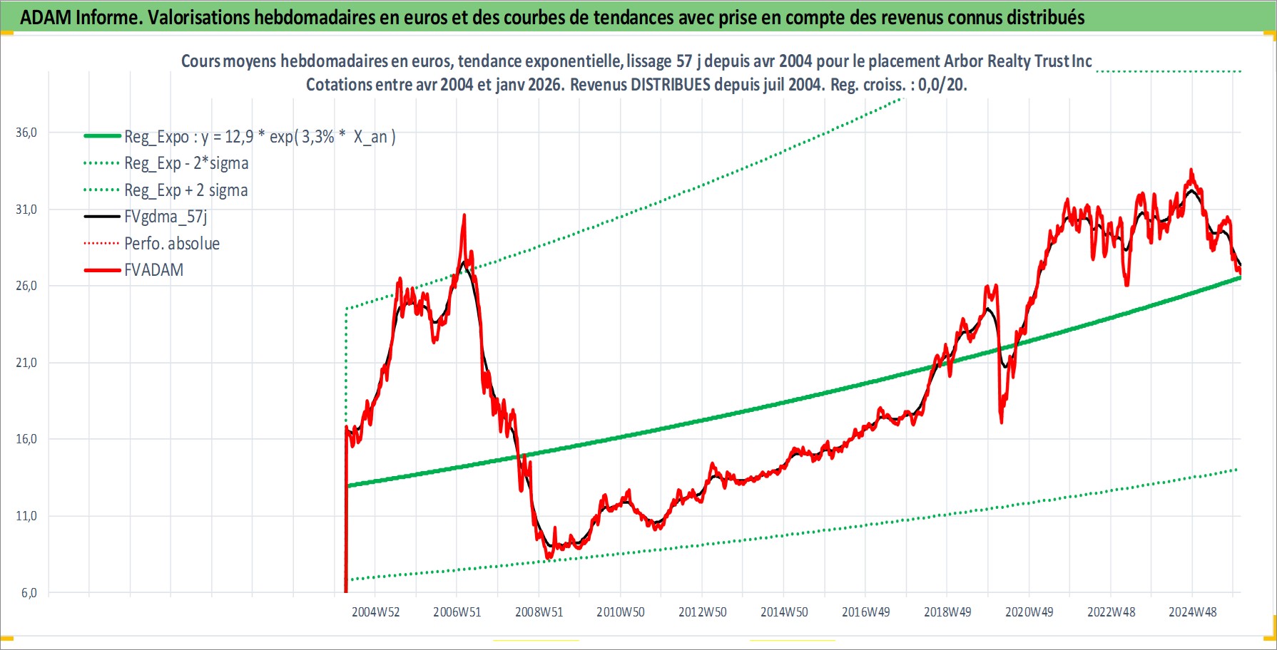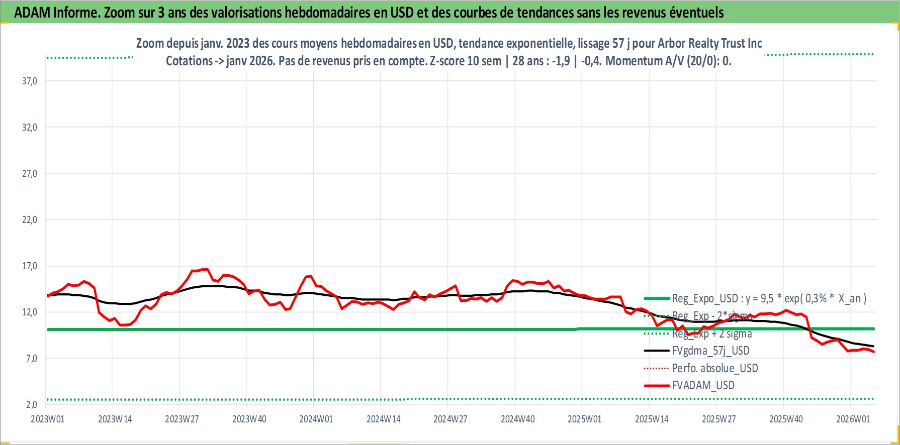 Site dédié aux investisseursPage dédiée sur site financeAnalyse des valorisations hebdomadaires de l'action Arbor Realty Trust Inc. Cet actif est cote en USD. Les valorisations sont en contrevaleur EURO et couvrent les semaines 2004W15 a 2026W05. Les revenus de cet actif financier sont pris en compte depuis la semaine 2004W27. La note ESG de cet actif n'est pas connue.