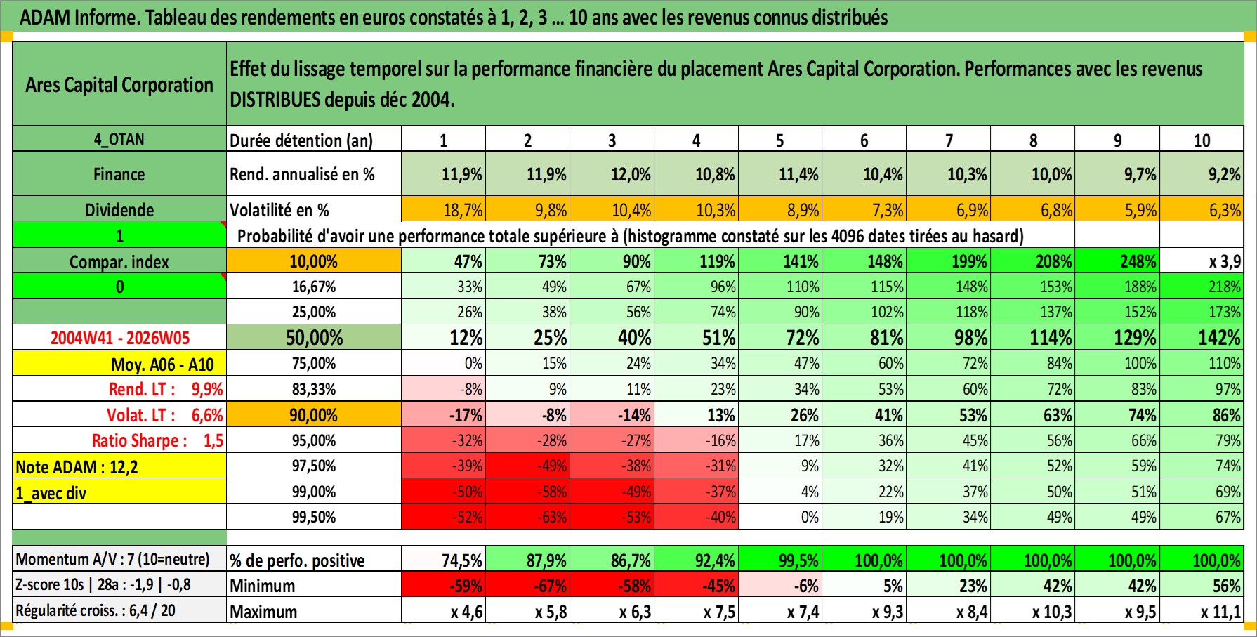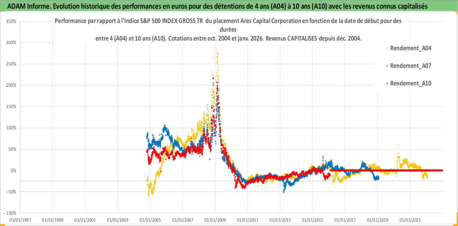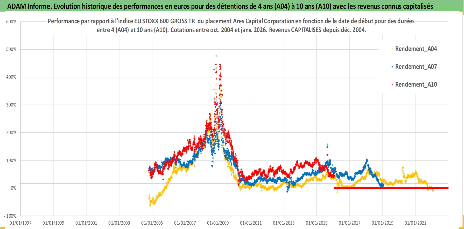 Site dédié aux investisseursPage dédiée sur site financeAnalyse des valorisations hebdomadaires de l'action Ares Capital Corporation. Cet actif est cote en USD. Les valorisations sont en contrevaleur EURO et couvrent les semaines 2004W41 a 2026W05. Les revenus de cet actif financier sont pris en compte depuis la semaine 2004W52. La note ESG de cet actif n'est pas connue.