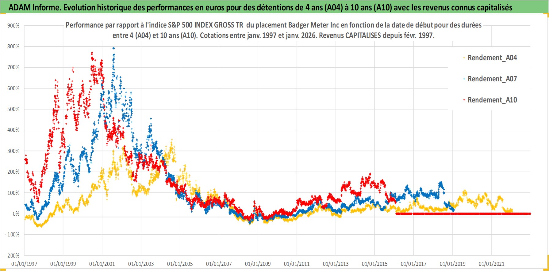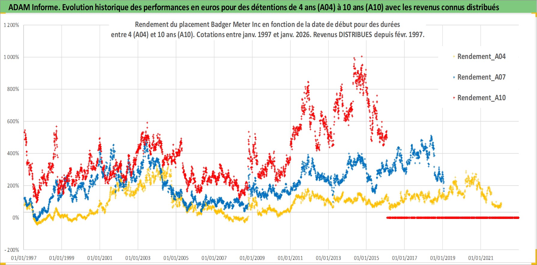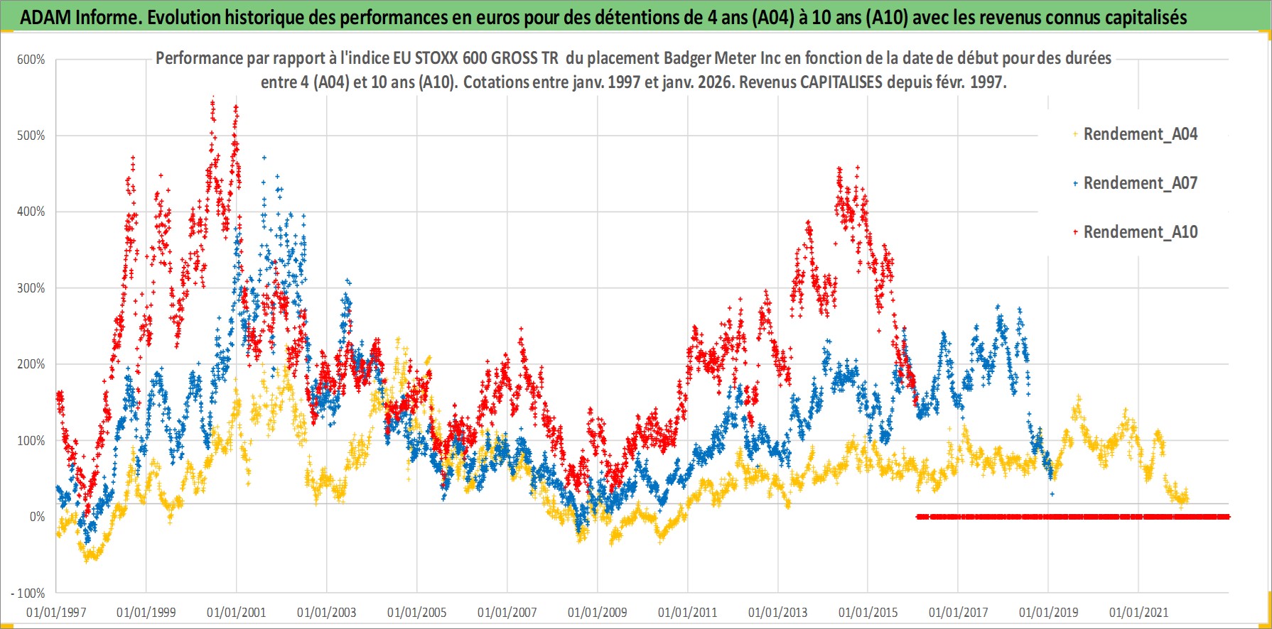 Site dédié aux investisseursPage dédiée sur site financeAnalyse des valorisations hebdomadaires de l'action Badger Meter Inc. Cet actif est cote en USD. Les valorisations sont en contrevaleur EURO et couvrent les semaines 1997W01 a 2026W05. Les revenus de cet actif financier sont pris en compte depuis la semaine 1997W09. La note ESG de cet actif n'est pas connue.