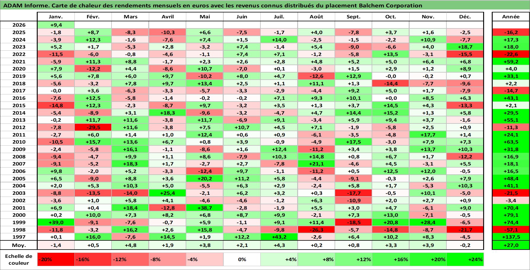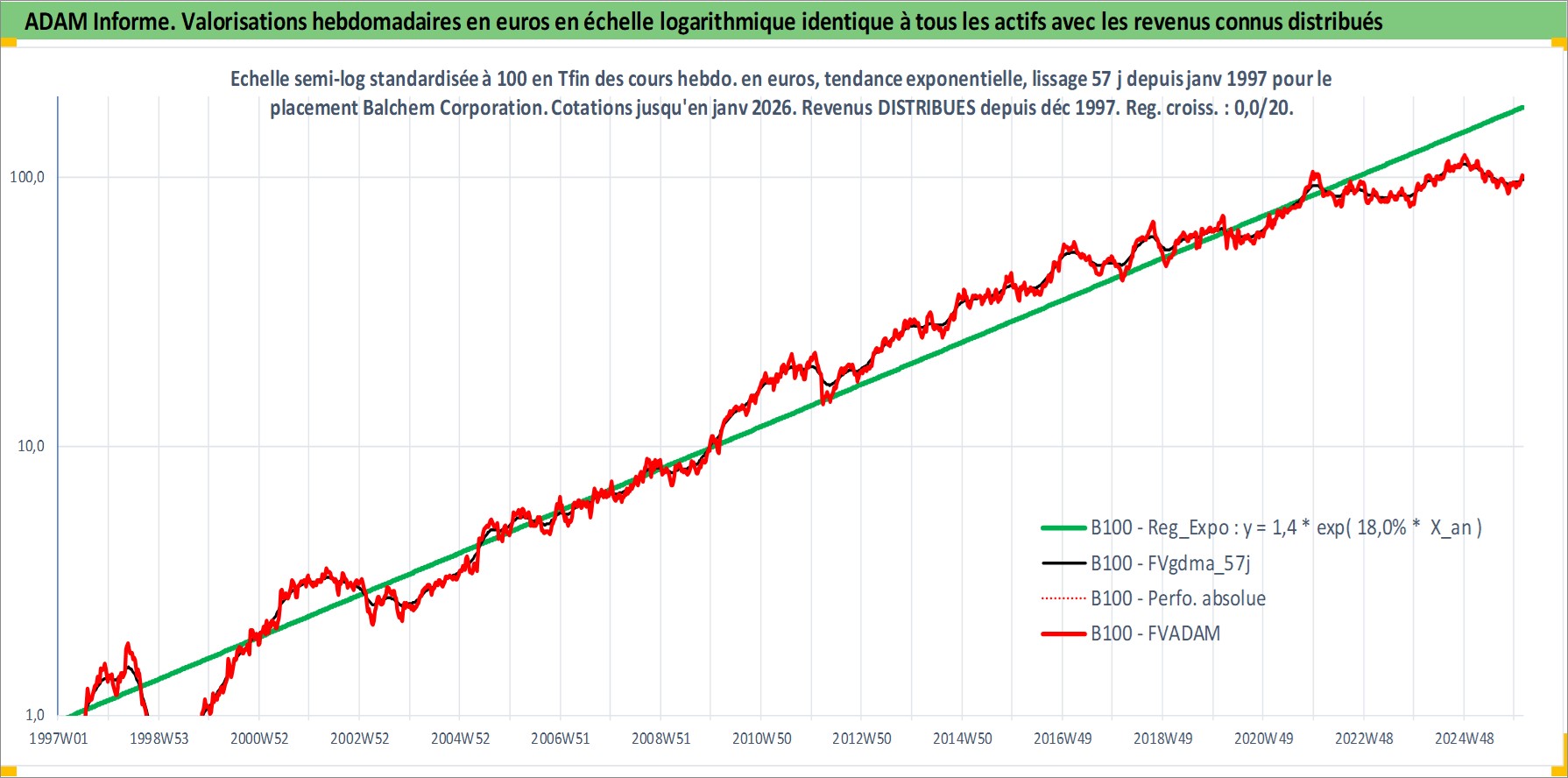Site dédié aux investisseursPage dédiée sur site financeAnalyse des valorisations hebdomadaires de l'action Balchem Corporation. Cet actif est cote en USD. Les valorisations sont en contrevaleur EURO et couvrent les semaines 1997W01 a 2026W05. Les revenus de cet actif financier sont pris en compte depuis la semaine 1997W52. La note ESG de cet actif n'est pas connue.