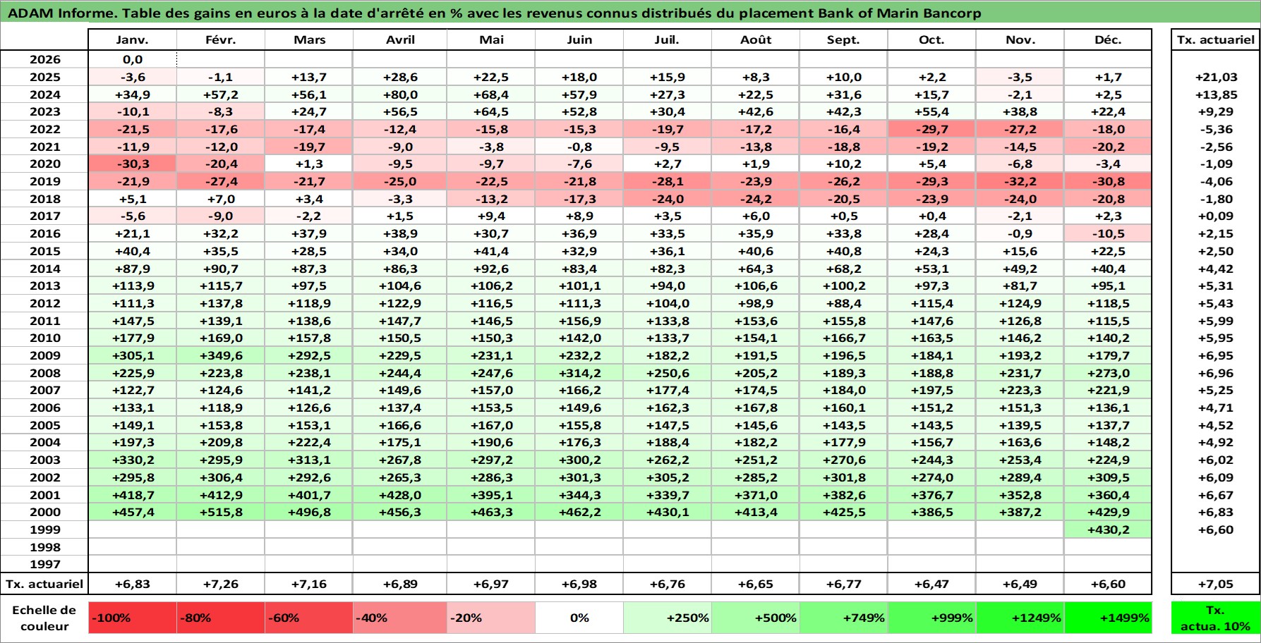 Site dédié aux investisseursPage dédiée sur site financeAnalyse des valorisations hebdomadaires de l'action Bank of Marin Bancorp. Cet actif est cote en USD. Les valorisations sont en contrevaleur EURO et couvrent les semaines 1999W51 a 2026W05. Les revenus de cet actif financier sont pris en compte depuis la semaine 2004W22. La note ESG de cet actif n'est pas connue.