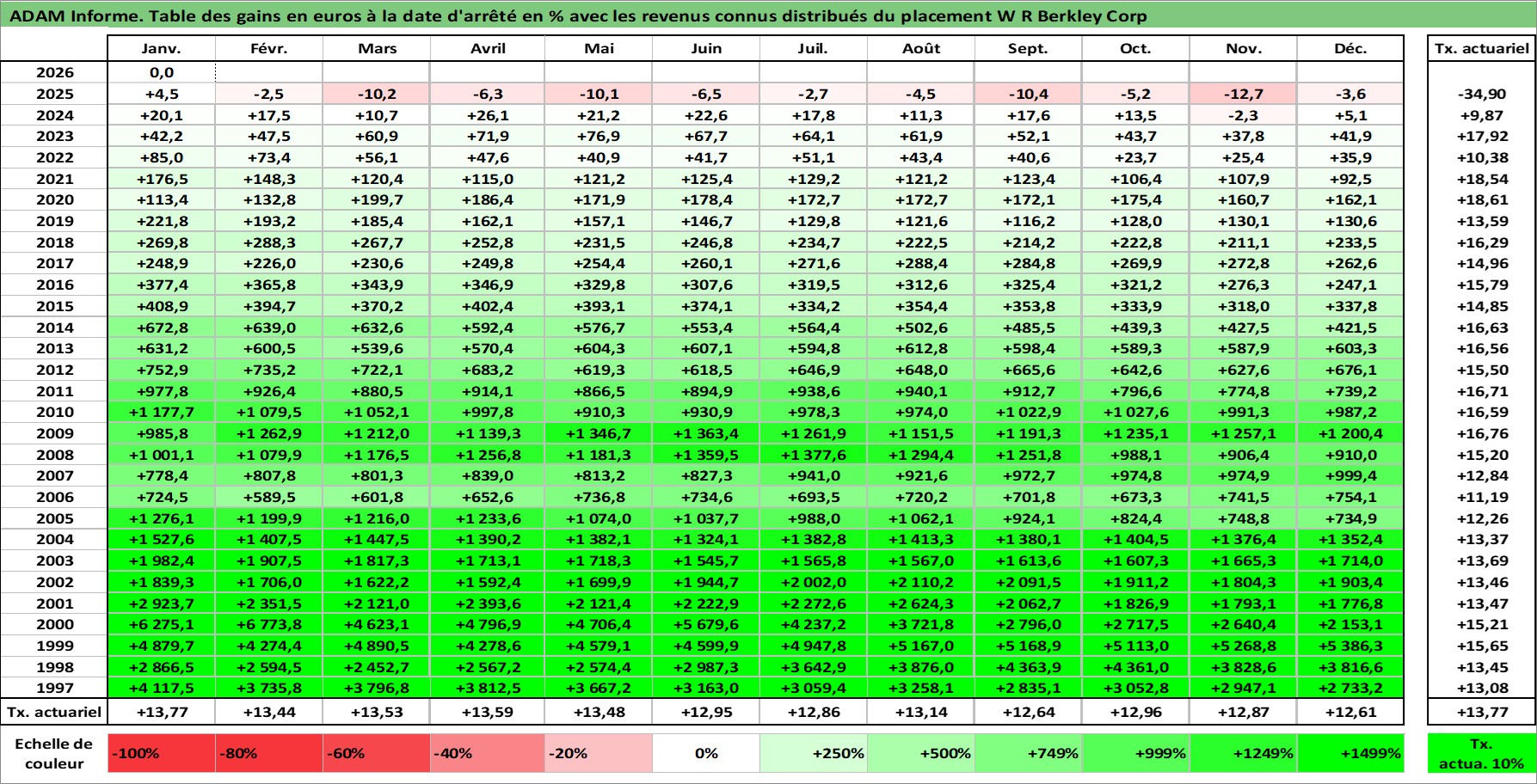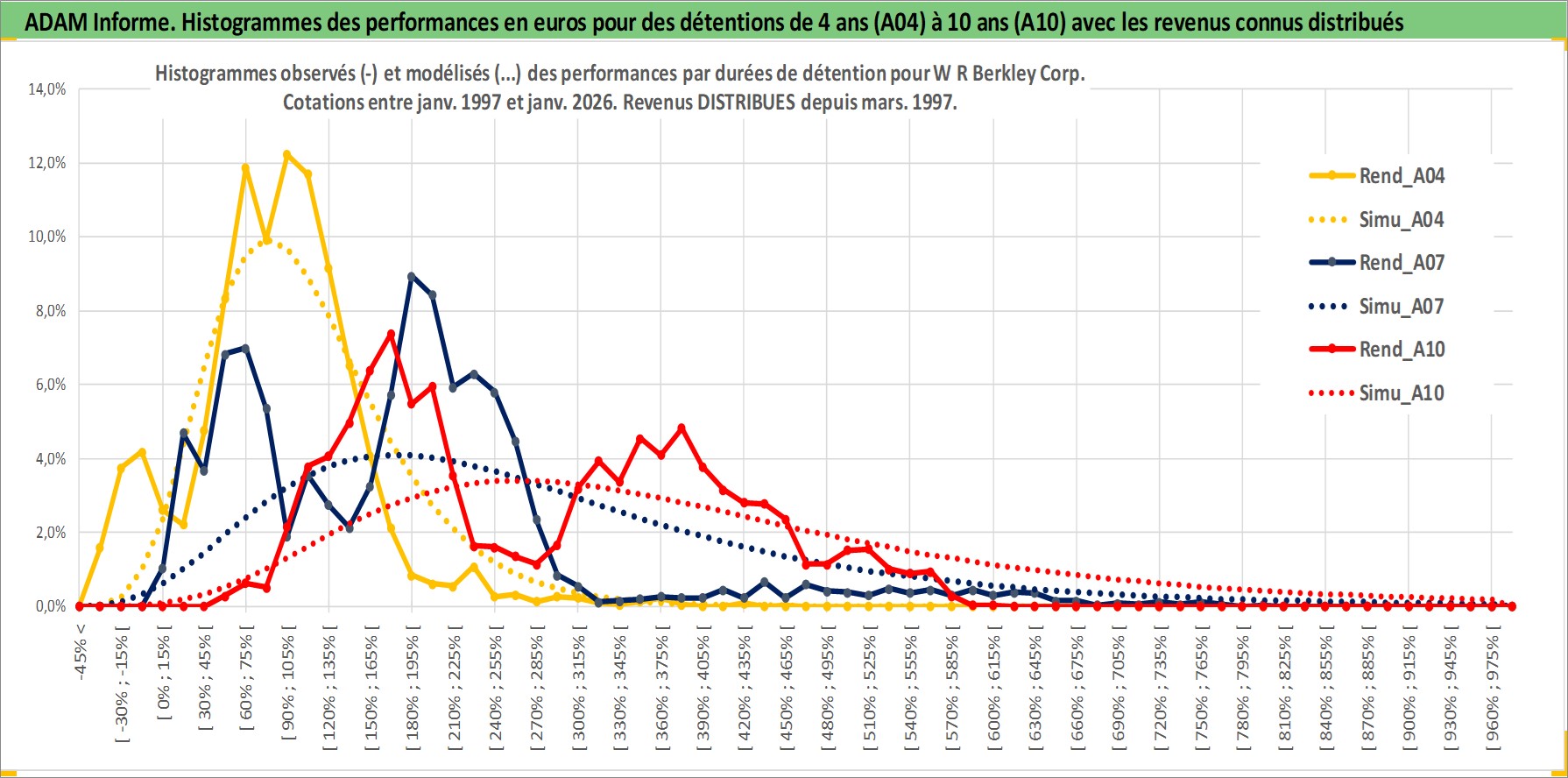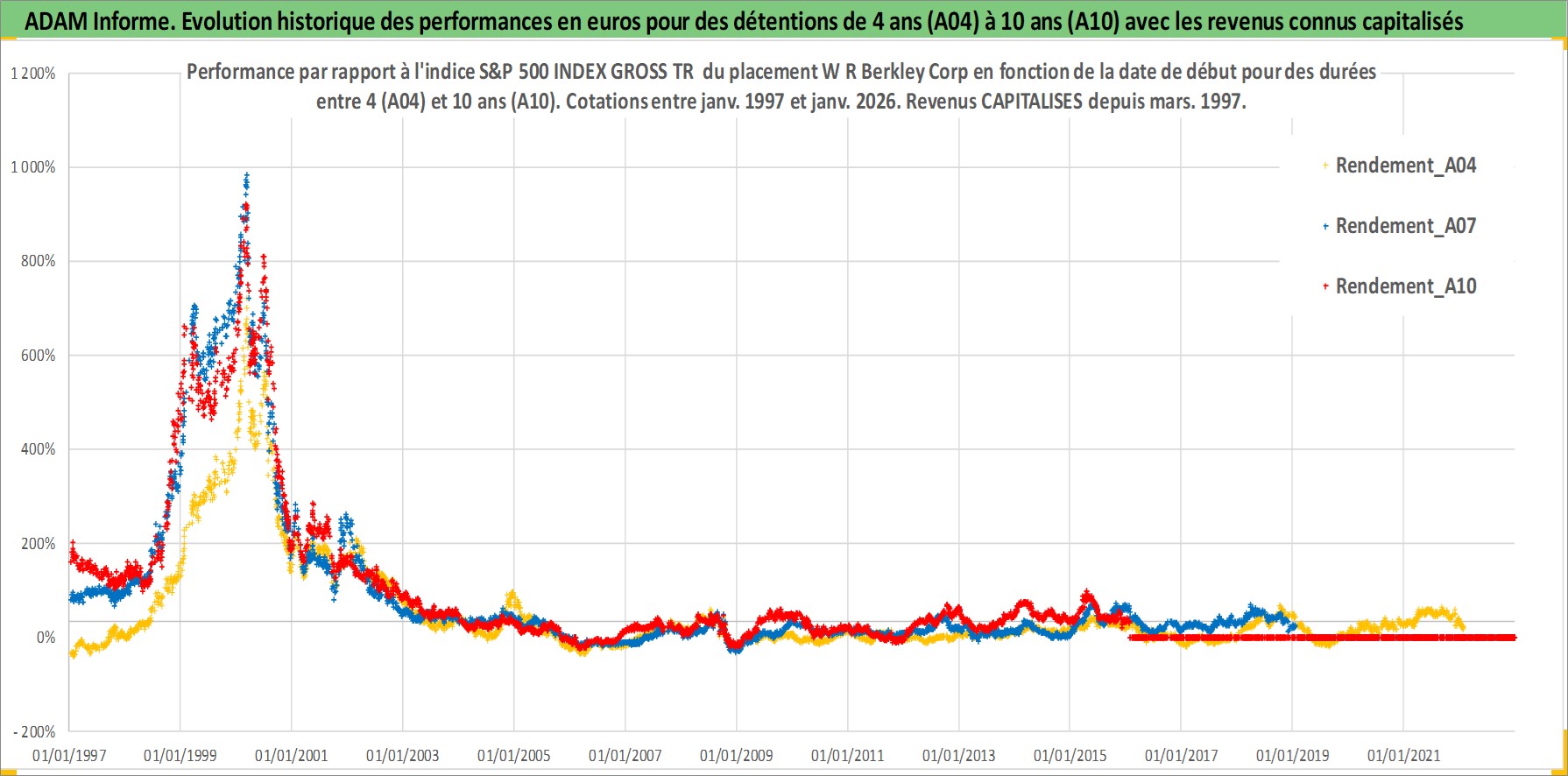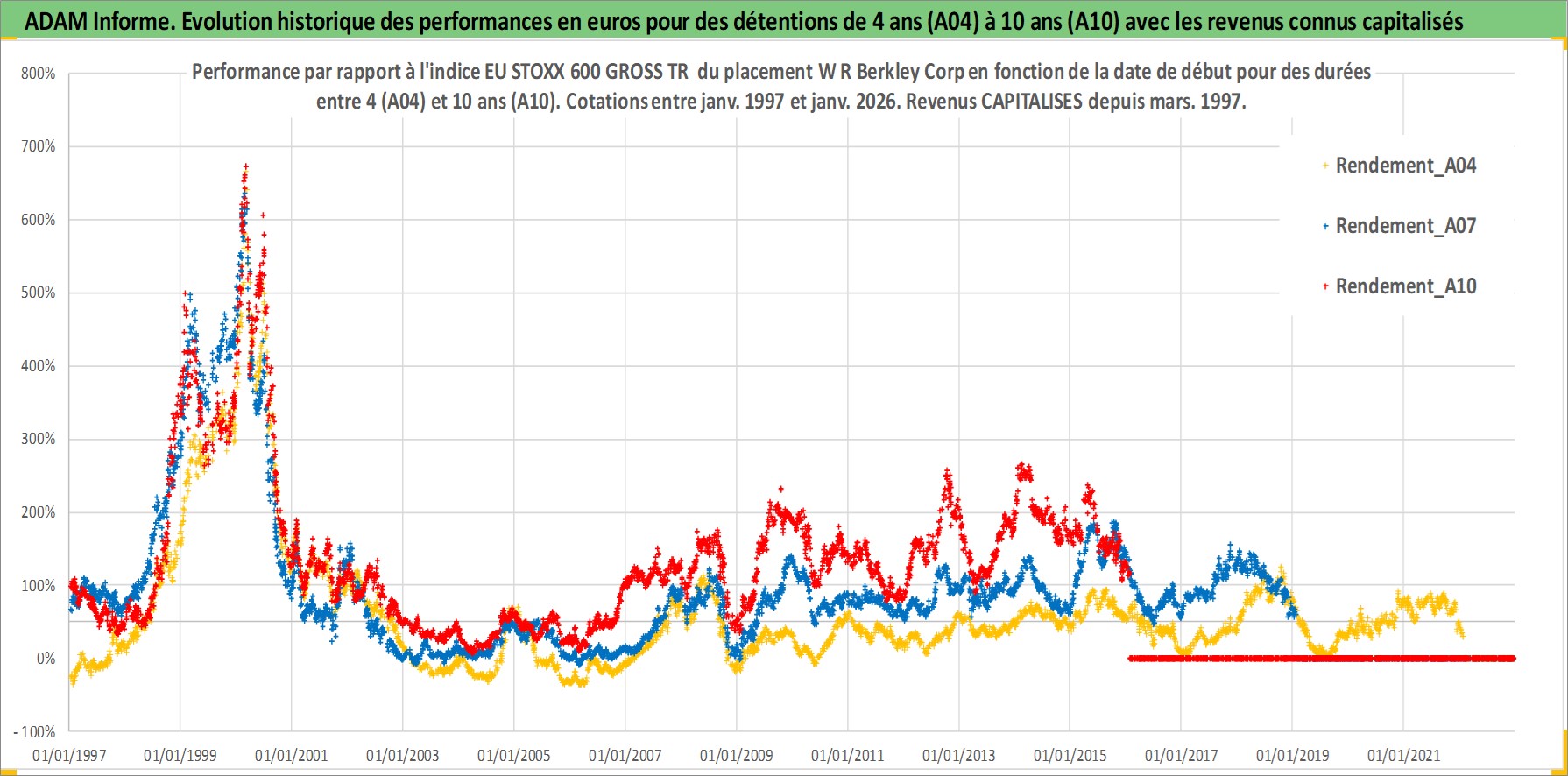 Site dédié aux investisseursPage dédiée sur site financeAnalyse des valorisations hebdomadaires de l'action W R Berkley Corp. Cet actif est cote en USD. Les valorisations sont en contrevaleur EURO et couvrent les semaines 1997W01 a 2026W05. Les revenus de cet actif financier sont pris en compte depuis la semaine 1997W12. La note globale ESG de cet actif est estimee a 9.0 (apres rebasage entre 0 et 20).