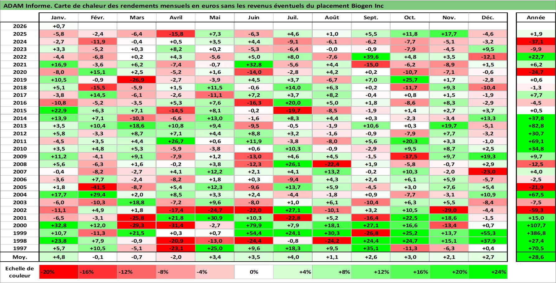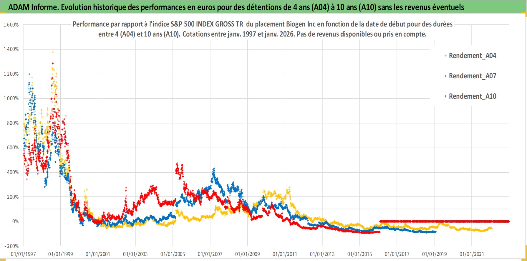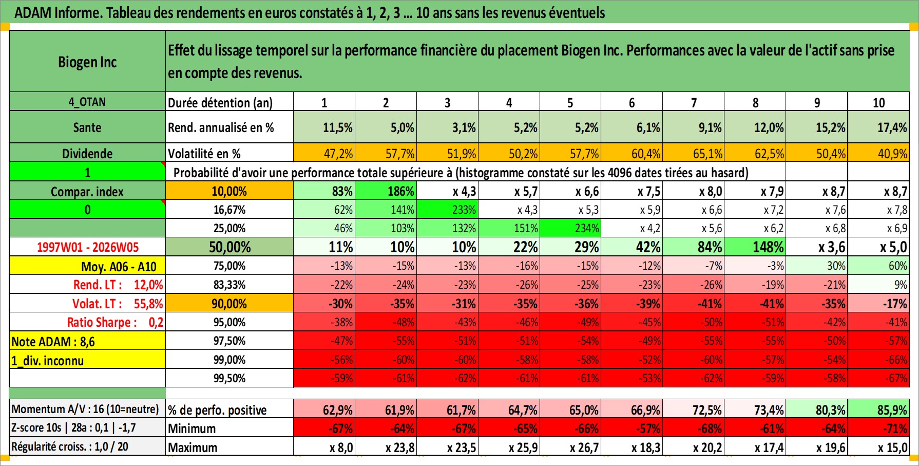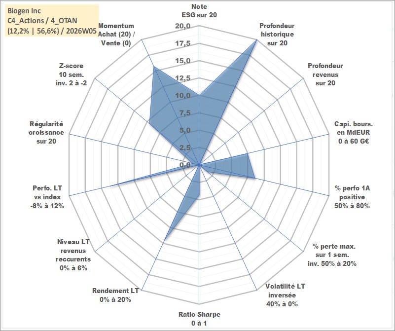 Site dédié aux investisseursPage dédiée sur site financeAnalyse des valorisations hebdomadaires de l'action Biogen Inc. Cet actif est cote en USD. Les valorisations sont en contrevaleur EURO et couvrent les semaines 1997W01 a 2026W05. Les revenus de cet actif financier ne sont pas connus car non existants ou non disponibles sur le site Yahoo Finance. La note globale ESG de cet actif est estimee a 10.0 (apres rebasage entre 0 et 20).