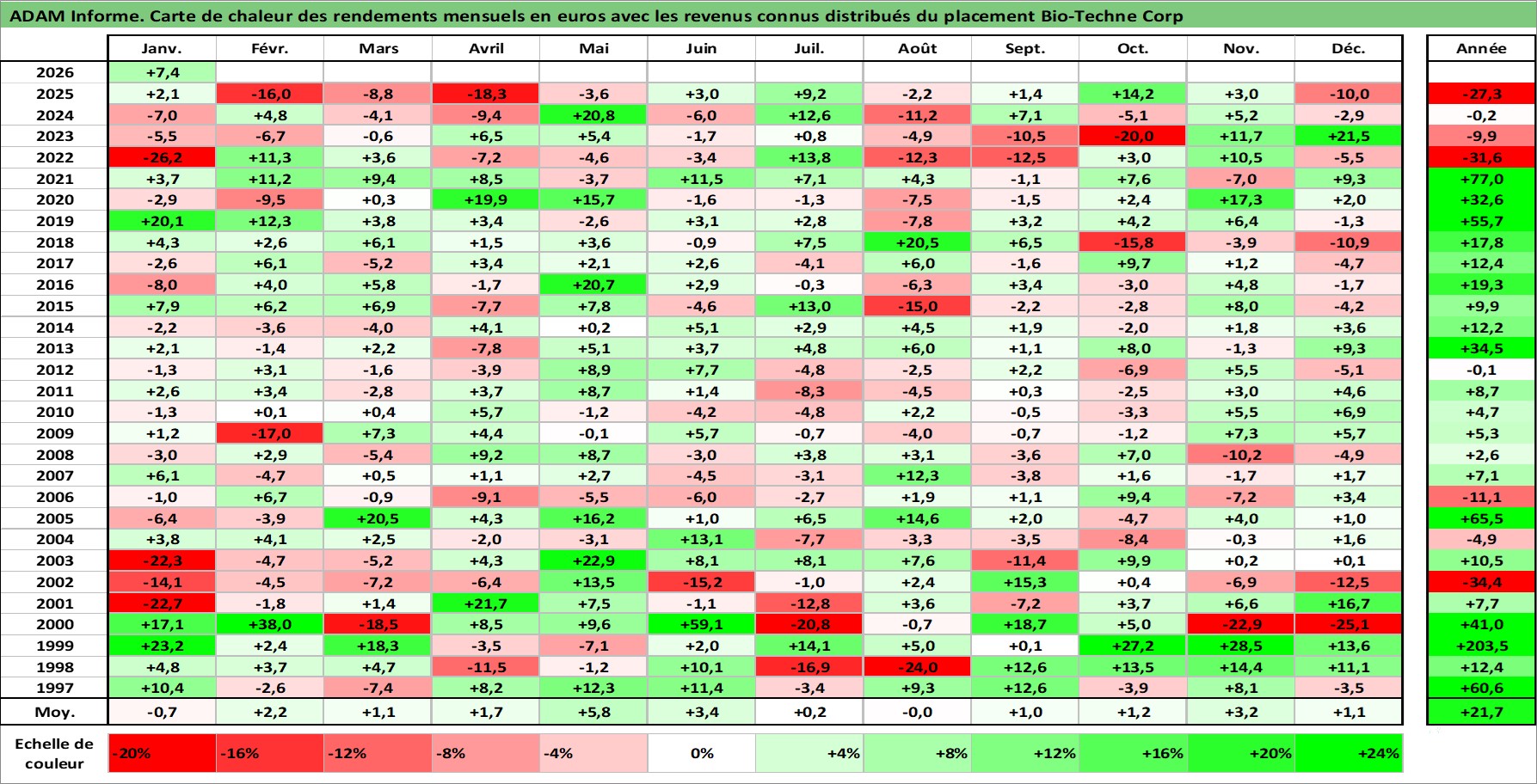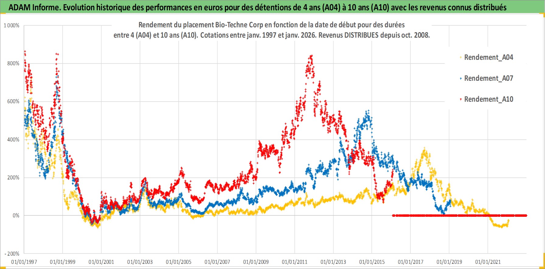 Site dédié aux investisseursPage dédiée sur site financeAnalyse des valorisations hebdomadaires de l'action Bio-Techne Corp. Cet actif est cote en USD. Les valorisations sont en contrevaleur EURO et couvrent les semaines 1997W01 a 2026W05. Les revenus de cet actif financier sont pris en compte depuis la semaine 2008W44. La note ESG de cet actif n'est pas connue.