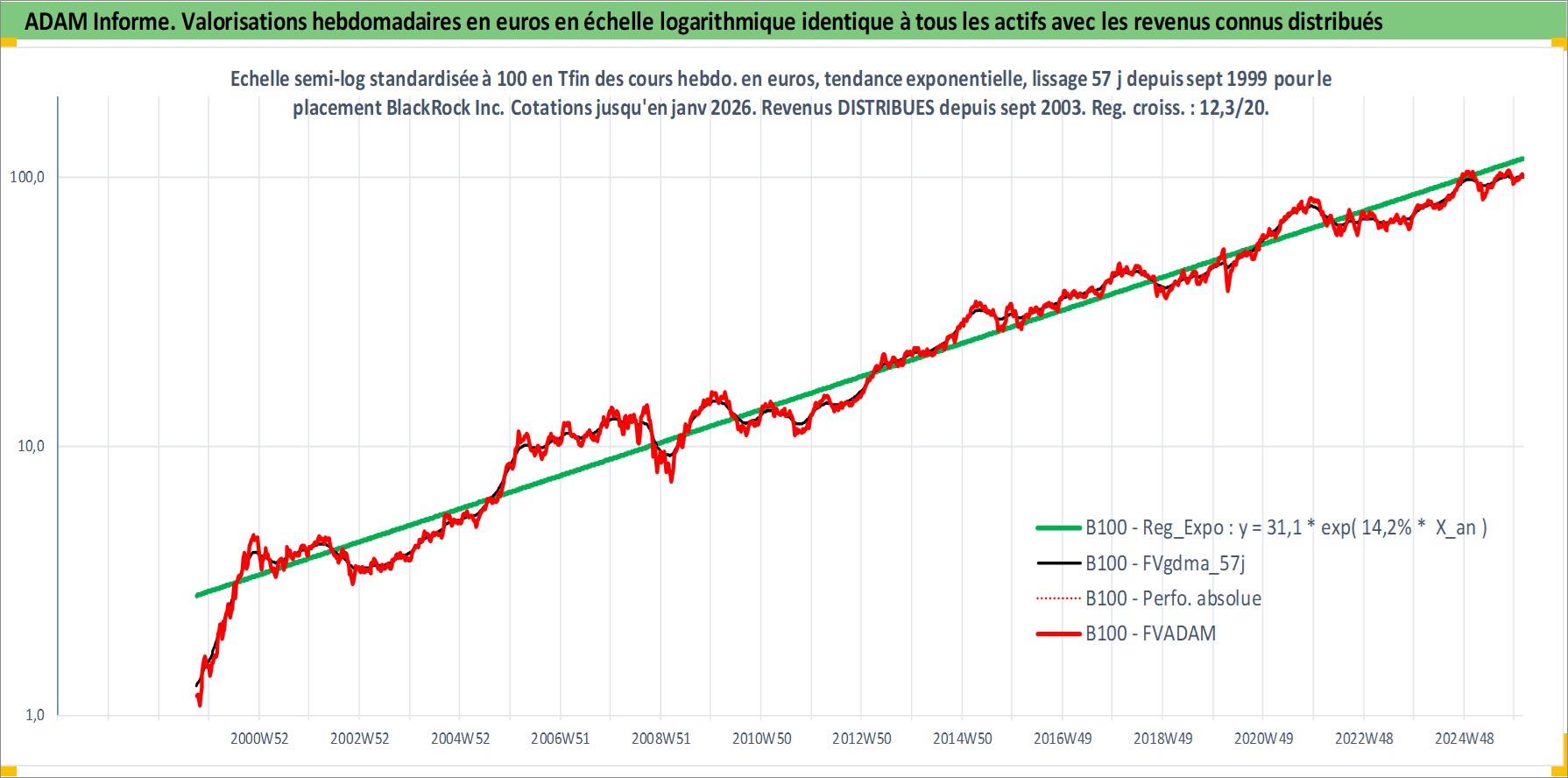 Site dédié aux investisseursPage dédiée sur site financeAnalyse des valorisations hebdomadaires de l'action BlackRock Inc. Cet actif est cote en USD. Les valorisations sont en contrevaleur EURO et couvrent les semaines 1999W39 a 2026W05. Les revenus de cet actif financier sont pris en compte depuis la semaine 2003W36. La note globale ESG de cet actif est estimee a 10.0 (apres rebasage entre 0 et 20).